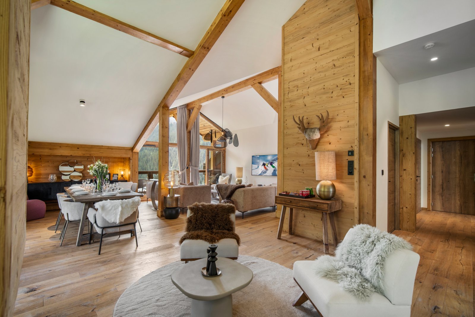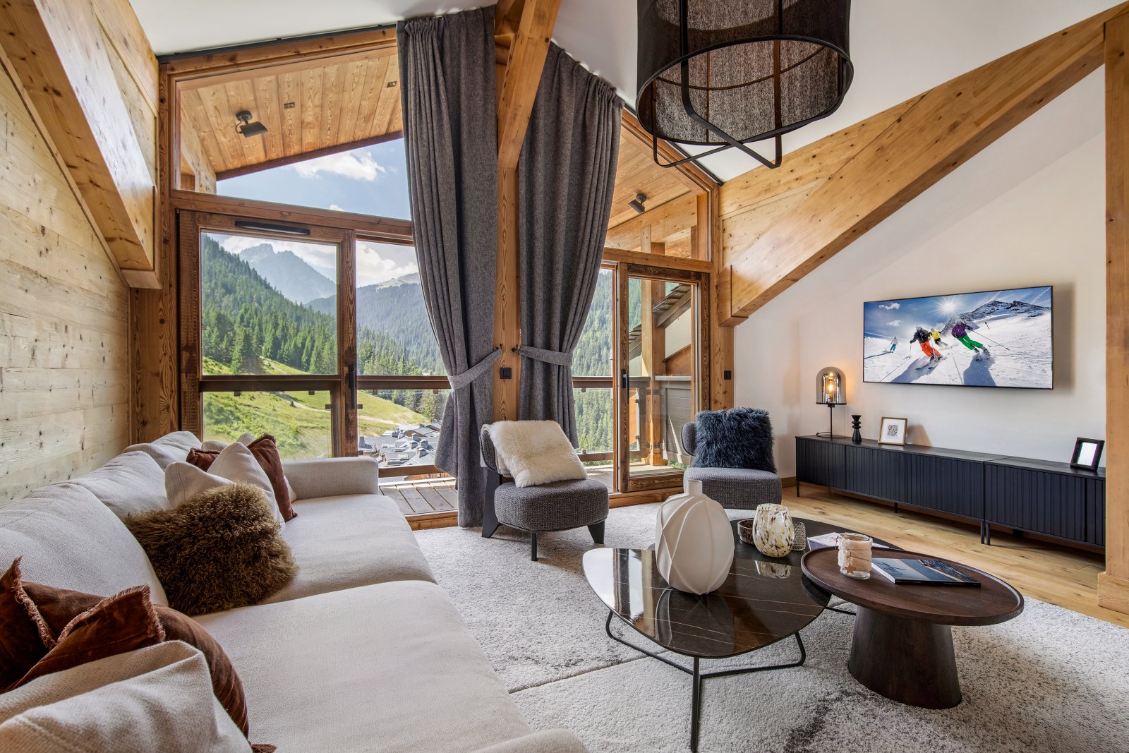 The penthouse location: The penthouse is ideally located in the heart of Courchevel 1650 (Moriond), within walking distance to ski lifts and slopes (3 min walk), ESF ski school, restaurants, bakeries, grocery shops, and the Aquamotion wellness and pool center (10 min walk). It offers access to 3 Vallées, the largest ski area in the world, combining a peaceful alpine setting with easy access to everything the resort offers.