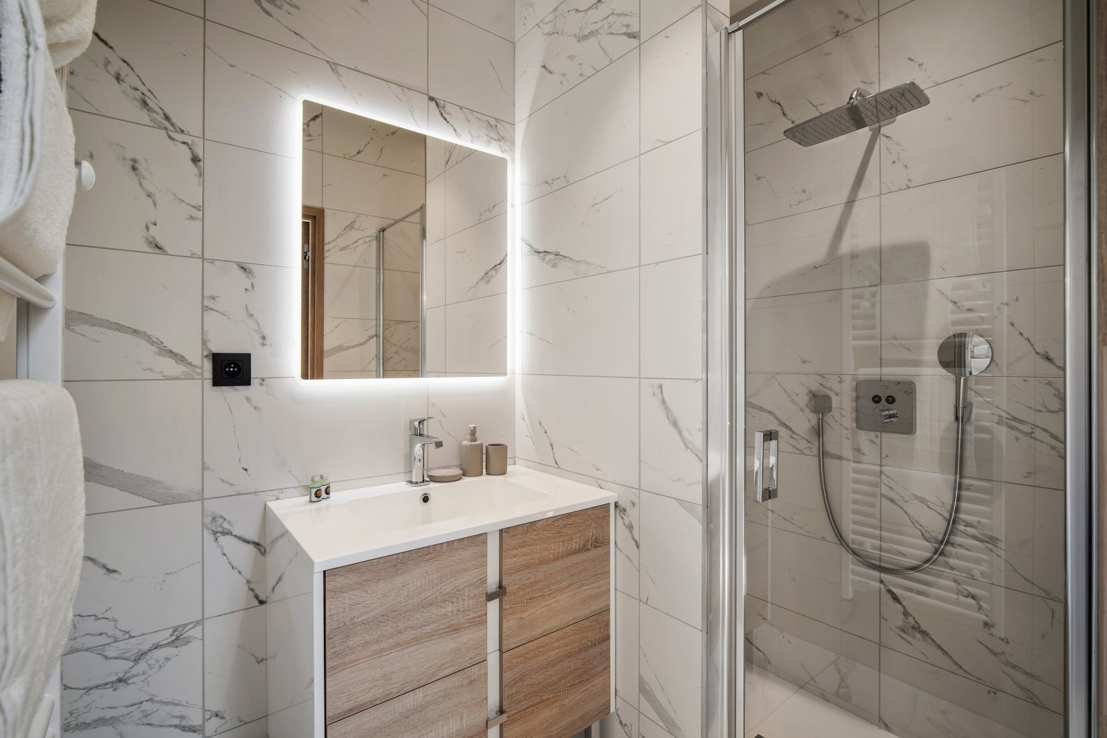 The combined penthouses feature 8 luxurious bedrooms, each with a queen-size bed (160x200), high-quality linens, blackout curtains, ample storage, and a calming, elegant atmosphere. Custom wardrobes and cozy bedding ensure a restful stay, ideal for relaxation after a day on the slopes.