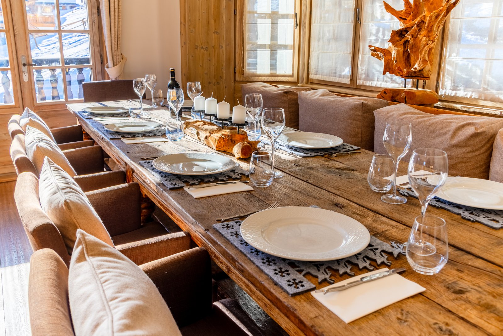 Services include a private chef, butler and cleaning person. The chef included meals are breakfast + after ski "entremet" + lunch OR dinner. There are also two bottles of champagne included as welcome gifts.