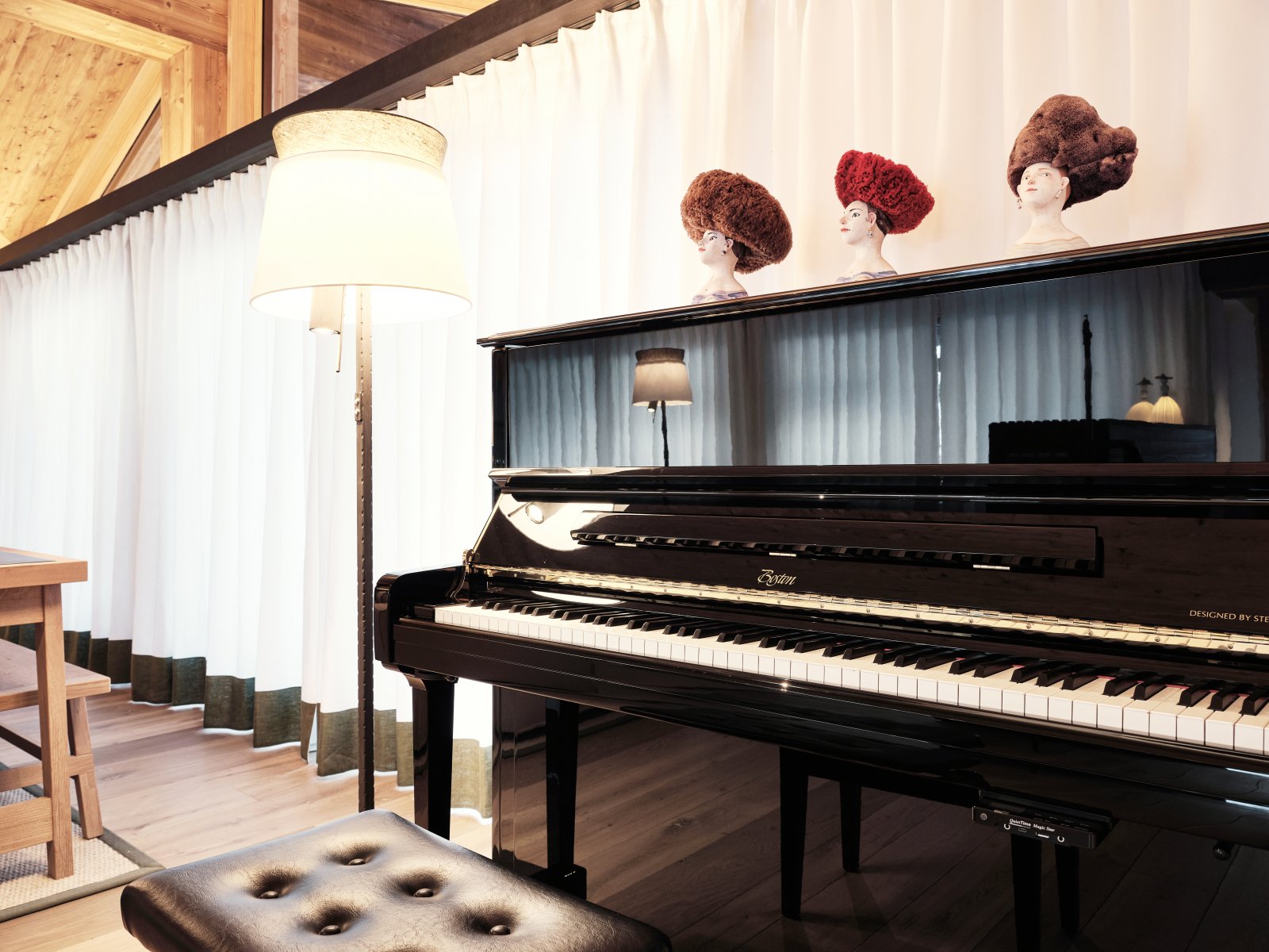 The Chalet Loft offers 220 m² of living space with 3.70 m high ceilings, light-flooded panoramic windows and around 100 m² of balcony space. A private spa, yoga room and open fireplace make it an exclusive retreat offering the utmost in comfort.