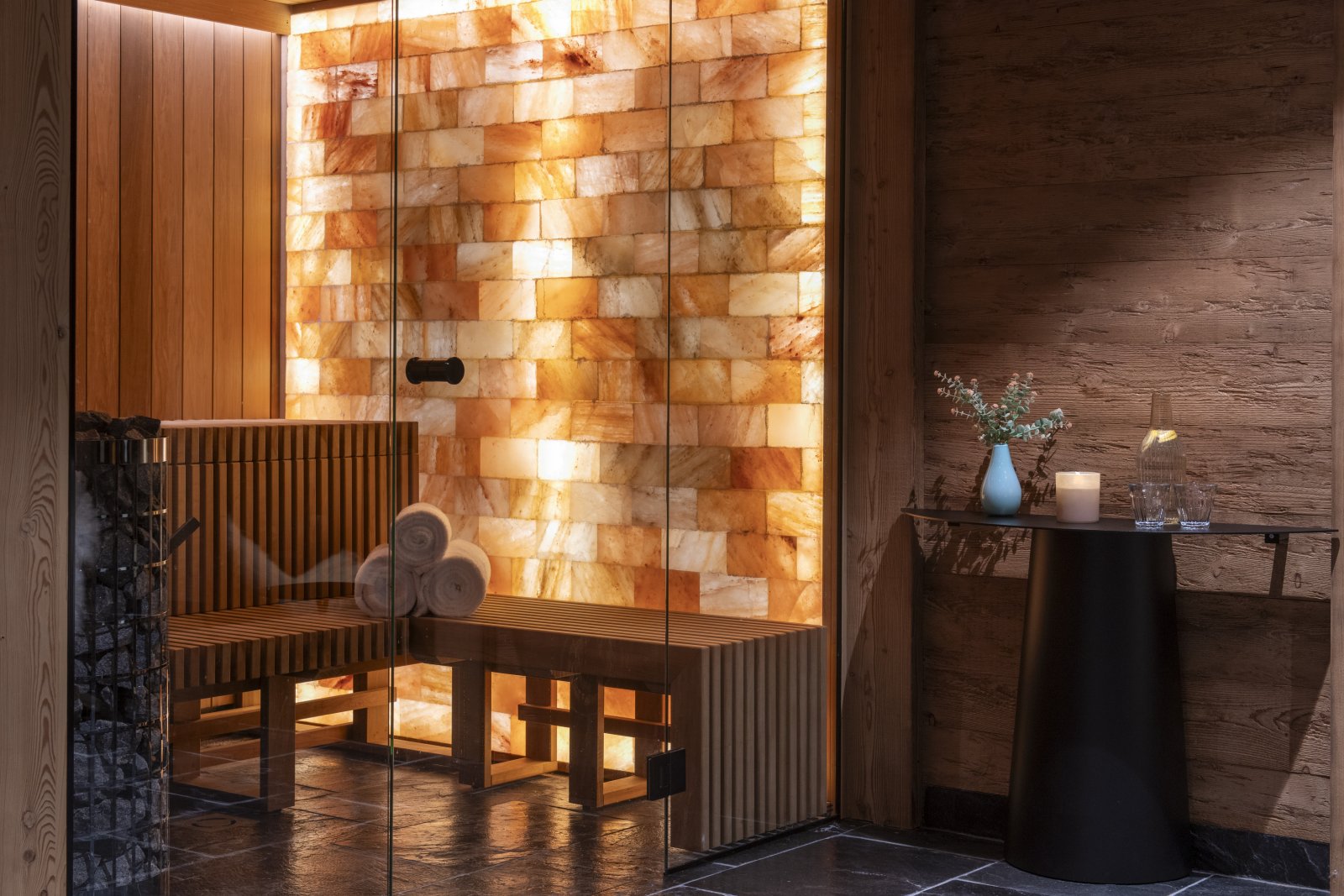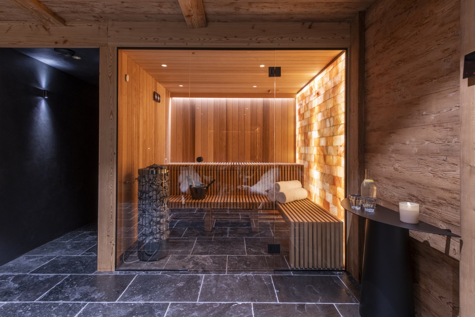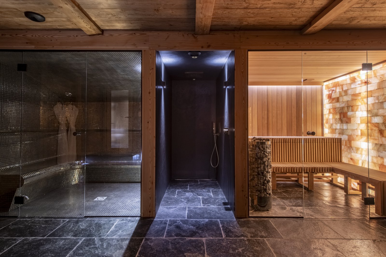 The spa facilities here are extensive and include a salt stone sauna and hammam, alongside a Gessi waterfall shower and separate relaxation area, but the icing on the cake has to be the custom sunken hot tub to the rear of the property. The bespoke tiled hot tub is cleverly concealed beneath a sliding section of the rear deck and has been positioned to take in the breathtaking valley view, the only downside is that you may find it difficult to get back out again!