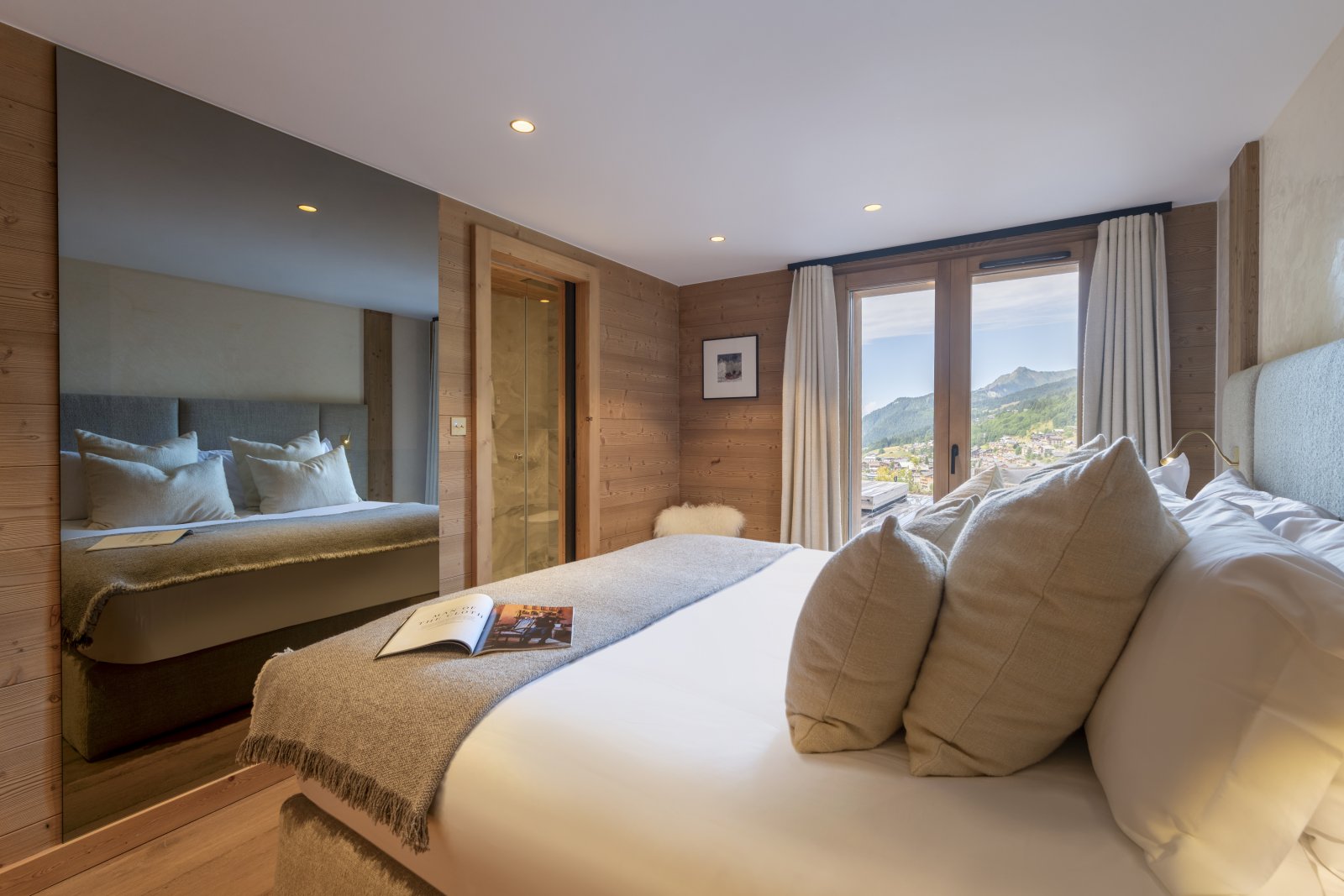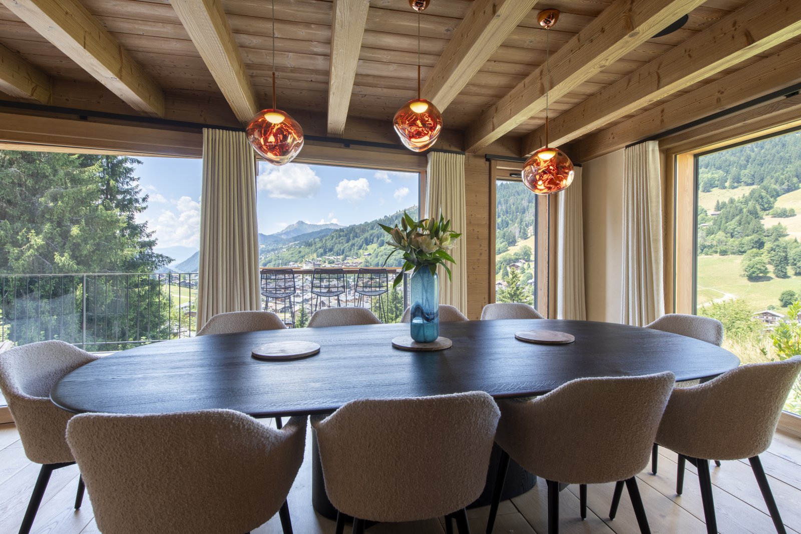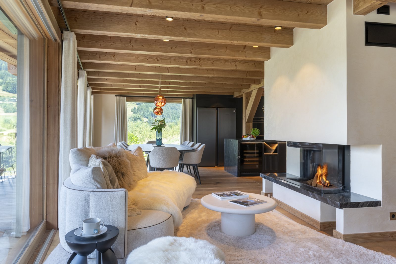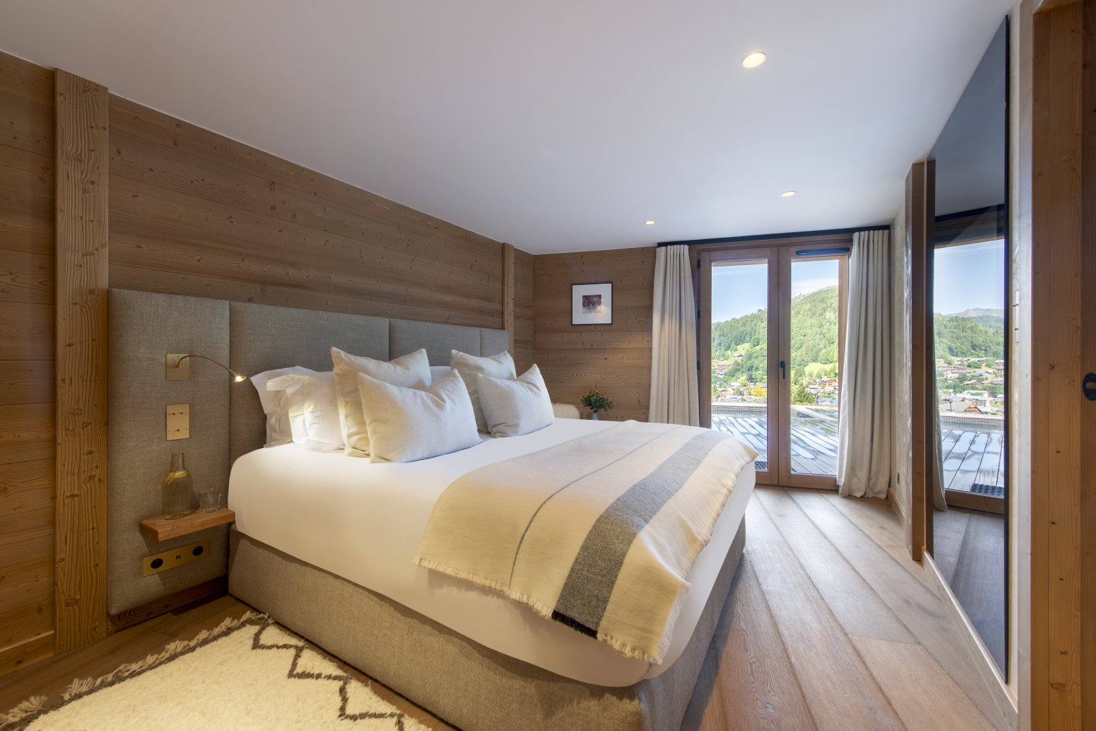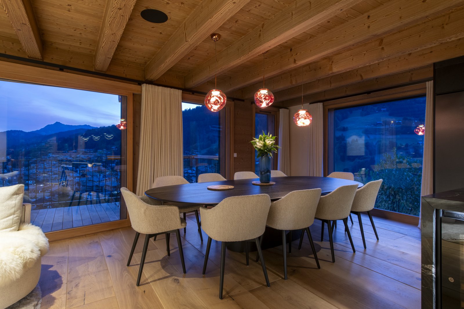 The kitchen is as well appointed as you would expect in a chalet of this quality – all the appliances are of a high standard so if you do choose to self cater you’ll enjoy cooking here. A private chef would also be at home in this space and that would be a truly indulgent way to enjoy time in this property. Another nice feature is that you have both indoor and outdoor dining options on this level – with a large custom oak table set on the balcony also being easily accessible when the weather allows. Wherever you sit you’ll be able to enjoy incredible views over the village of Les Gets, the slopes of both Chavannes and Mont Cherry, and the valley beyond. The aspect is westerly which is ideal for evening sunlight and magical Alpine sunsets.