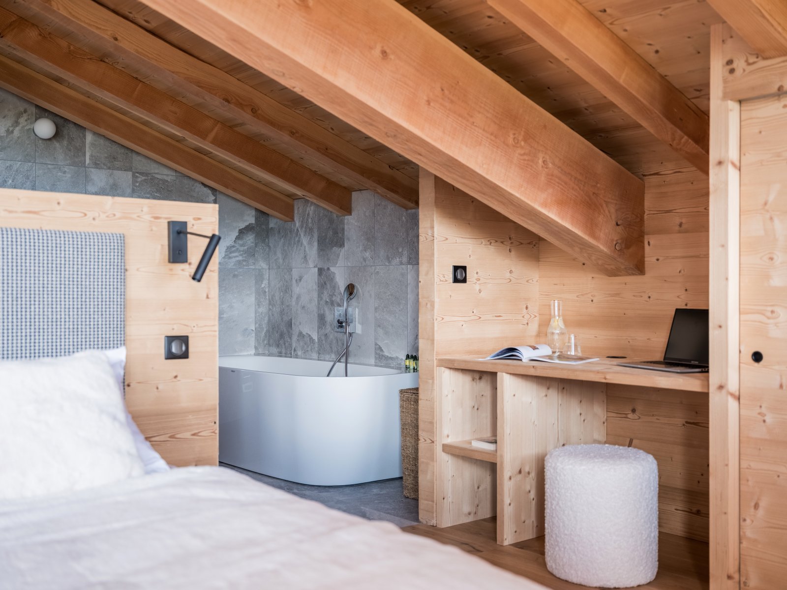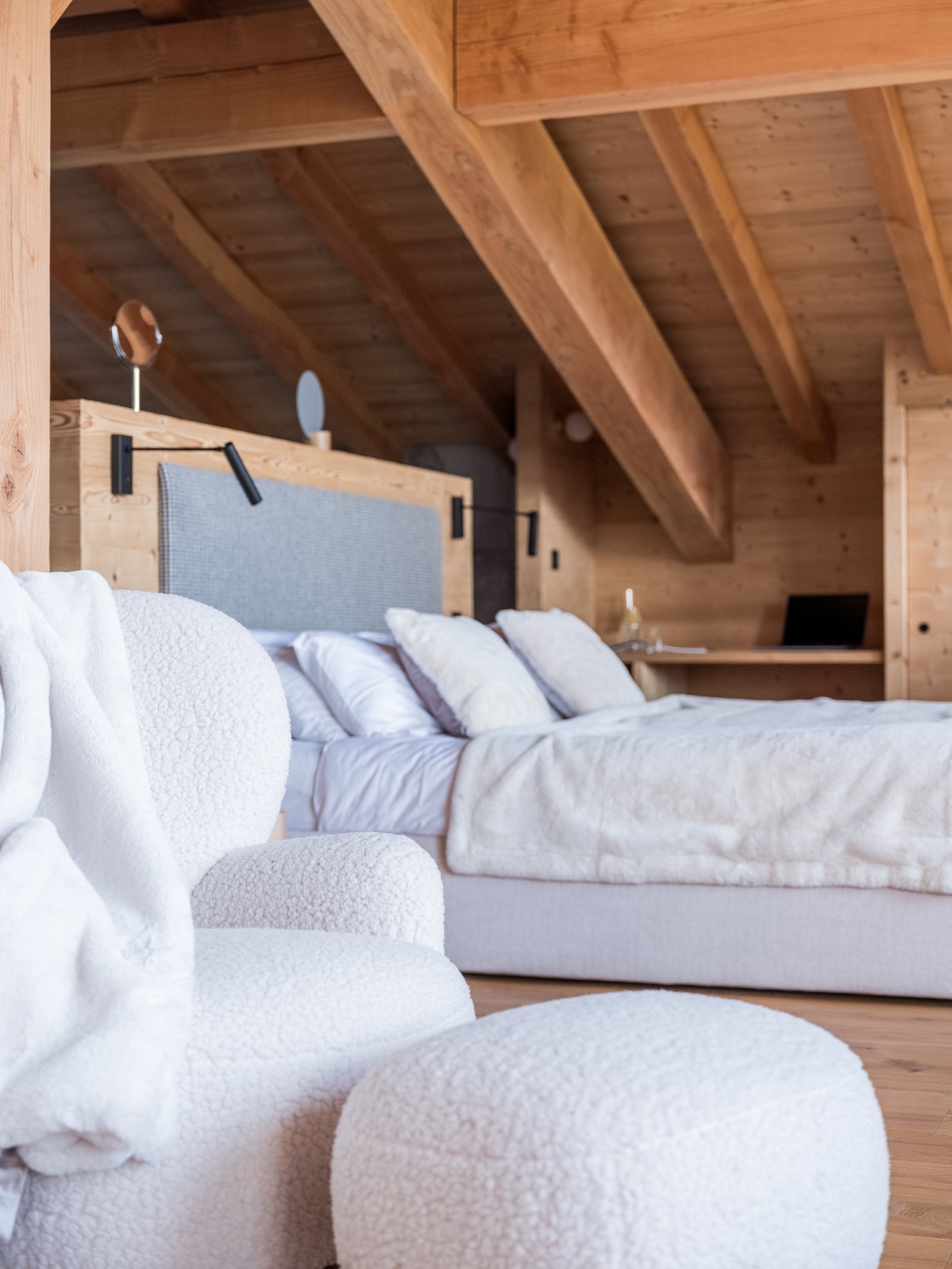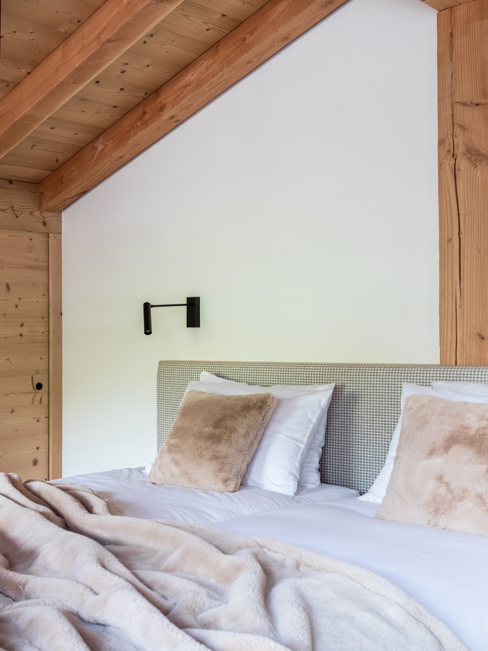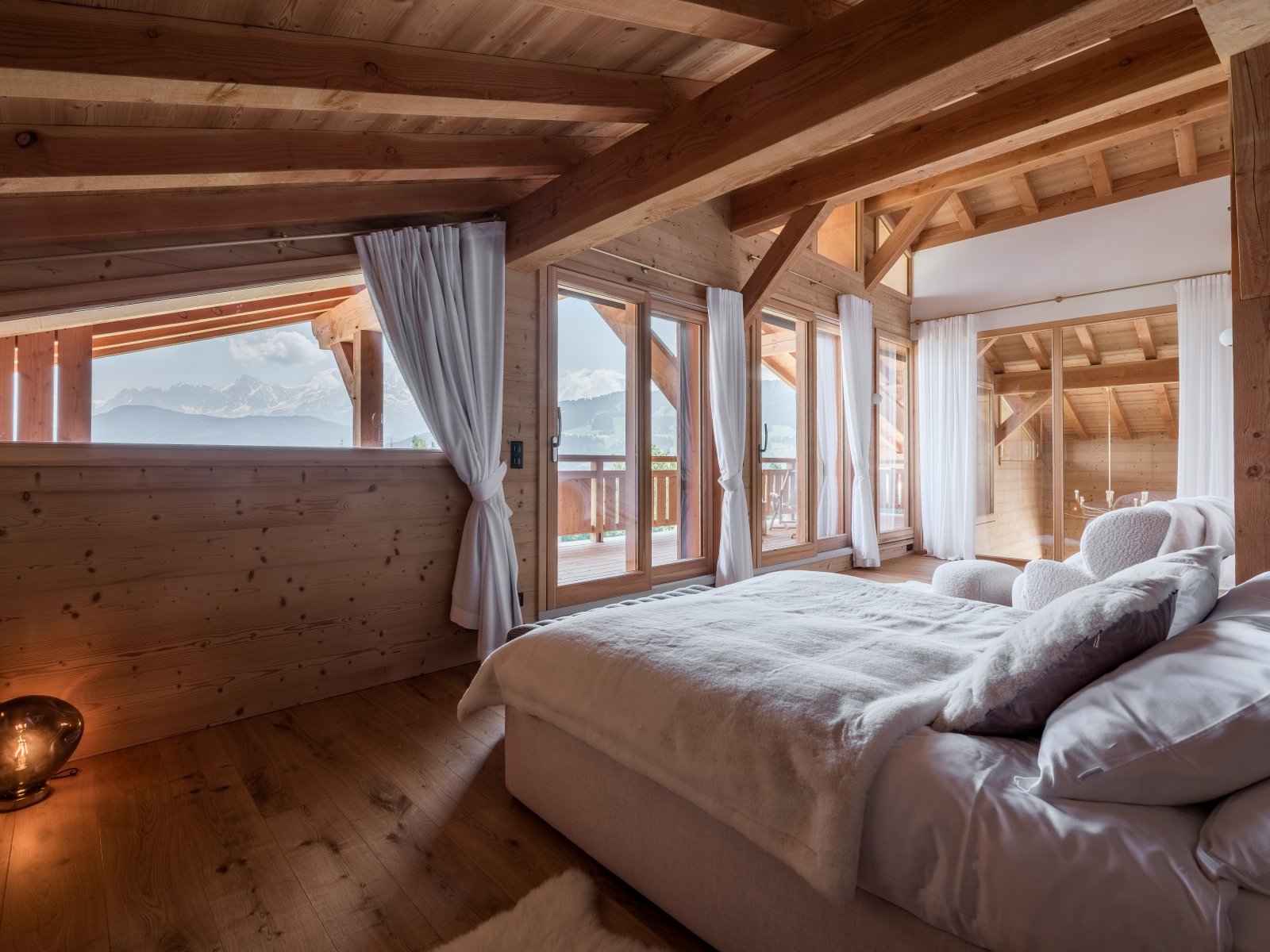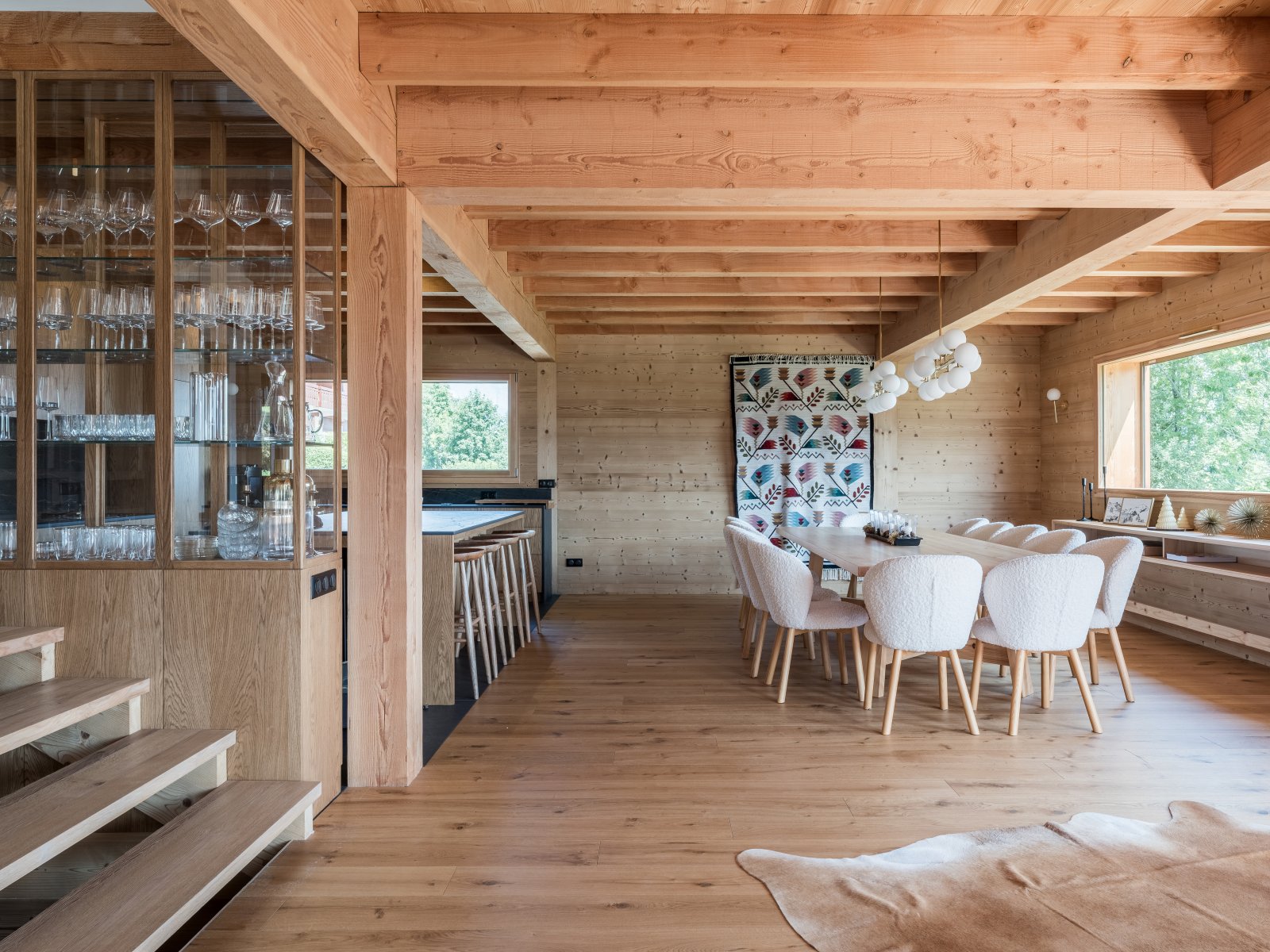 Thanks to its modern, open-plan design, every room is bathed in soft natural light and extends outwards. The mountain thus becomes a living tableau, a natural extension of your stay in this luxury chalet.