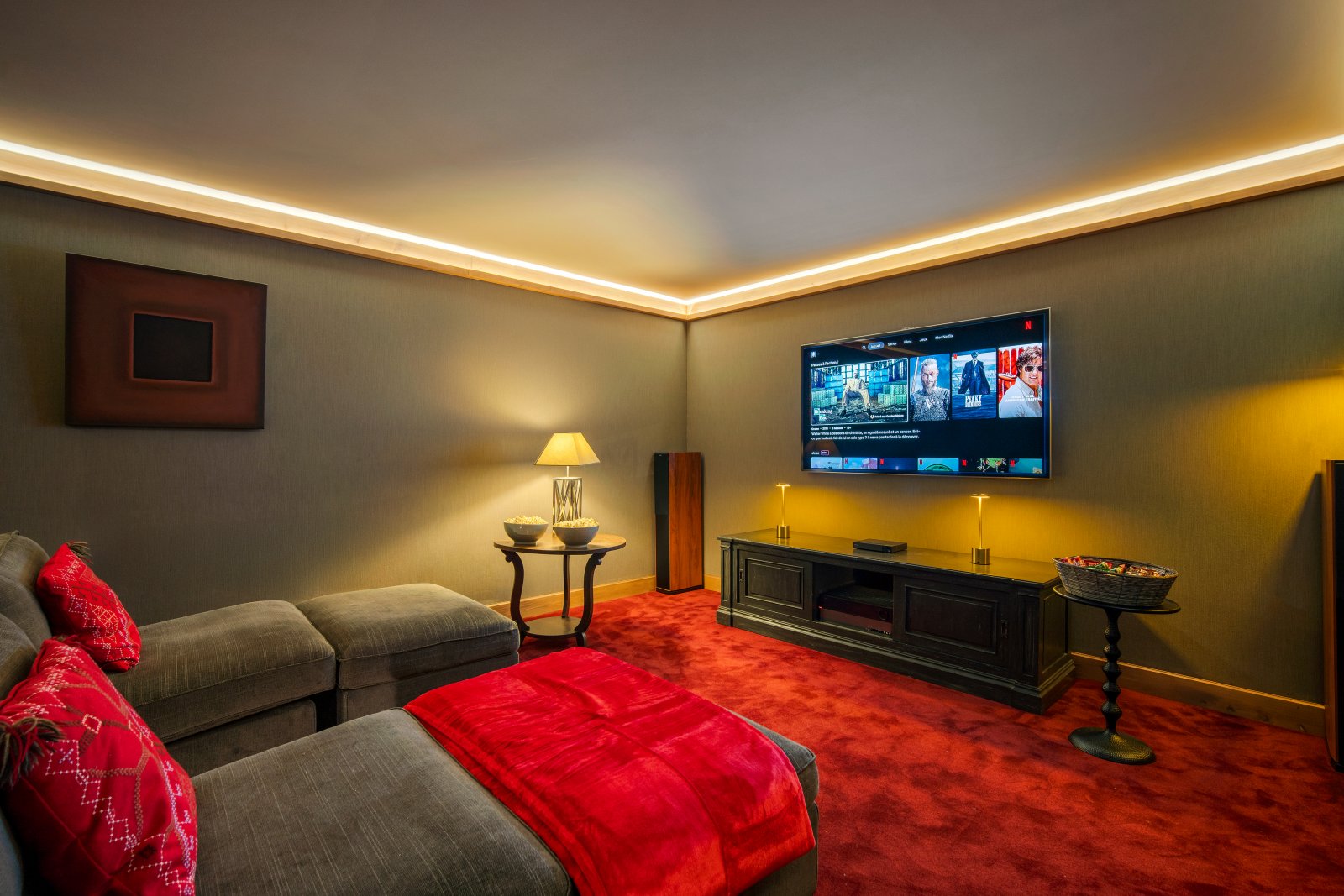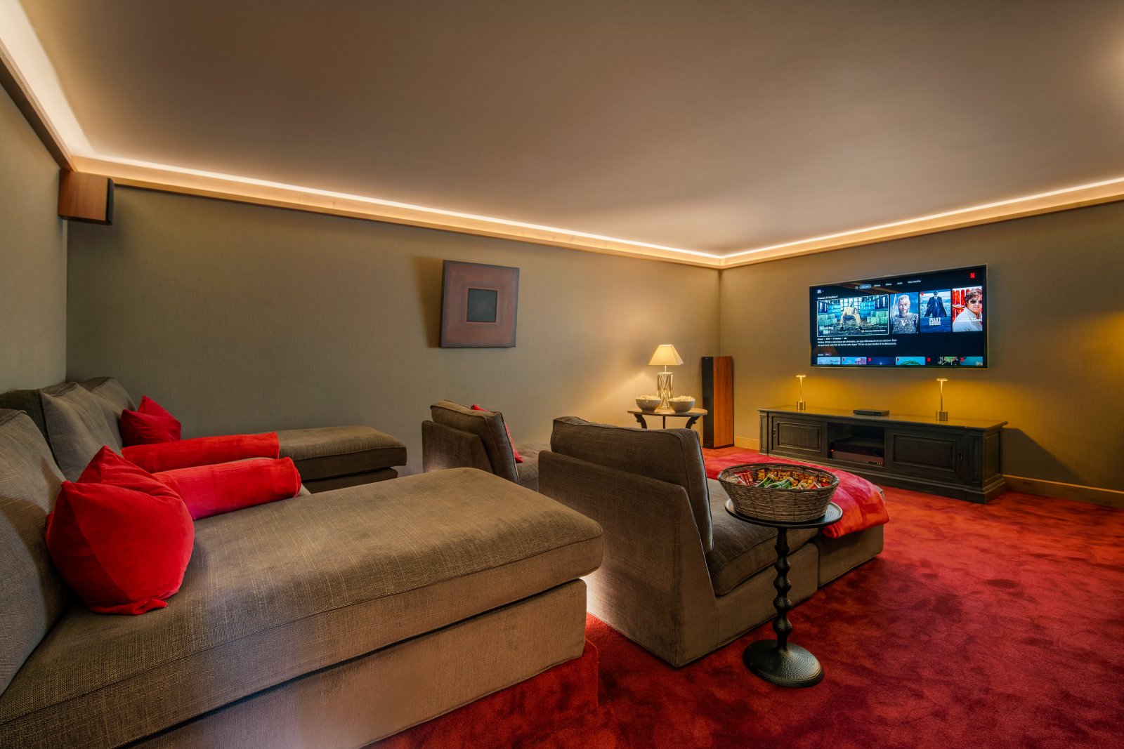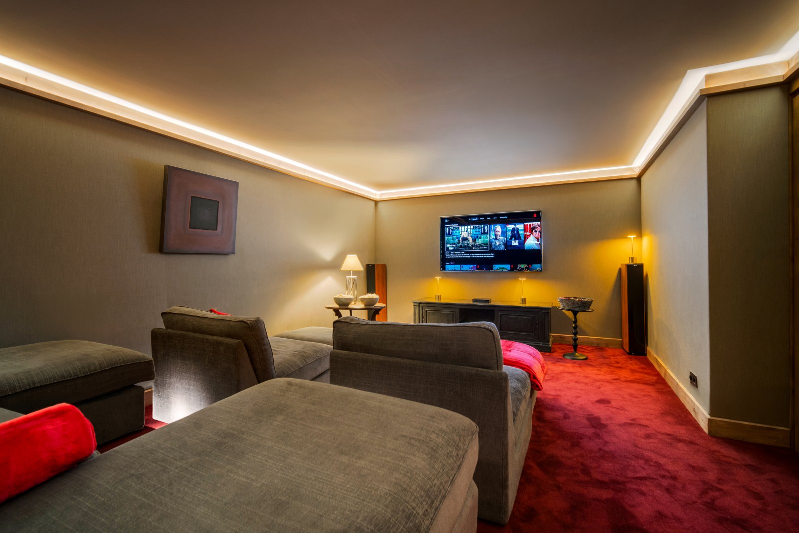 Level -2 – Family & Entertainment Zone: Perfect for children, teens, or extra guests, this floor ensures fun and functionality. Bedroom 5 has four single beds (90 cm), access to a private terrace, and a full bathroom with both bathtub and shower. Bedroom 6 has a single bed (90 cm), cozy and ideal for a child or solo guest. Bedroom 7 has a double bed (140 cm), perfect for couples or teens. A shared bathroom is available for Bedrooms 6 and 7, along with two additional separate WCs. The laundry room includes a washer and dryer. The private cinema room is equipped with an LCD screen and surround sound, perfect for evening movie marathons.