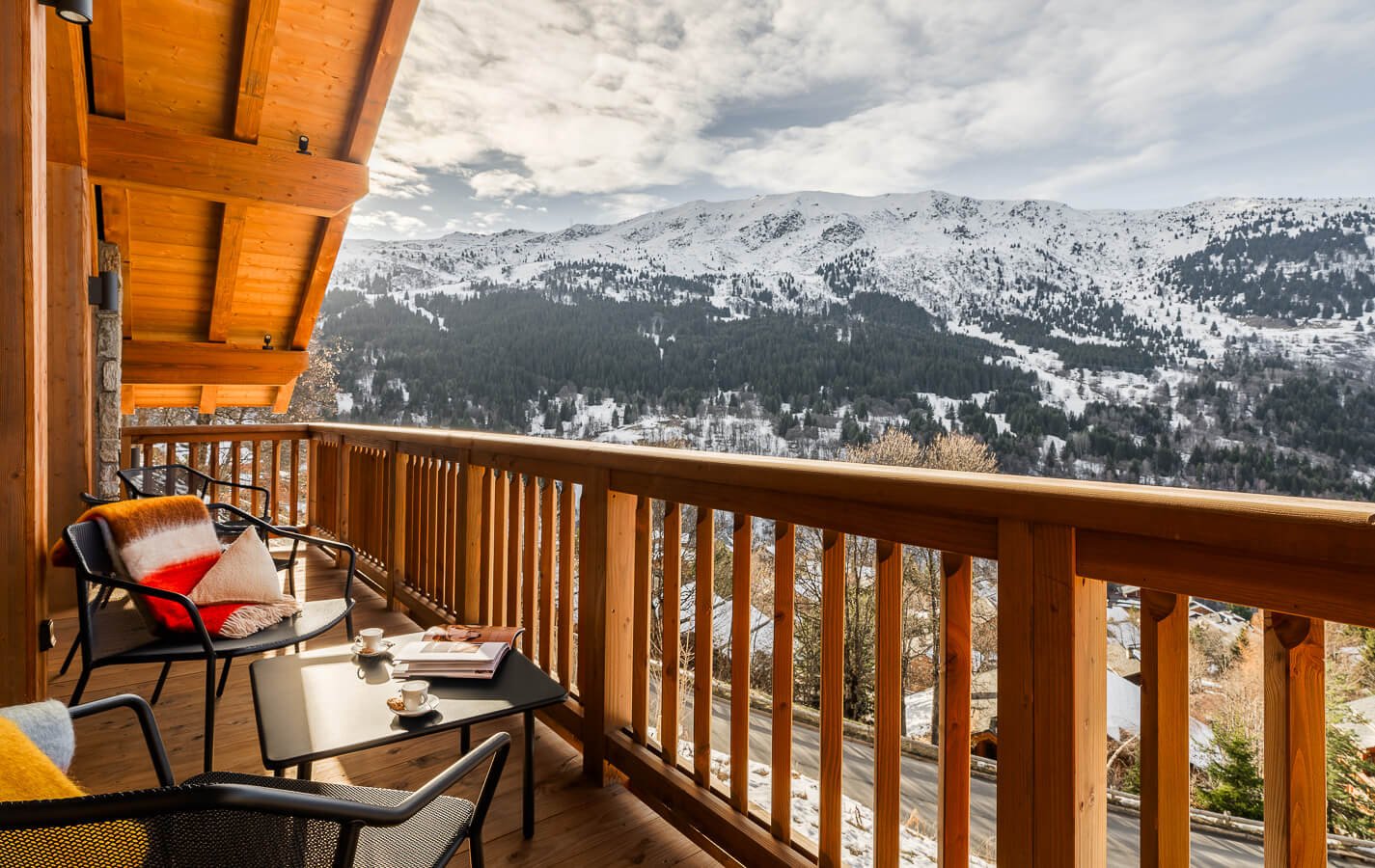 On holiday, what is better than relaxing on a beautiful terrace while taking in the breathtaking view of the mountains? Built like a hamlet hanging from the mountain face, the Falcon resort and this chalet afford a breathtaking view of the Méribel valley and the surrounding mountains.