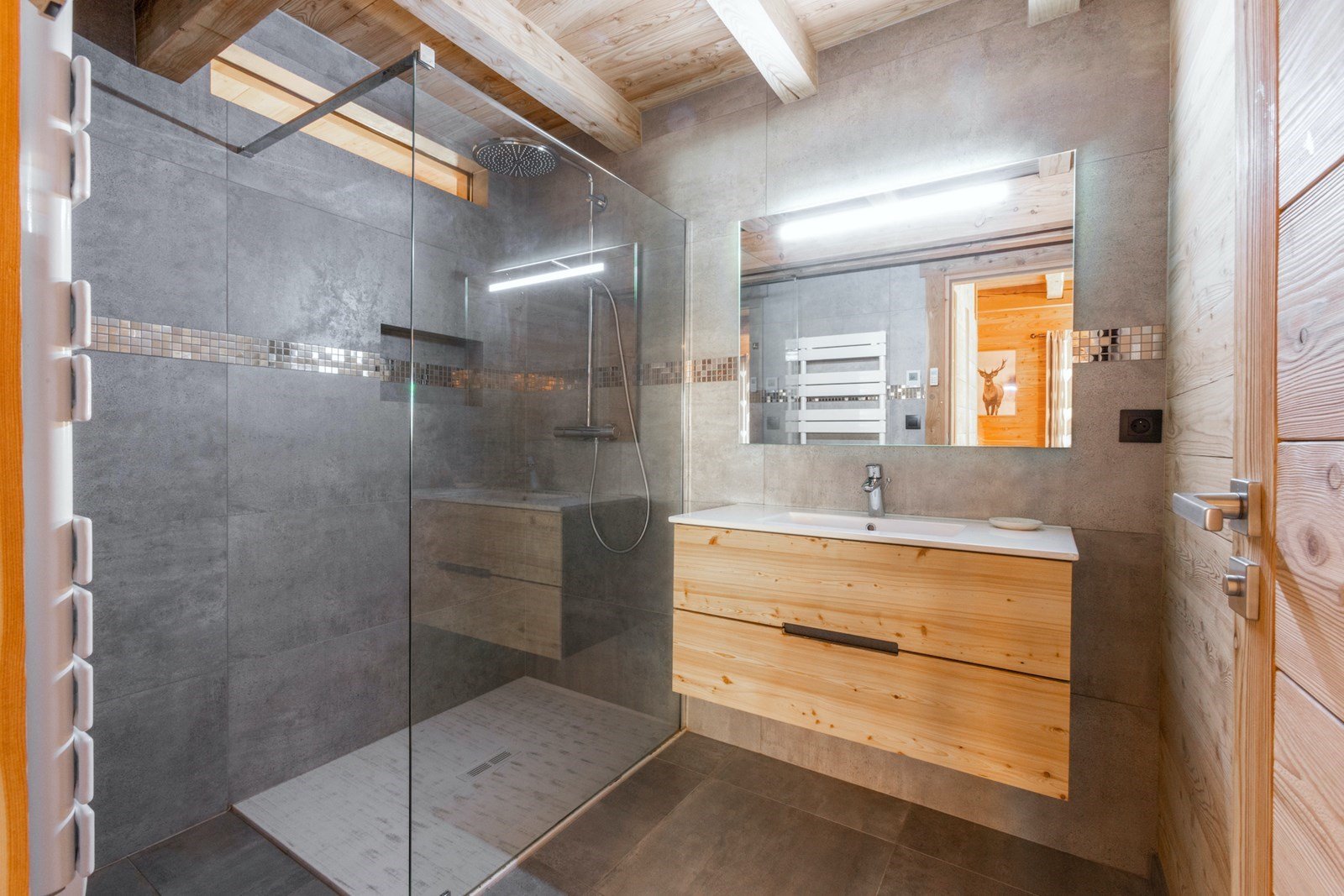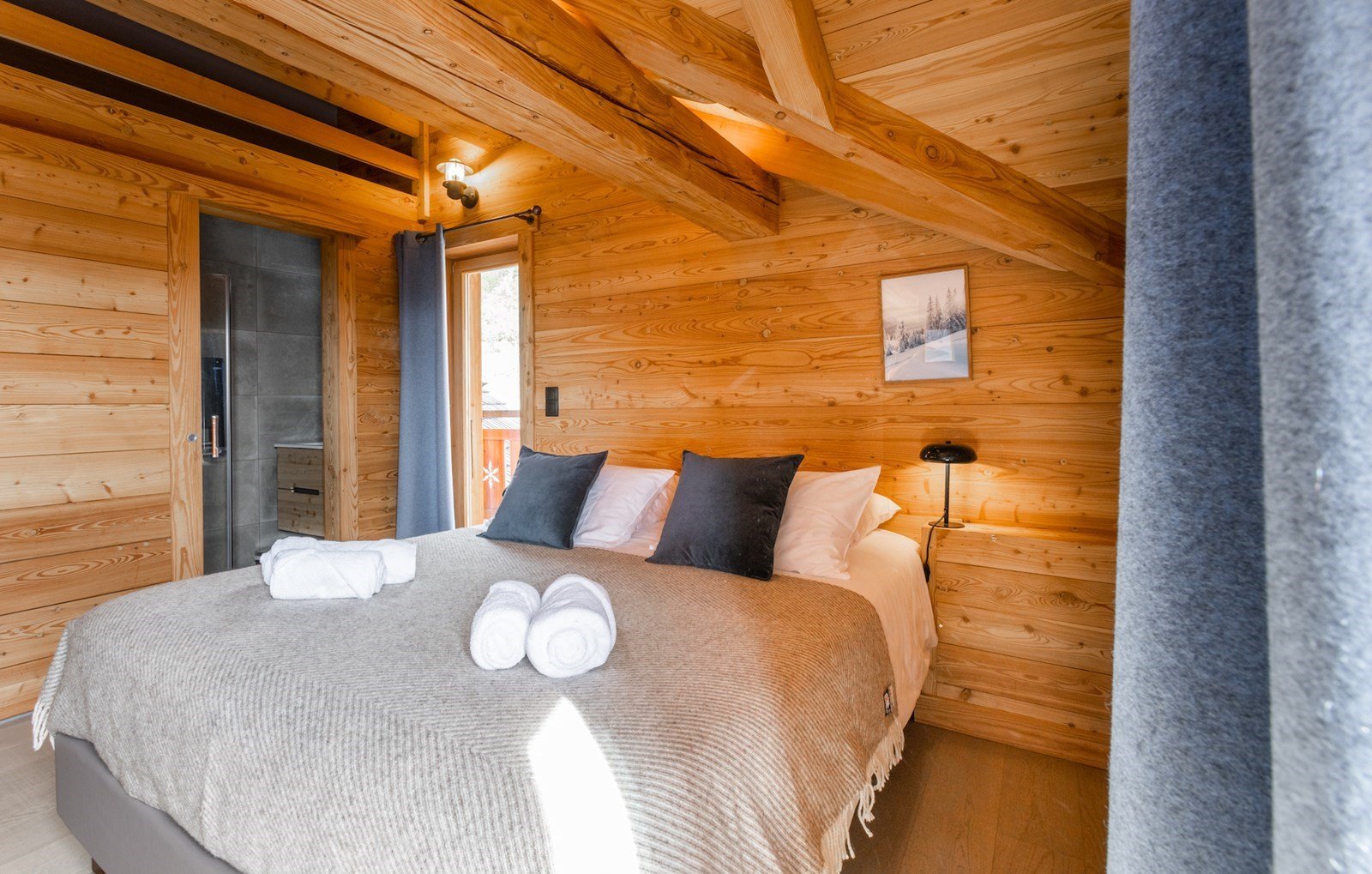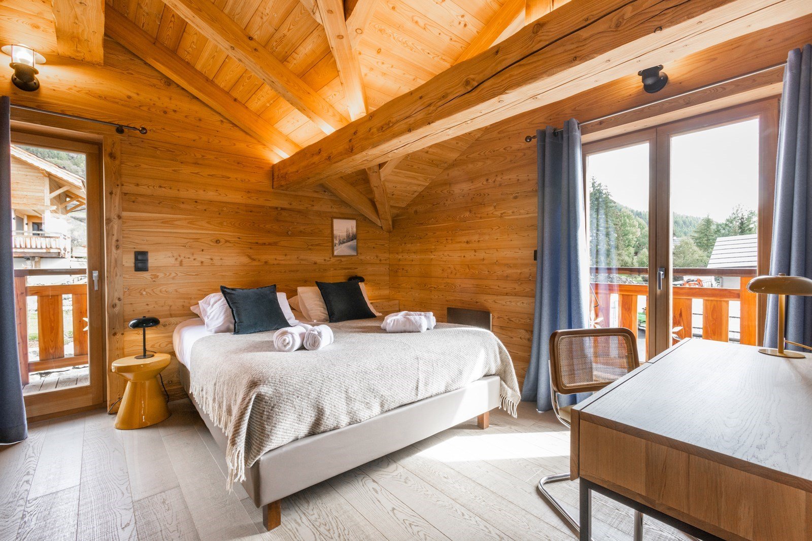 Facing the Monêtier-les-Bains glacier, the master bedroom offers a majestic spectacle that renews itself with each dawn. Nature in panoramic view, from your bed.