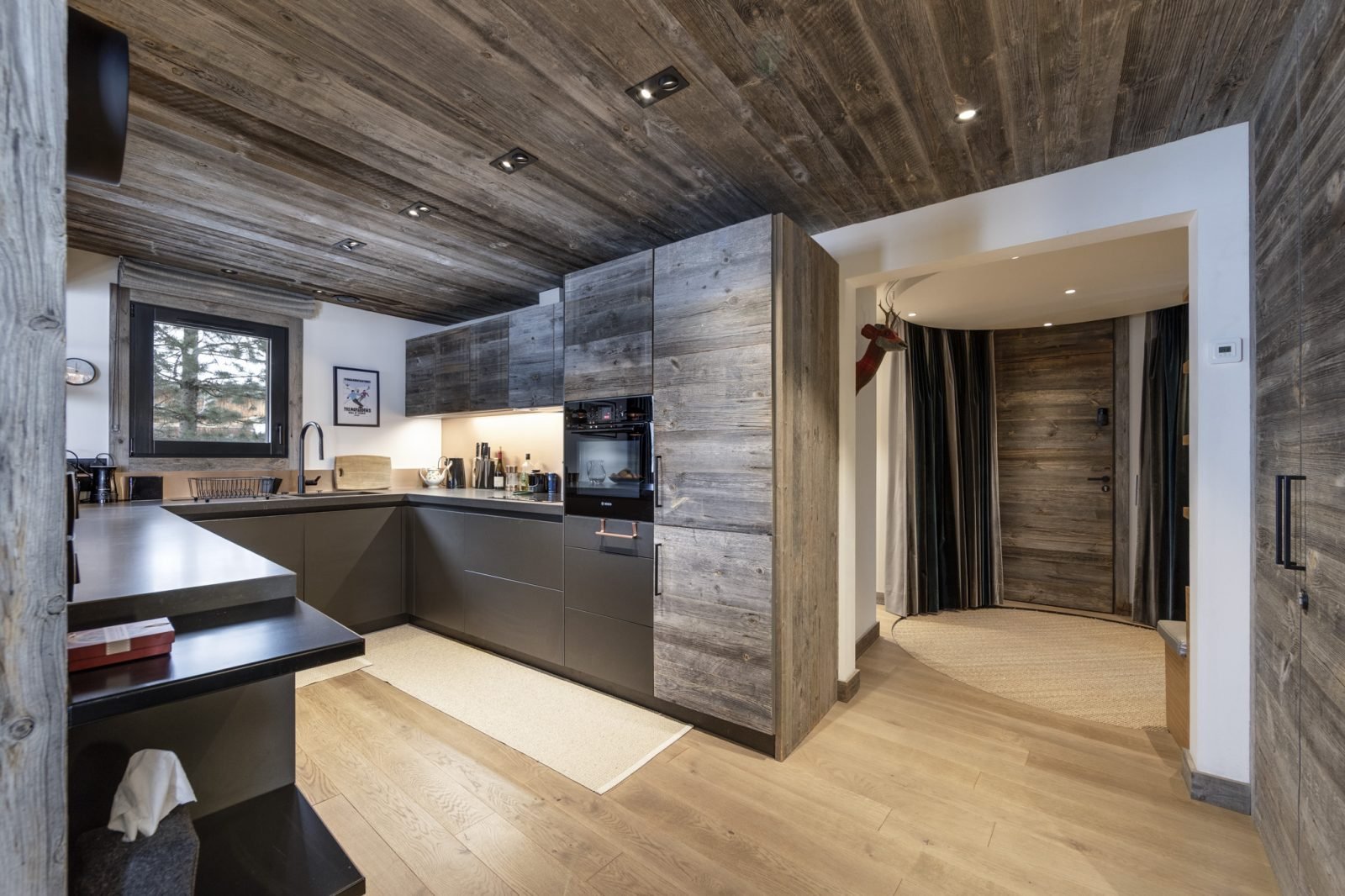 The apartment also benefits from a ski room with boot heaters on the ground floor of the building, and parking for two cars in the underground garage.