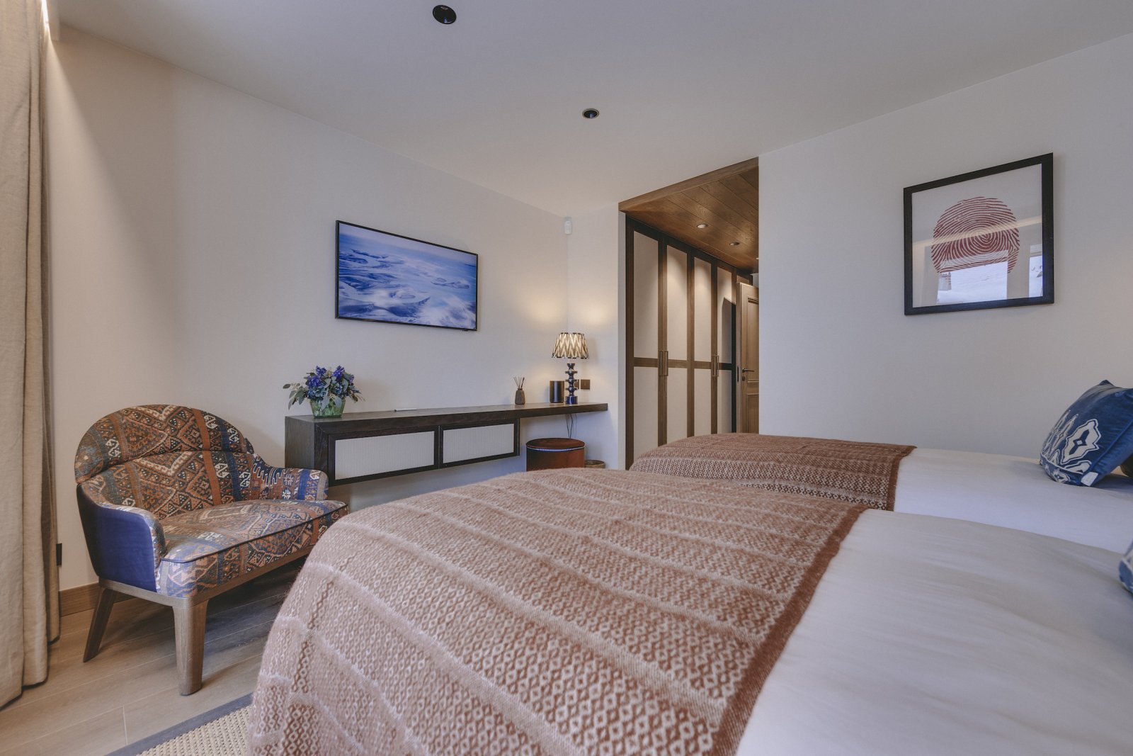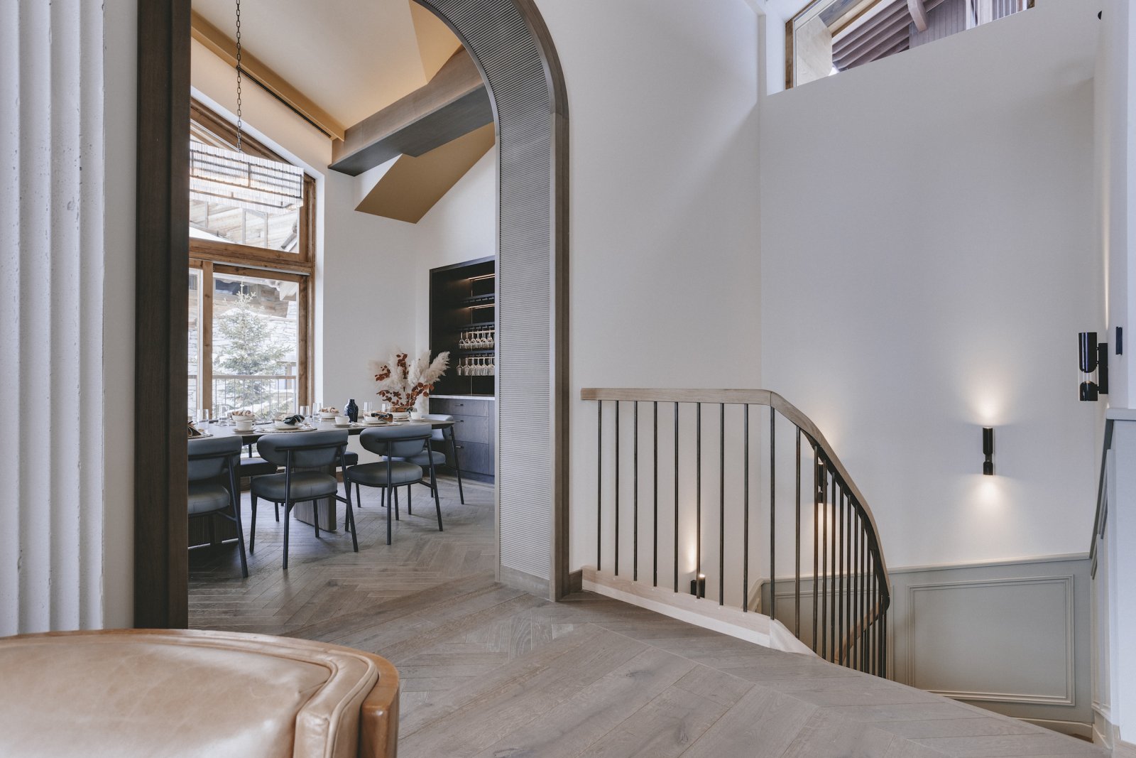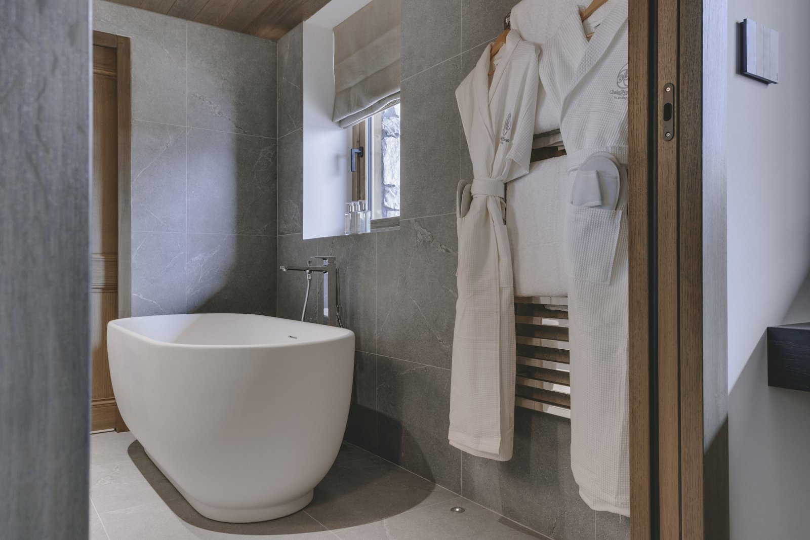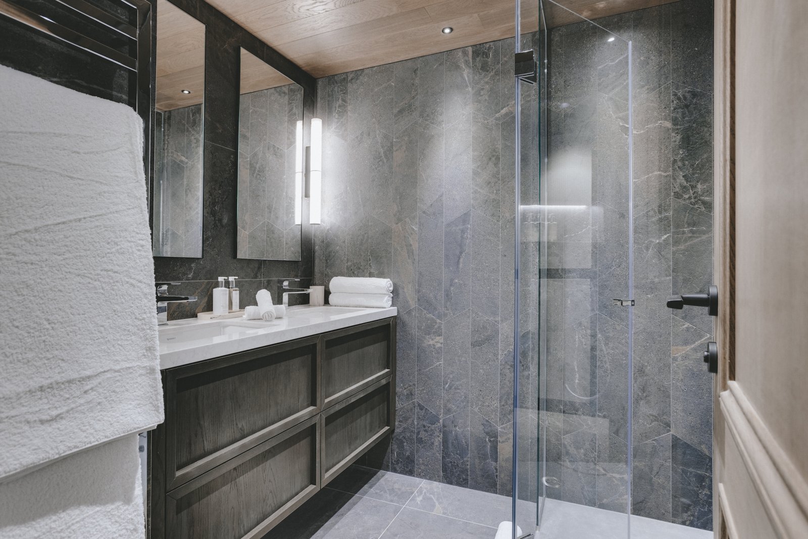 The upstairs living area is the most spectacular aspect to the building. The double height windows and ceilings provide a universal sense of space. The furniture is stylish and has been thoughtfully chosen for you to relax in luxury. Sitting in the lounge and watching the world ski past is one of the most enjoyable pastimes at Chalet La Tene.