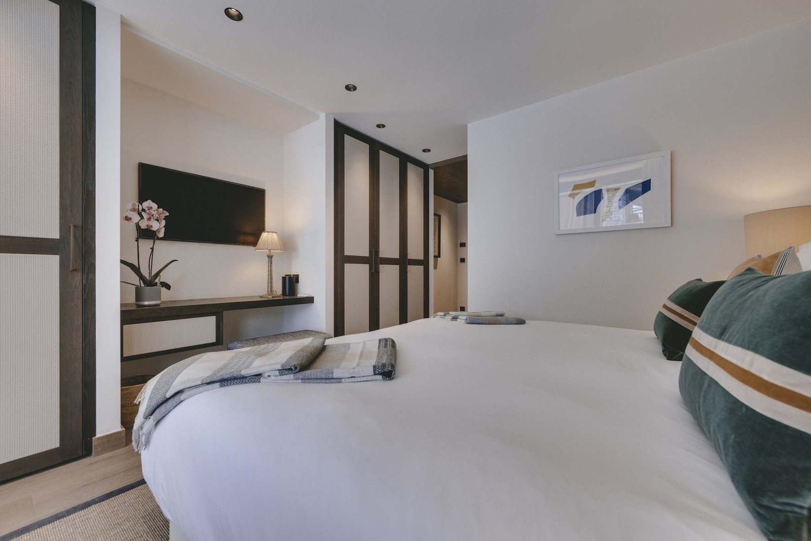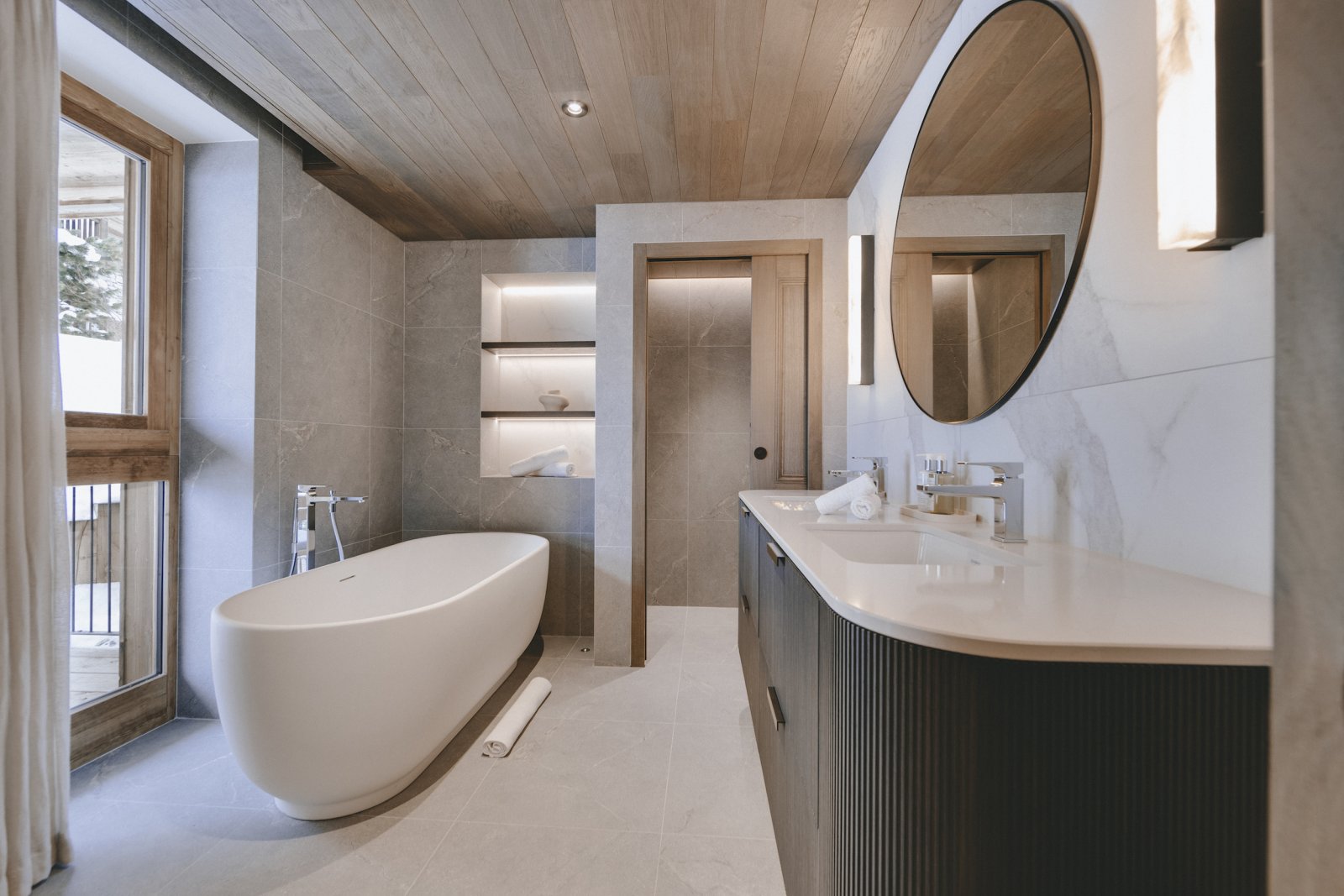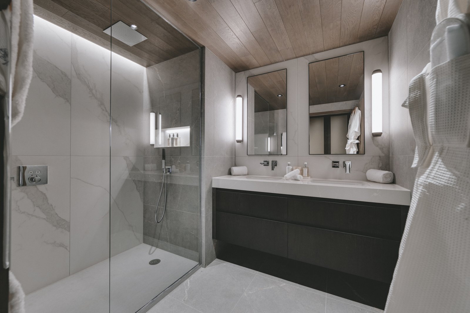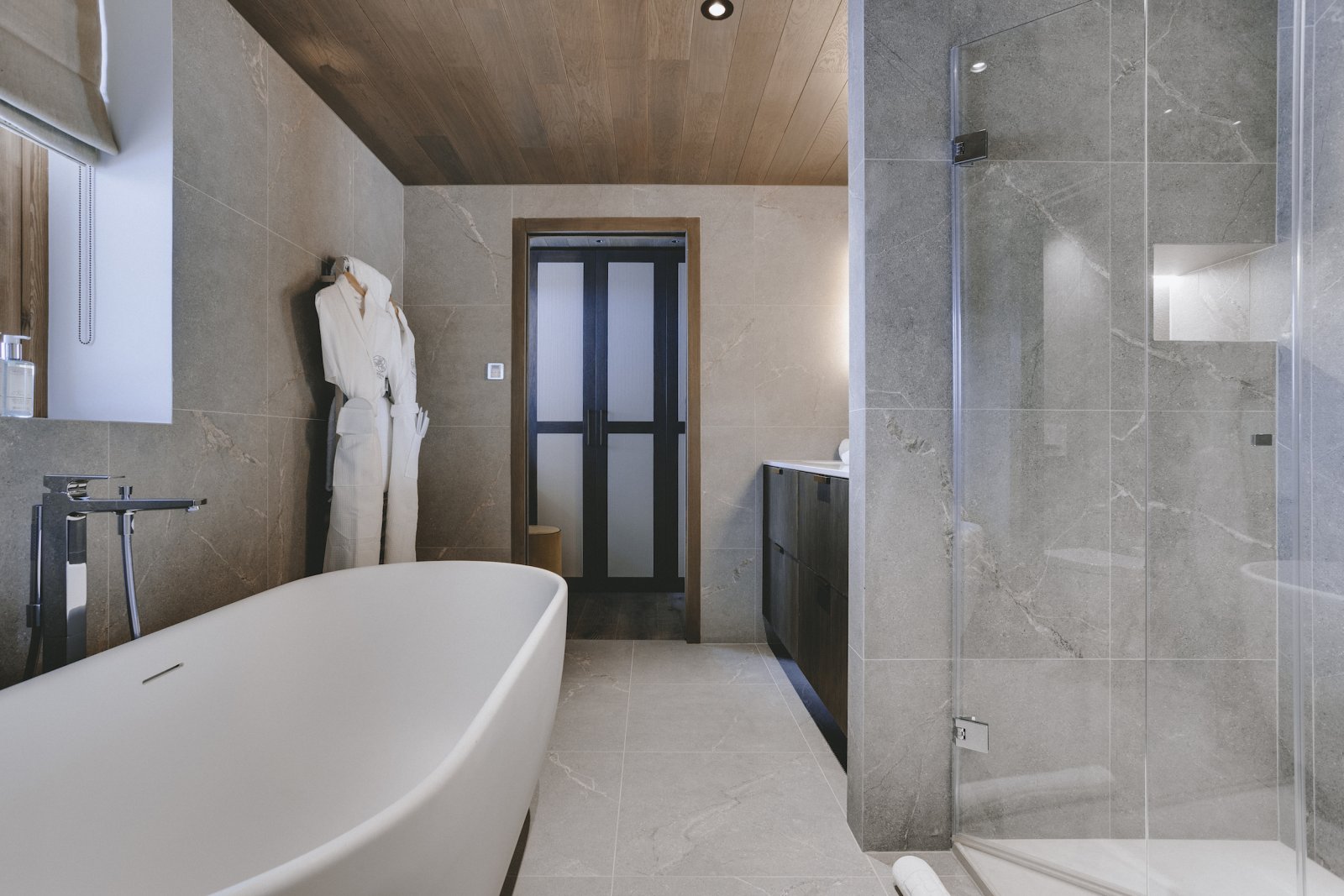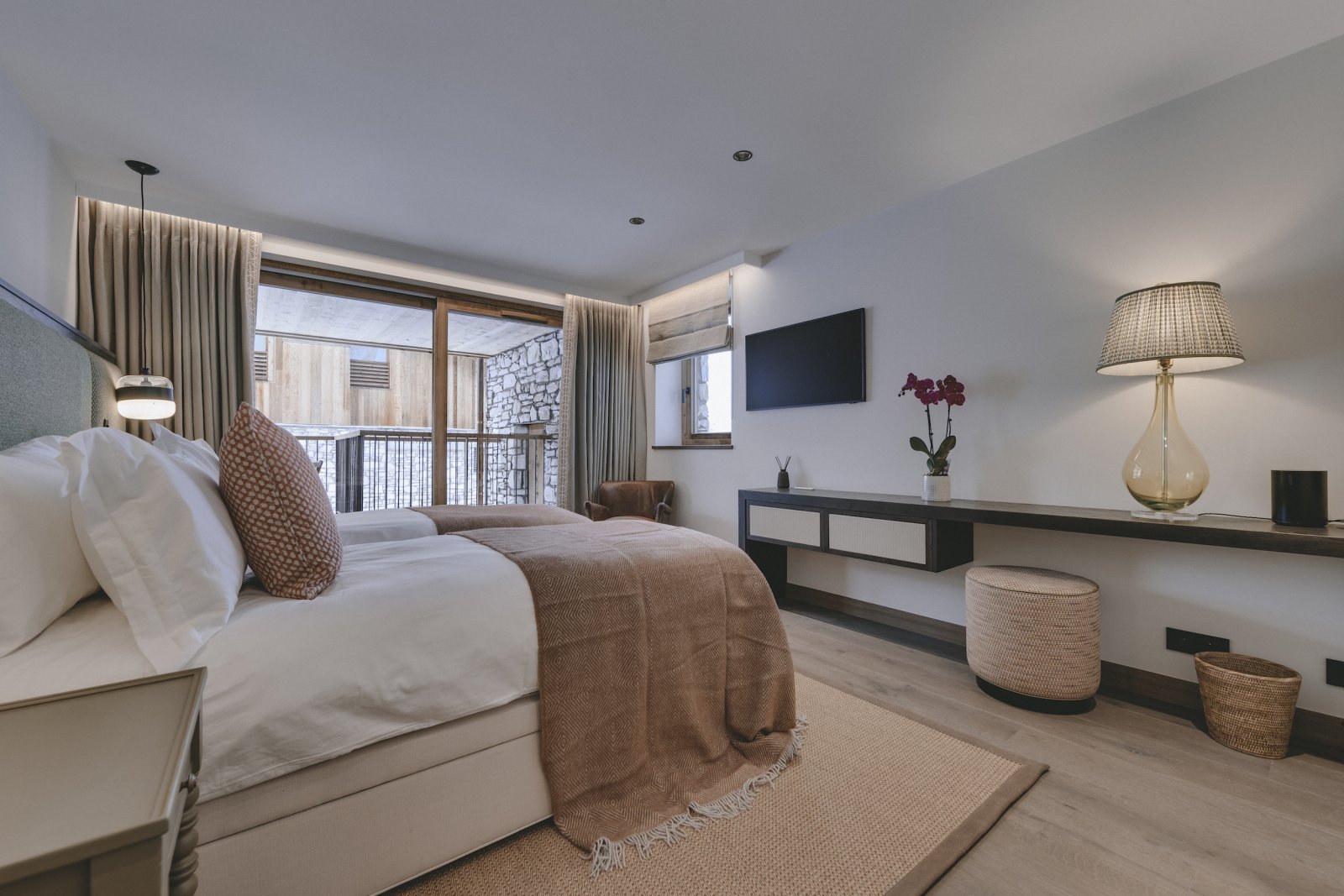 The upstairs living area is the most spectacular aspect to the building. The double height windows and ceilings provide a universal sense of space. The furniture is stylish and has been thoughtfully chosen for you to relax in luxury. Sitting in the lounge and watching the world ski past is one of the most enjoyable pastimes at Chalet La Tene.