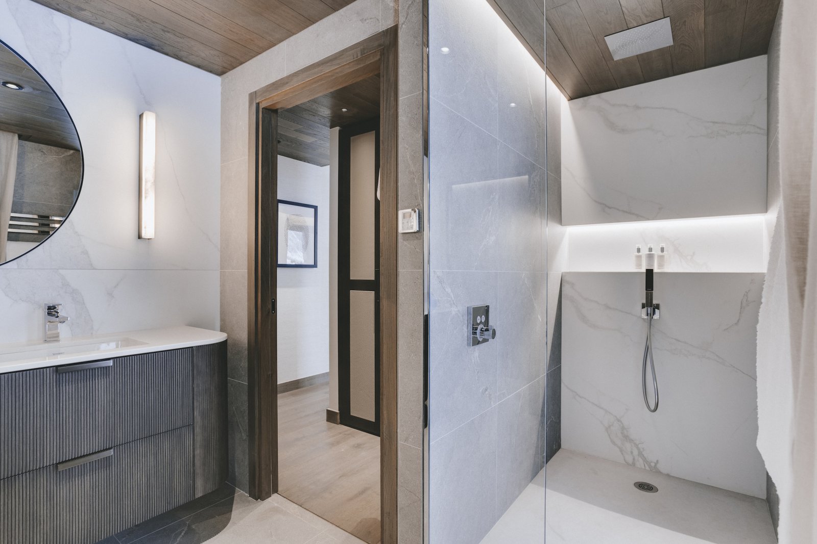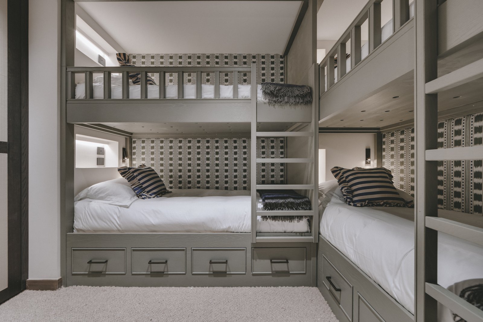 The 6 bedrooms and bunk room are spread across the next 2 floors. All rooms are bright and spacious with en suite bathrooms and balcony access. All rooms can be set up as double or twins to allow maximum flexibility for groups. The rooms all face south and offer views of the pistes and mountains