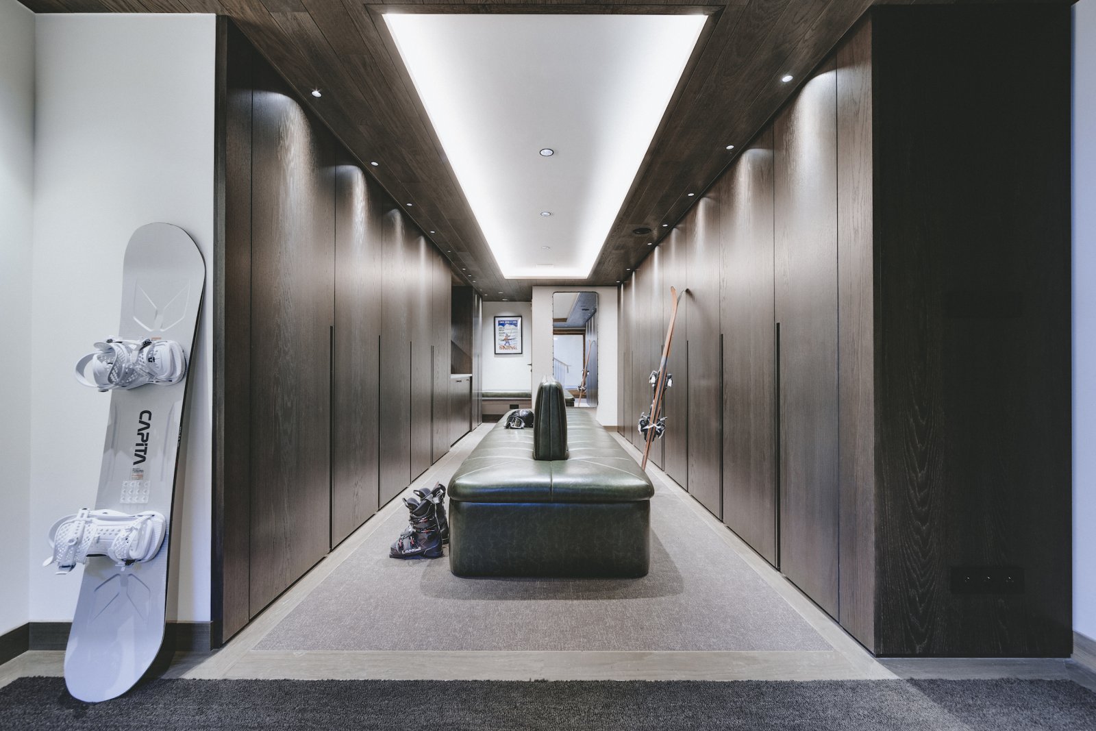 If you are accessing the chalet on skis, you take the stairs from the slope to the second floor of the chalet where the ski and boot room is located.