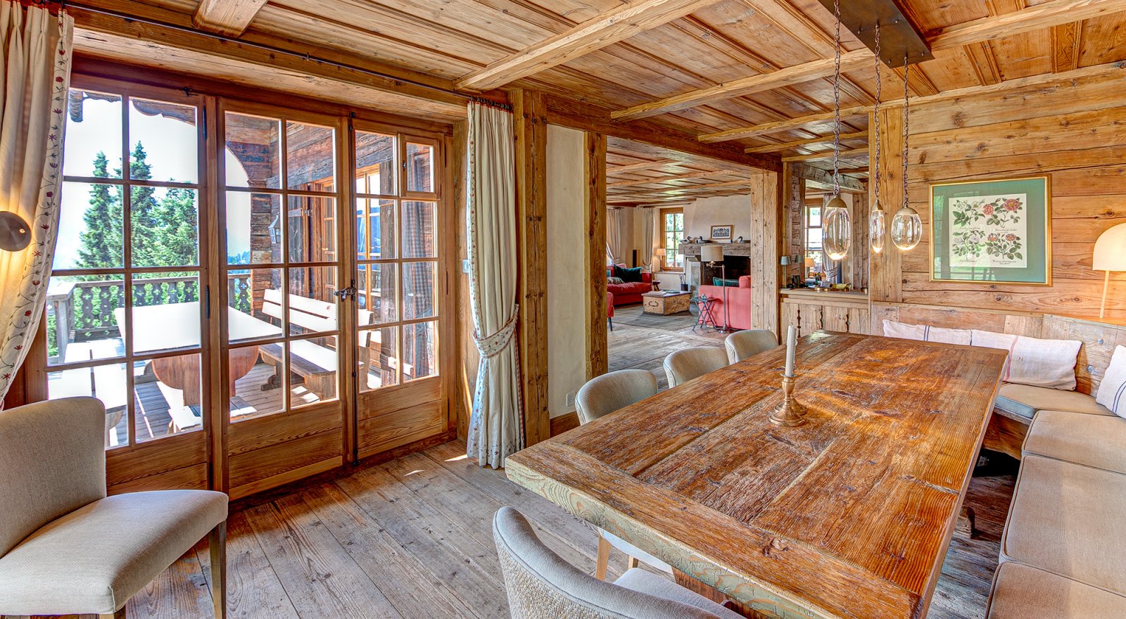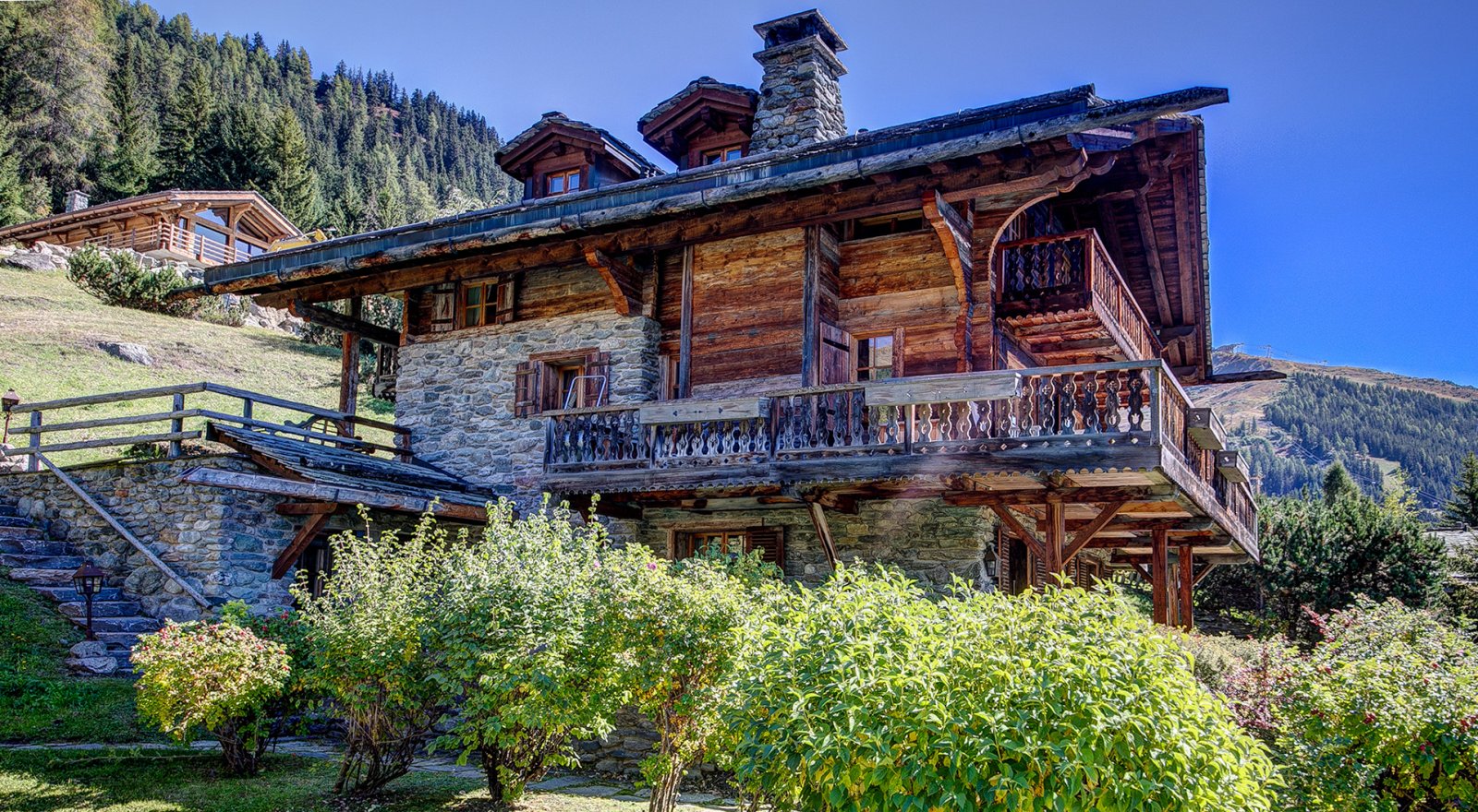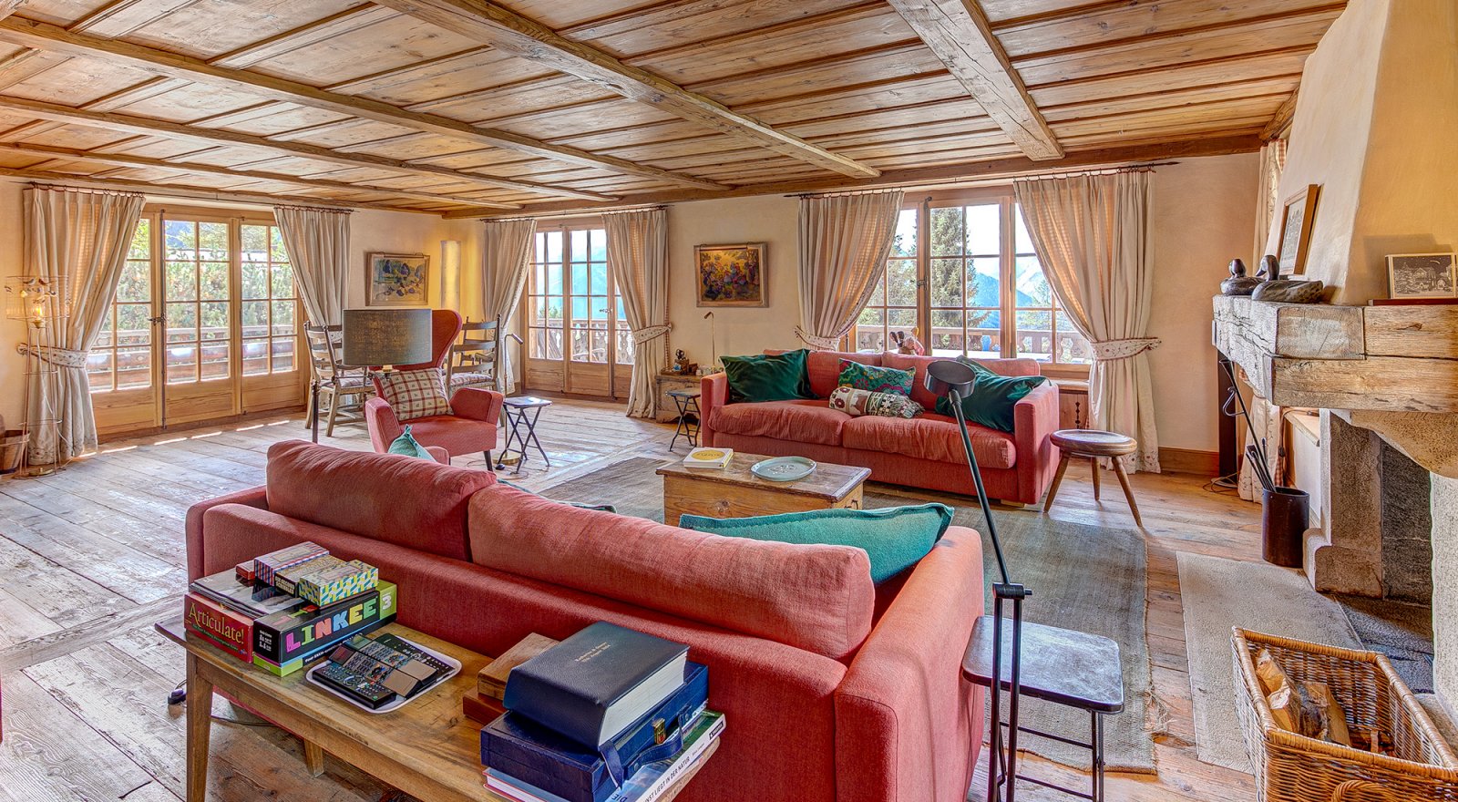 Les Quatre Feuilles is a magnificent 350m² chalet located directly on the ski piste of Les Esserts, offering the ultimate blend of alpine charm and modern comfort. Finished throughout with timeless old wood, oak panelling, and natural stone, this private mountain retreat is beautifully designed and perfectly oriented to capture panoramic views of the surrounding peaks and ski area.