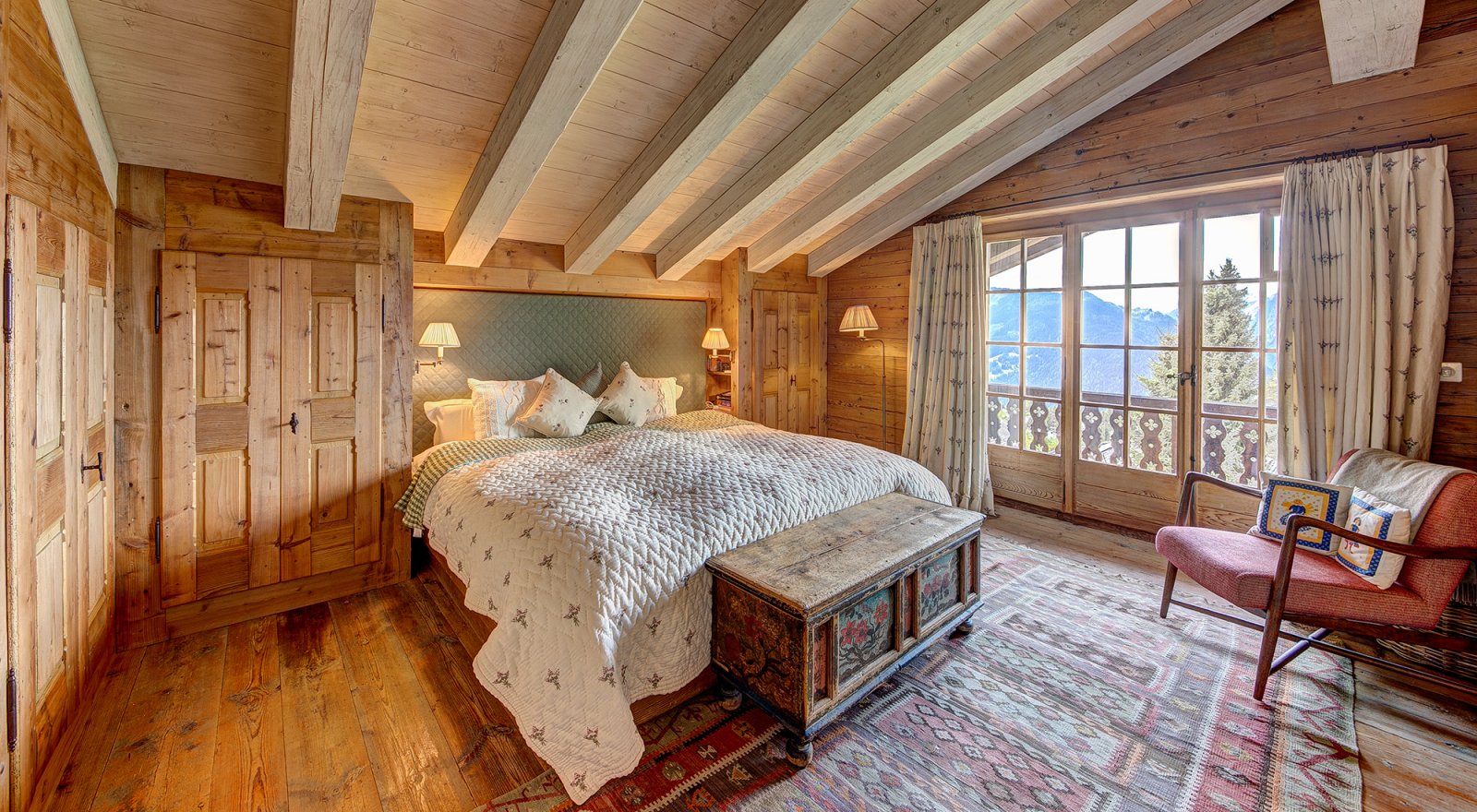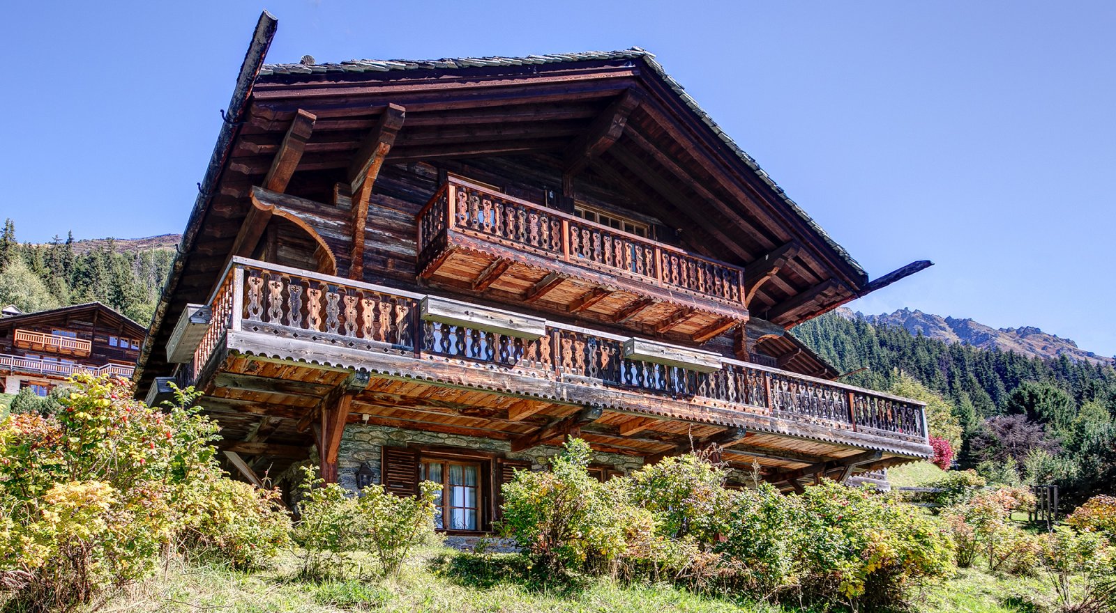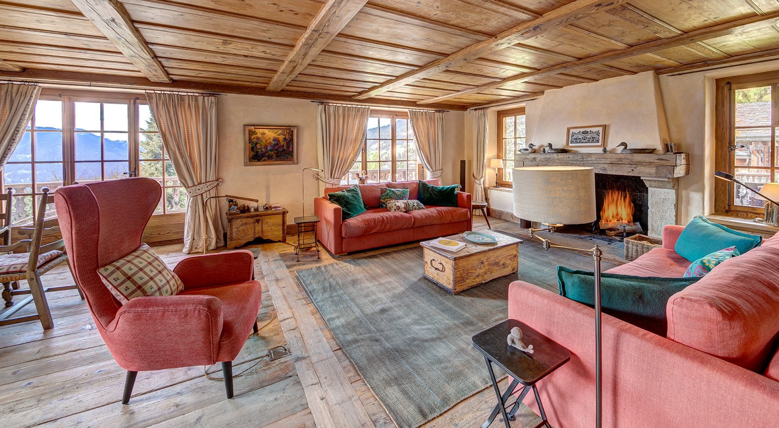 Les Quatre Feuilles is a magnificent 350m² chalet located directly on the ski piste of Les Esserts, offering the ultimate blend of alpine charm and modern comfort. Finished throughout with timeless old wood, oak panelling, and natural stone, this private mountain retreat is beautifully designed and perfectly oriented to capture panoramic views of the surrounding peaks and ski area.