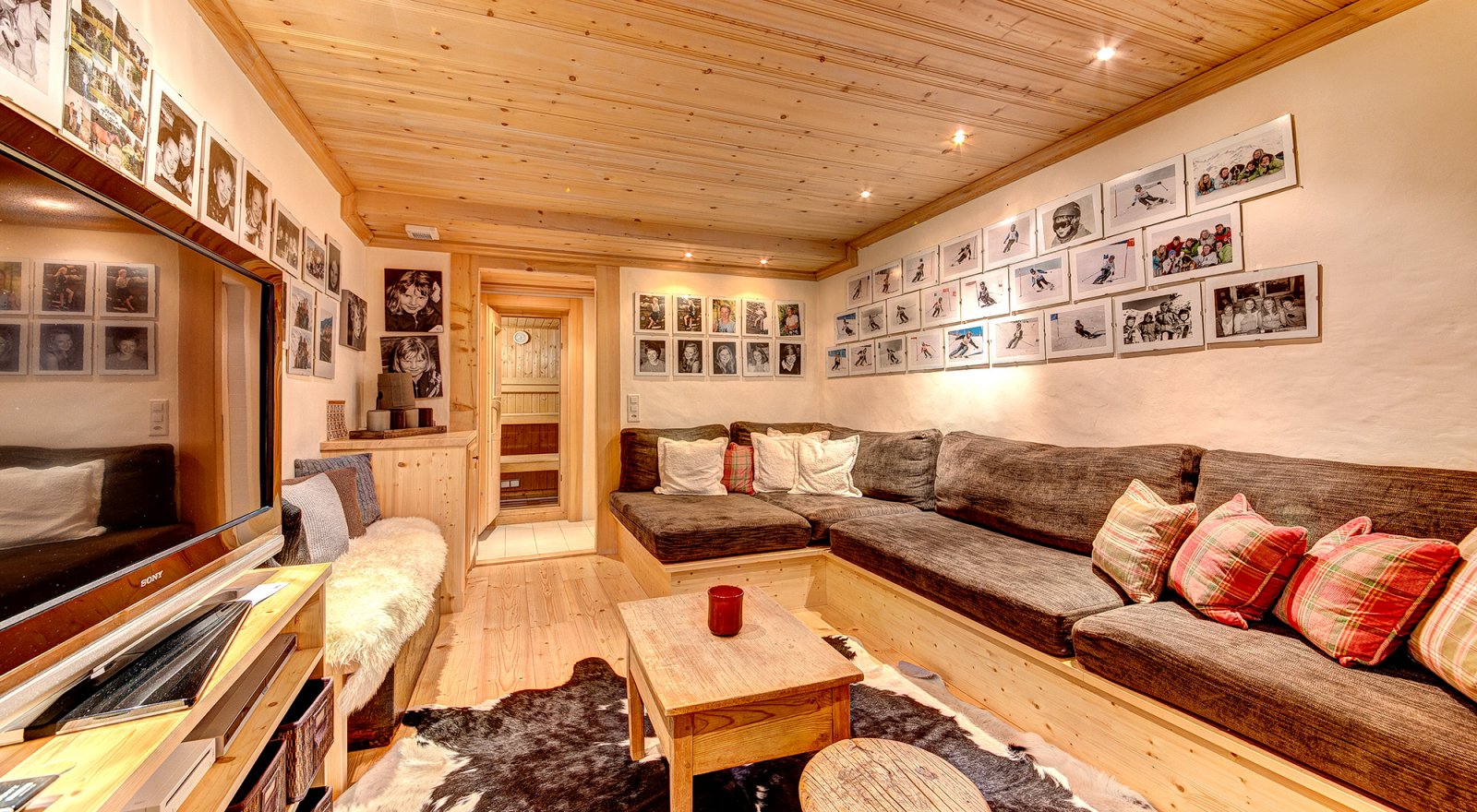 The chalet accommodates up to 12 guests across two distinct sleeping quarters. A central floor is dedicated to spacious living and dining, creating the ideal setting for entertaining or relaxing by the fire. Additional amenities include a separate tv/cinema room and a separate sauna with shower room.