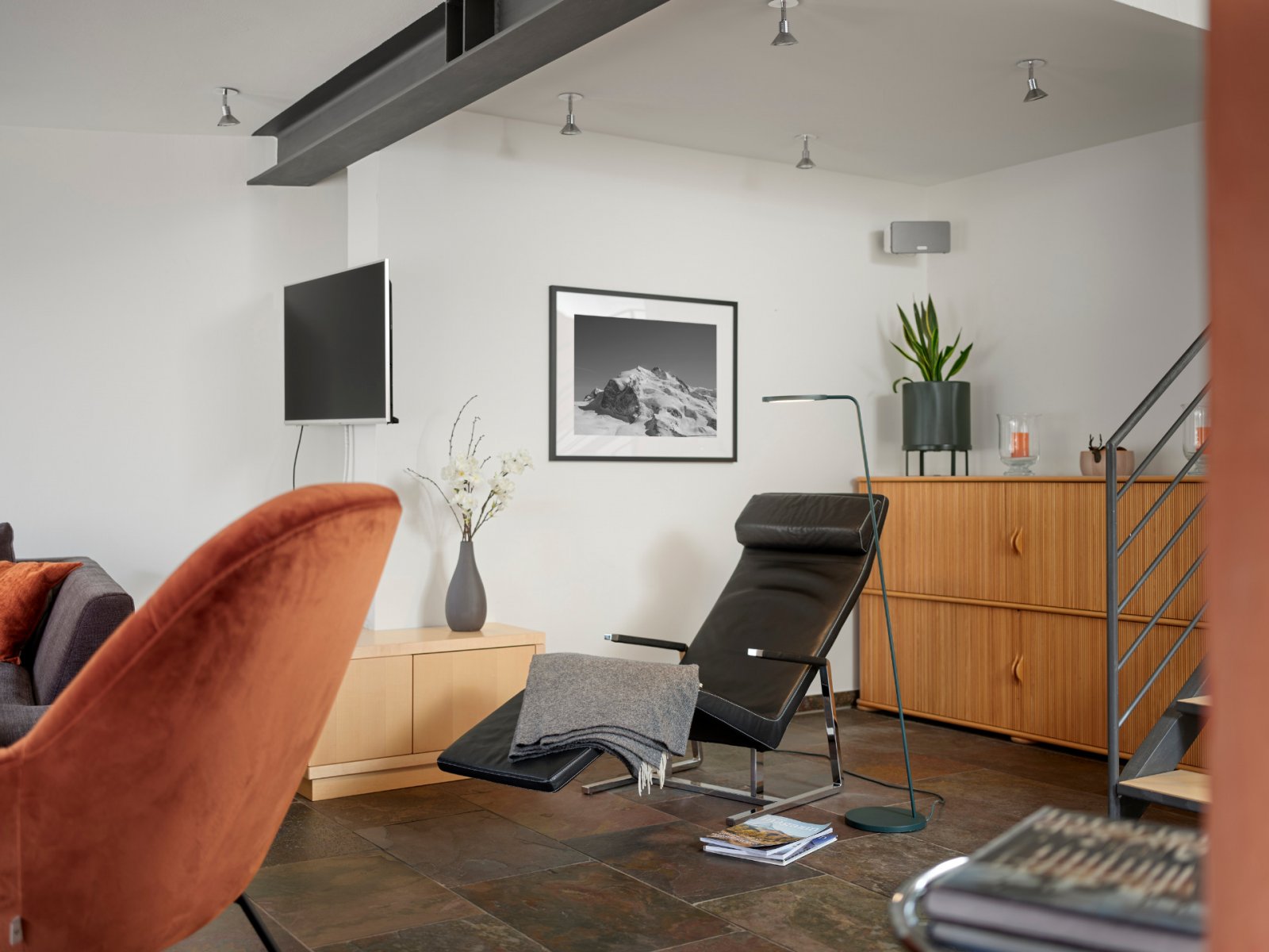 Recently renovated, this large and tastefully furnished duplex apartment is on the top two floors of the Ascot building. Fully equipped with everything you might need during your holiday, there is a sunny balcony with a view of the Matterhorn. And if there’s still something missing, we are there to take care of it!
