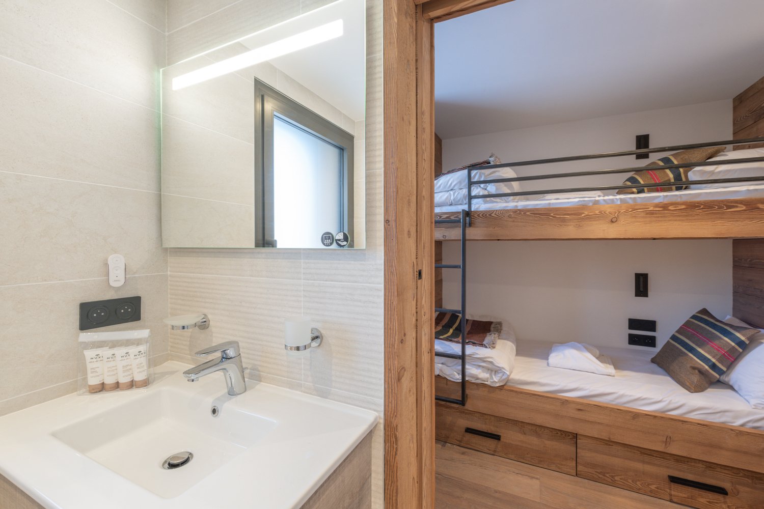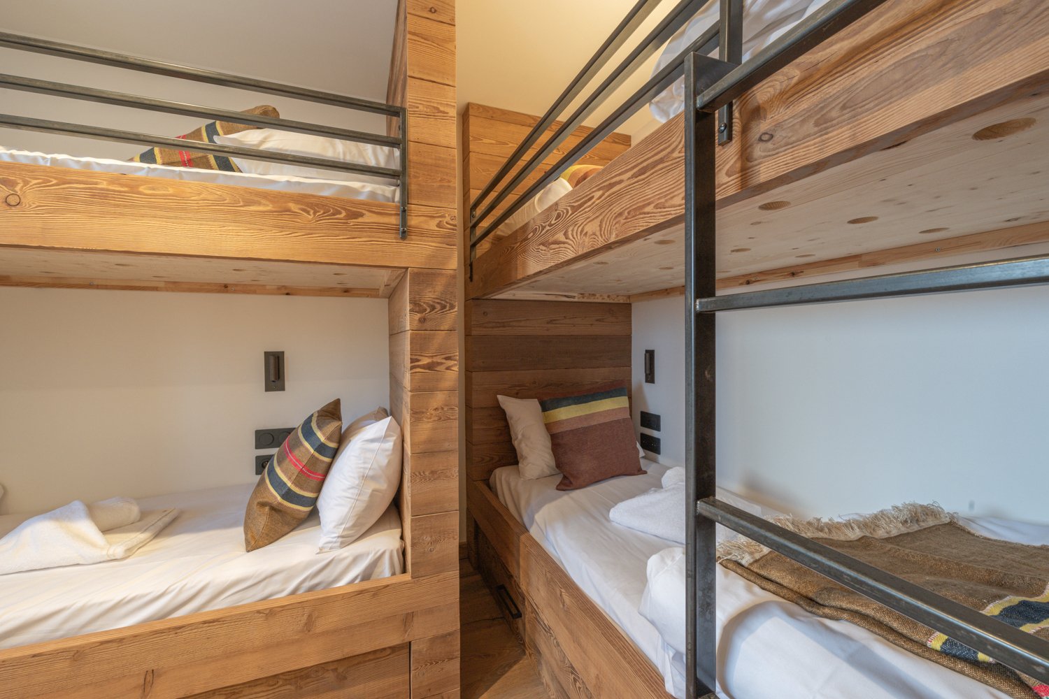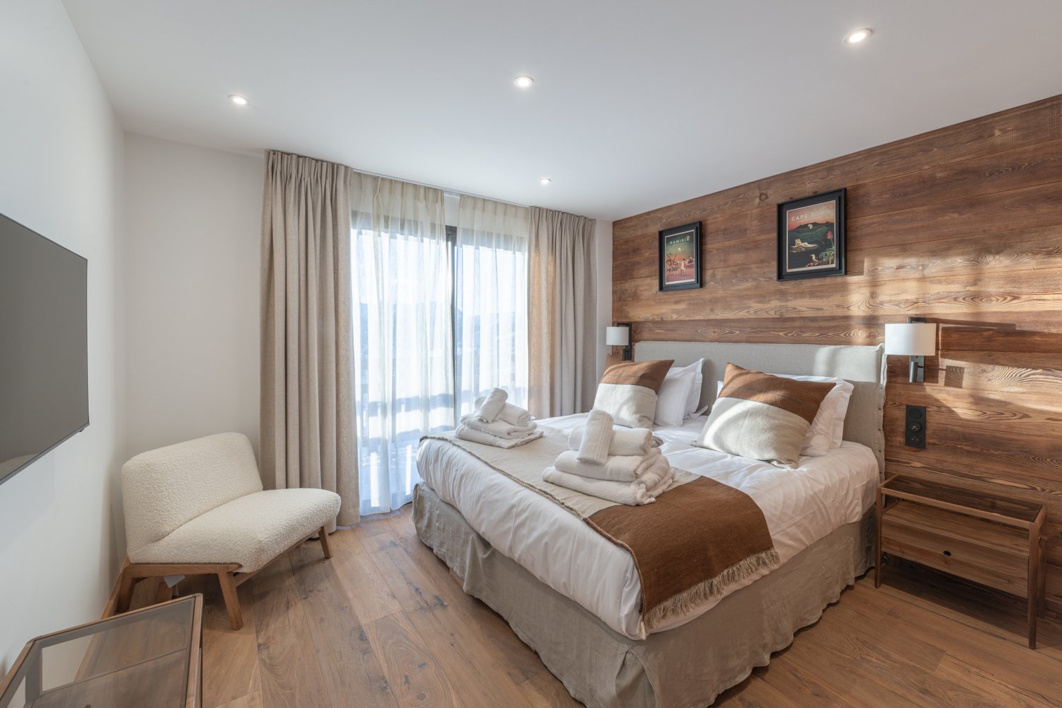 Le chalet dispose de cinq chambres en suite dont une Master Room disposant d’un balcon privé exposé plein sud ainsi que d’une chambre enfant proposant un espace confortable et convivial.