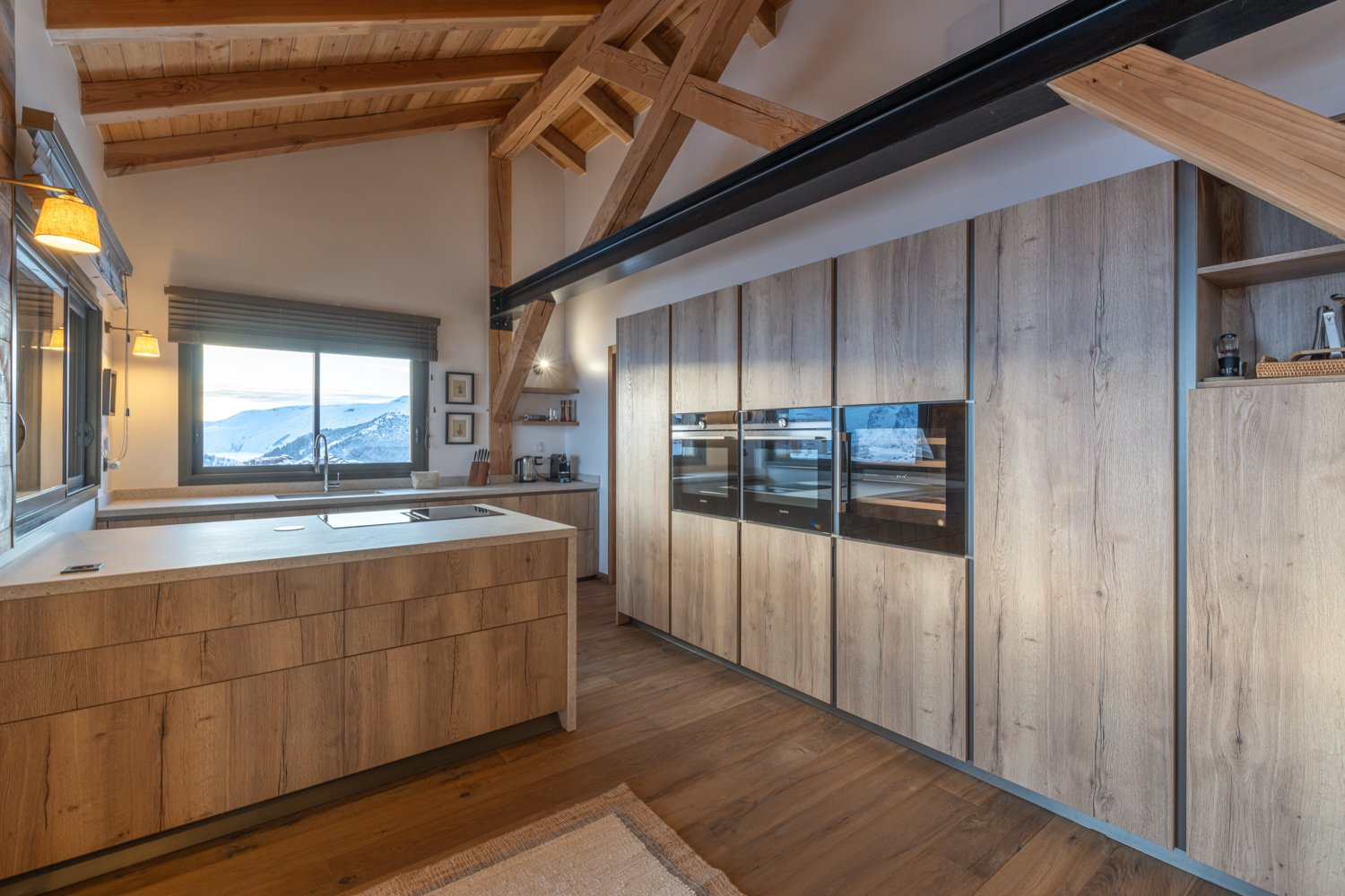 Ce bien de 310m² comprend une pièce à vivre bénéficiant d’une luminosité spectaculaire, grâce à ses hauteurs sous plafond. Vous admirez une vue panoramique sur les sommets alpins depuis la terrasse exposée sud, équipée d’un jacuzzi. Le vaste salon chaleureux, agrémenté d’une cheminée à bois, est idéal pour créer de merveilleux souvenirs entre amis ou en famille. Une salle à manger spacieuse, ouverte sur une cuisine moderne et équipée, avec une cave à vin intégrée, complète l’espace.