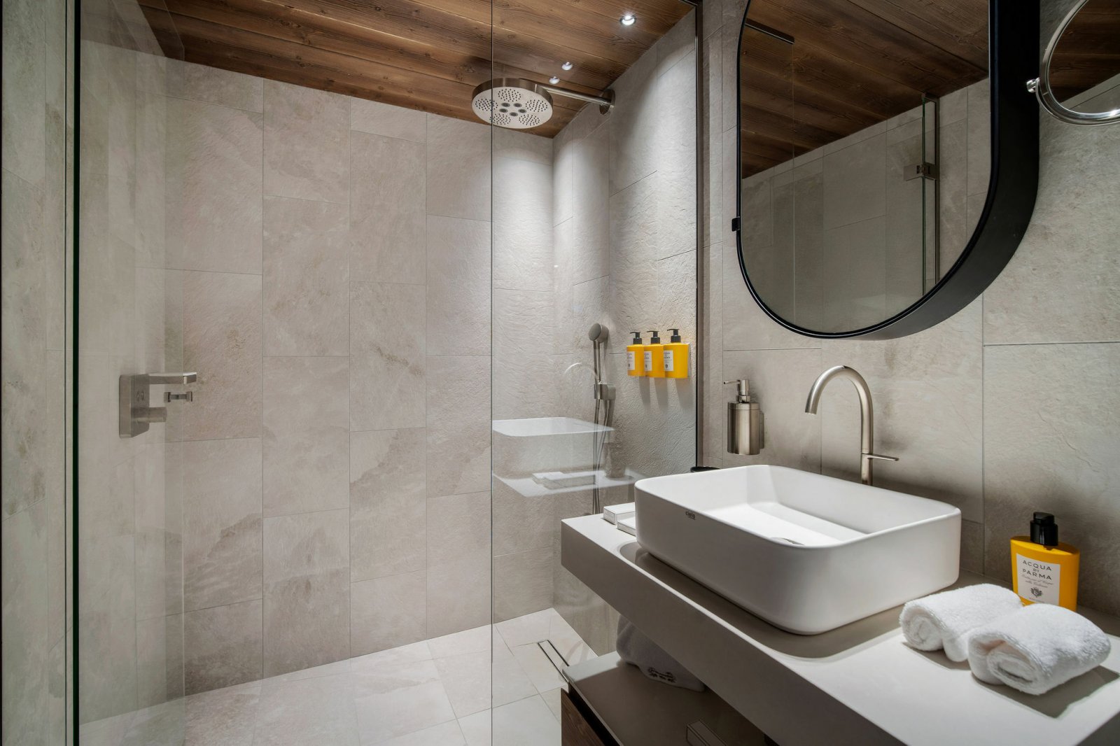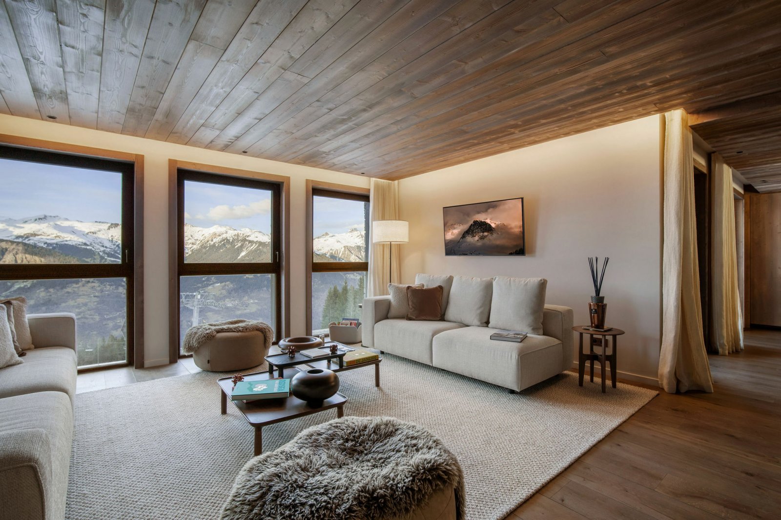 Dans son écrin de bois et de verre, la résidence offre des volumes généreux à l'élégance intemporelle, inspirés par le nouveau design alpin. Il en émane une atmosphère chic et chaleureuse, en totale osmose avec la destination exclusive qu'est Courchevel.