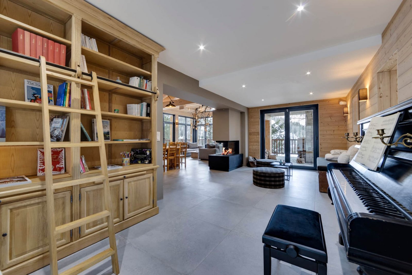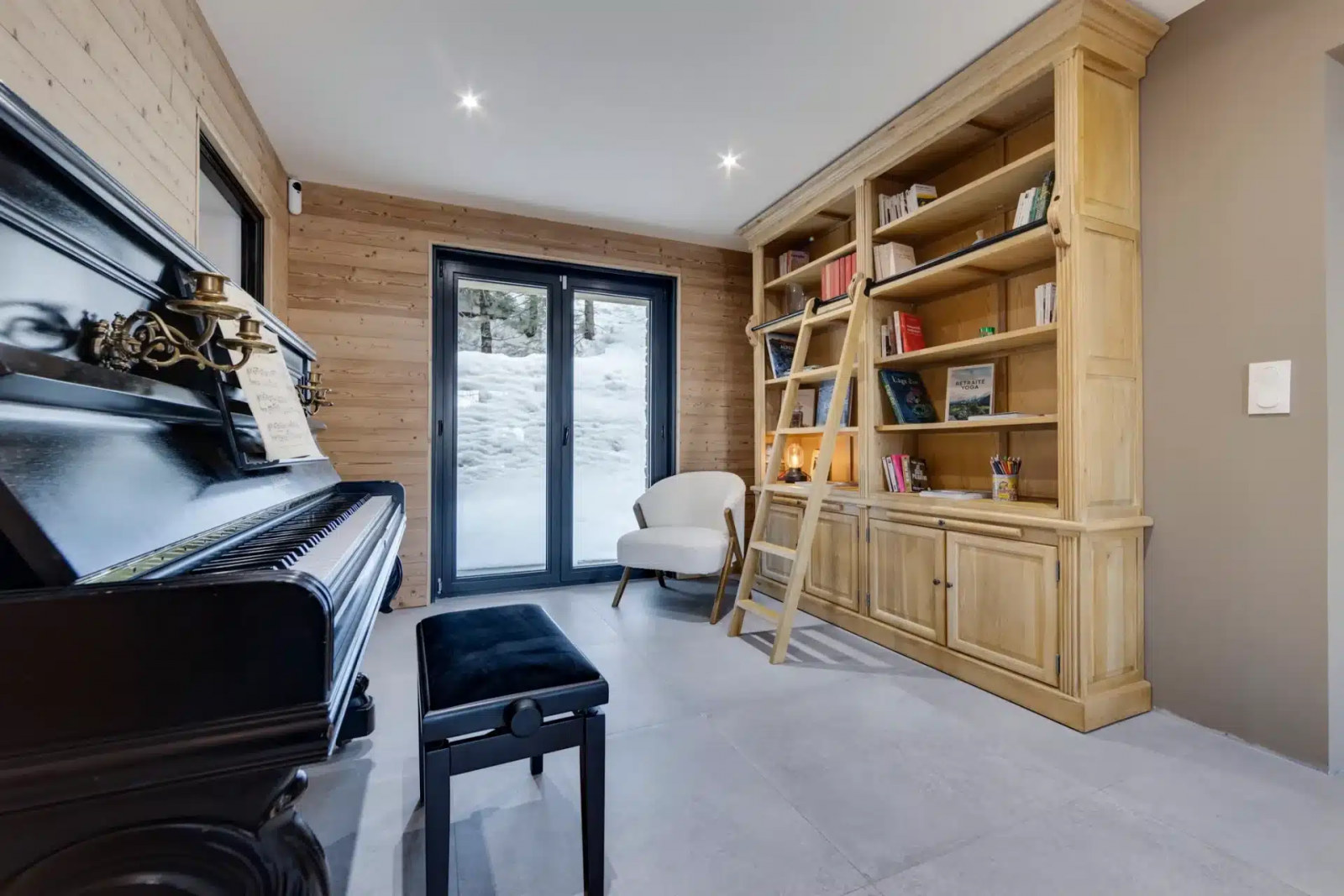 Le grand salon est prolongé par un petit salon adjacent qui vous offre un autre espace de détente et de partage convivial et une bibliothèque cosy. Un piano accordé est très apprécié des musiciens.