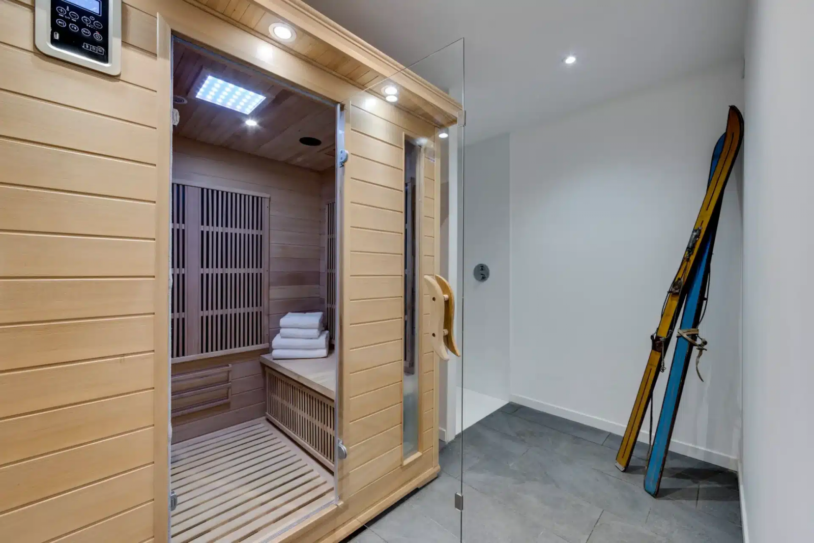 Le chalet du Bois Melay dispose d’un espace détente d’exception, unique à la Plagne. Vous apprécierez notamment la superbe piscine intérieure chauffée de 6 mètres par 3 avec vue sur les sapins enneigés. La salle de sport vous permettra de faire du fitness en appréciant la vue sur la montagne. Un sauna et une salle détente termineront de vous détendre.