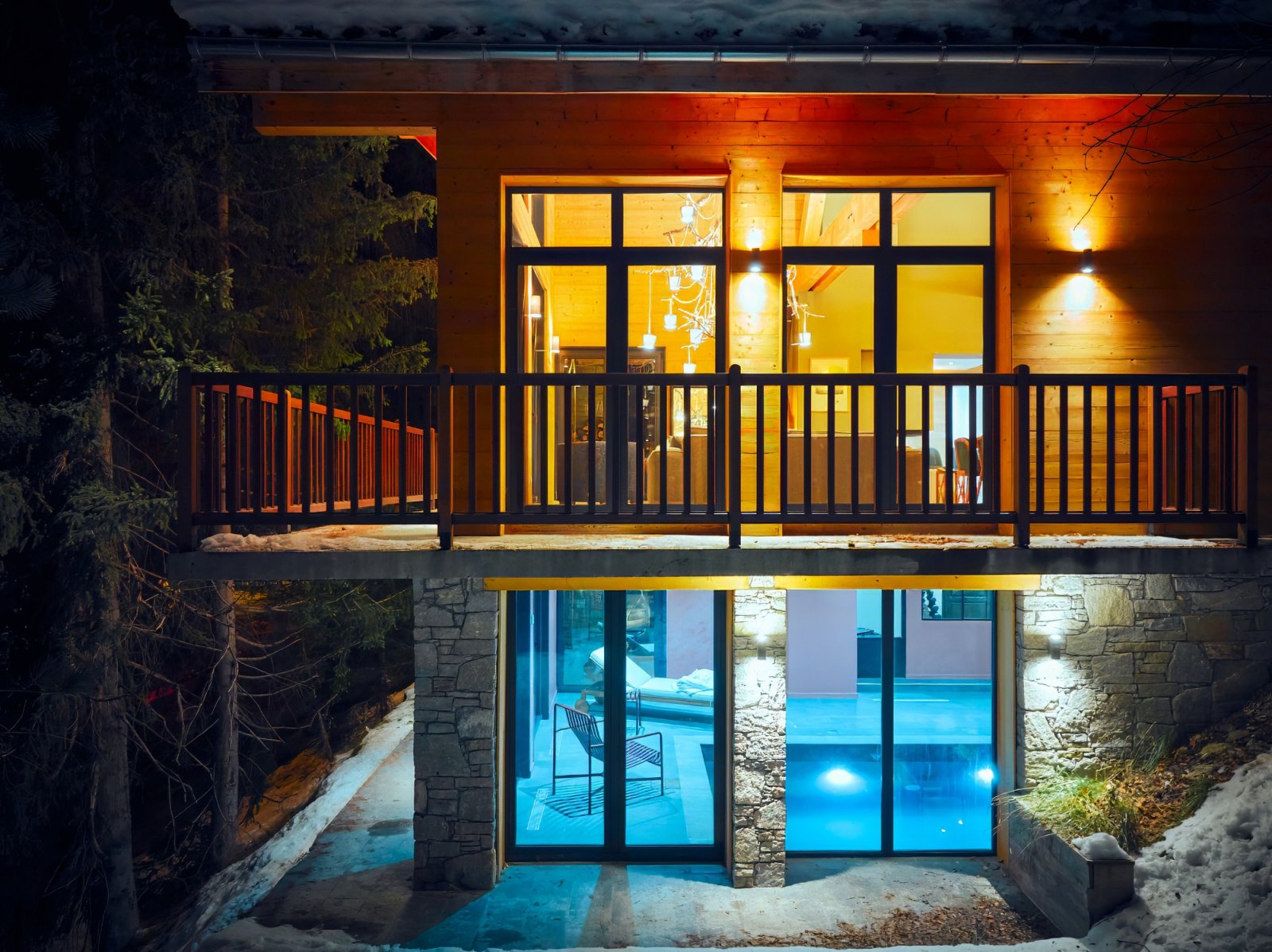 Situé à proximité des pistes à La Plagne, louez ce luxueux chalet aux volumes spacieux et avec des équipements de détente uniques : chalet avec piscine, sauna, salle de sport, salle cinéma, salle détente.