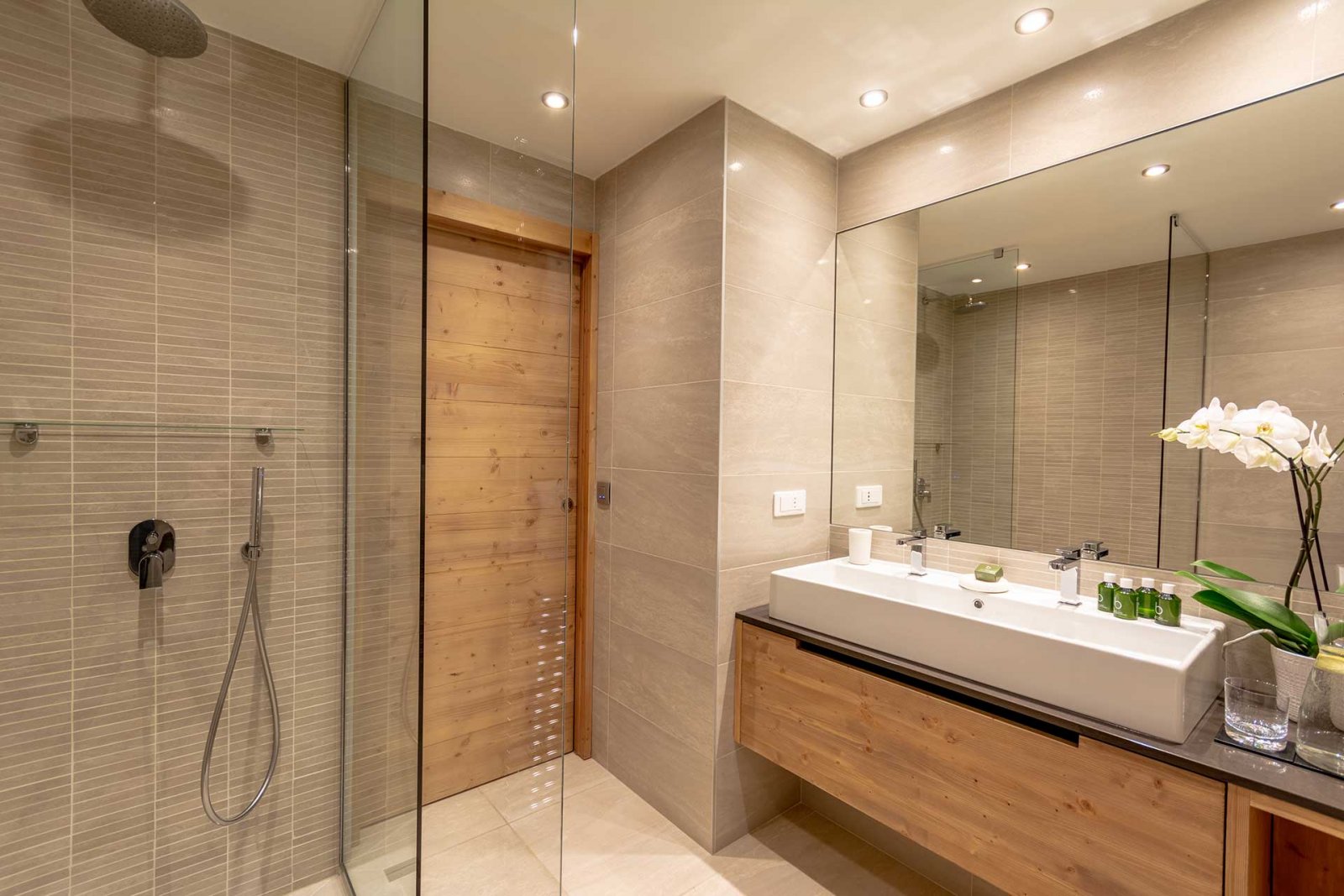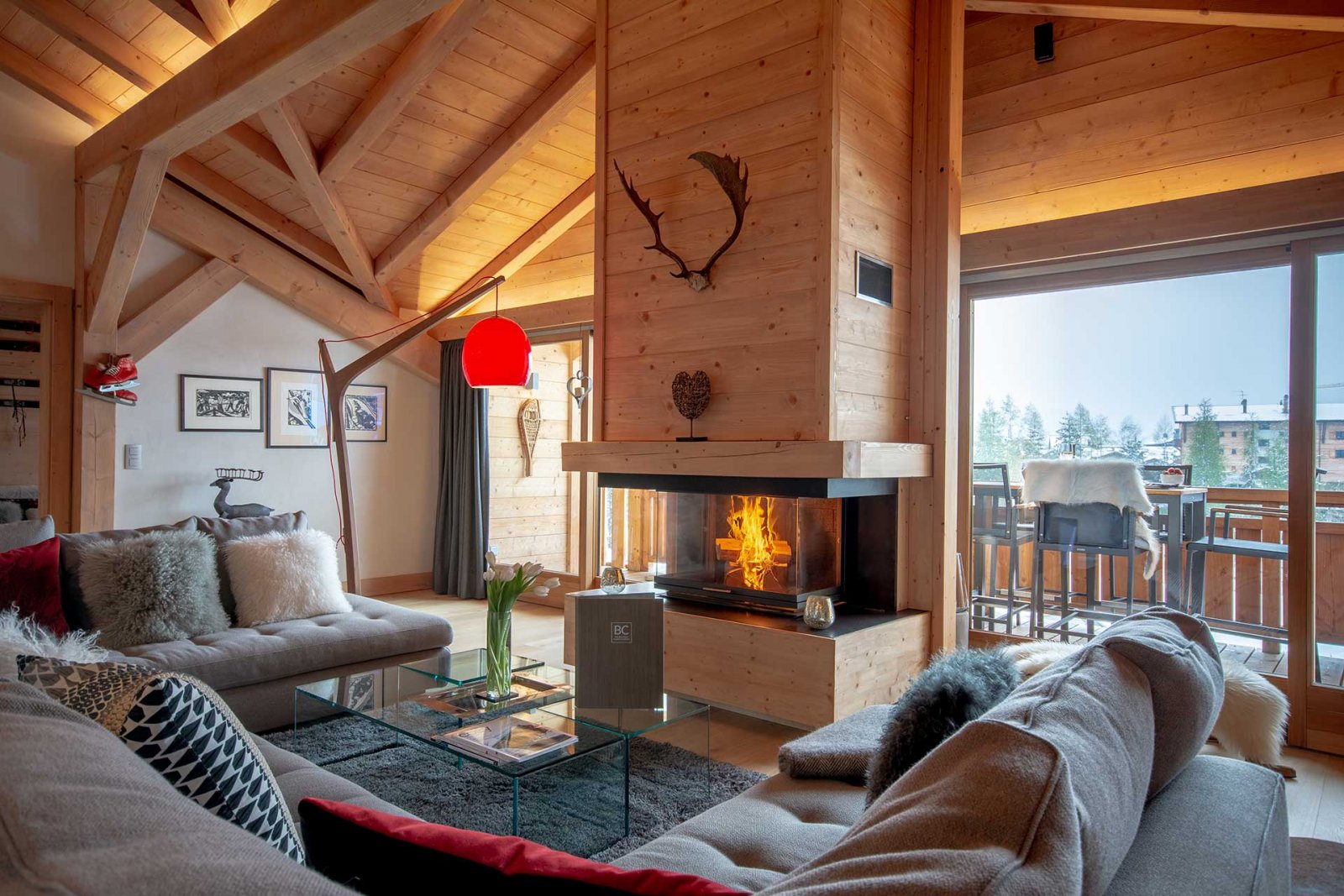 Il y a 5 chambres magnifiquement meublées, toutes avec salle de bains privative et 4 avec balcon. Le Penthouse dispose de sa propre suite privée de bien-être, avec sauna et salle de soins avec canapé de massage chauffé. Le style contemporain de luxe montagnard se poursuit au niveau du salon, où des canapés luxueux entourent une cheminée et où les balcons profitent de la vue sur les montagnes.