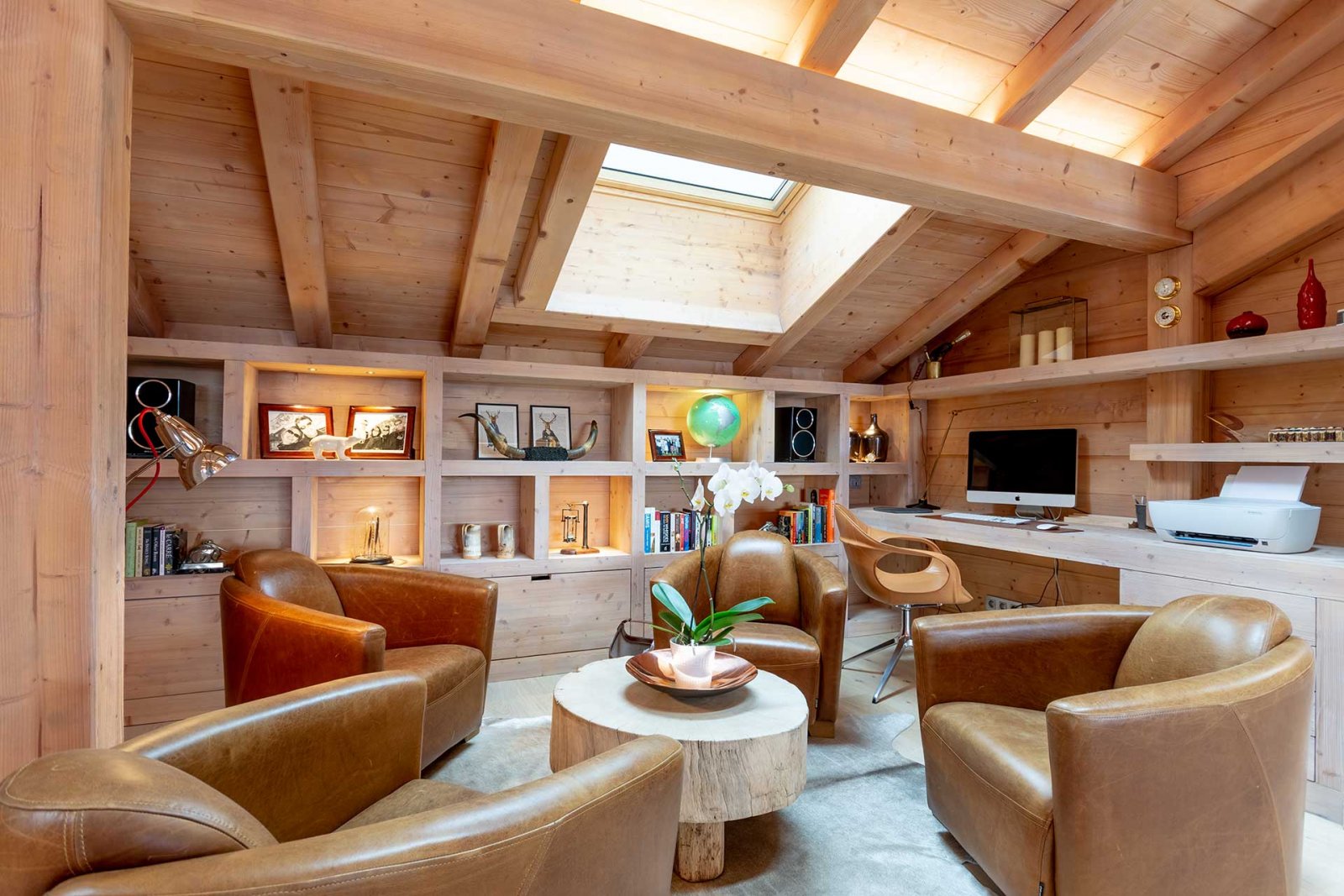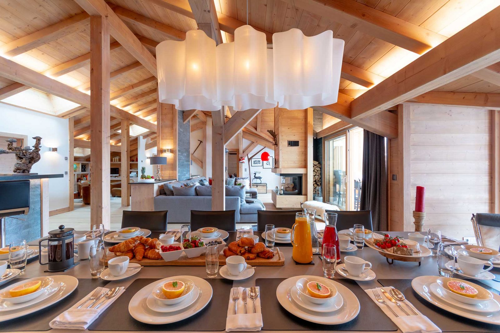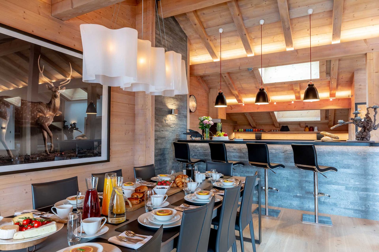 Une très grande cuisine design est entièrement équipée pour la restauration et n'est séparée de la belle table à manger sur mesure que par le bar du petit-déjeuner, ce qui vous permet de cuisiner tout en participant à la conversation après le ski. Si vous avez besoin de vous replonger dans le monde réel pendant votre séjour, le bureau privé avec Apple Mac et des chaises en cuir est l'endroit idéal pour le faire - votre propre bureau de ski de luxe. Ensuite, après le dîner, retirez-vous devant la télévision et installez-vous confortablement avec un chocolat chaud et un film.