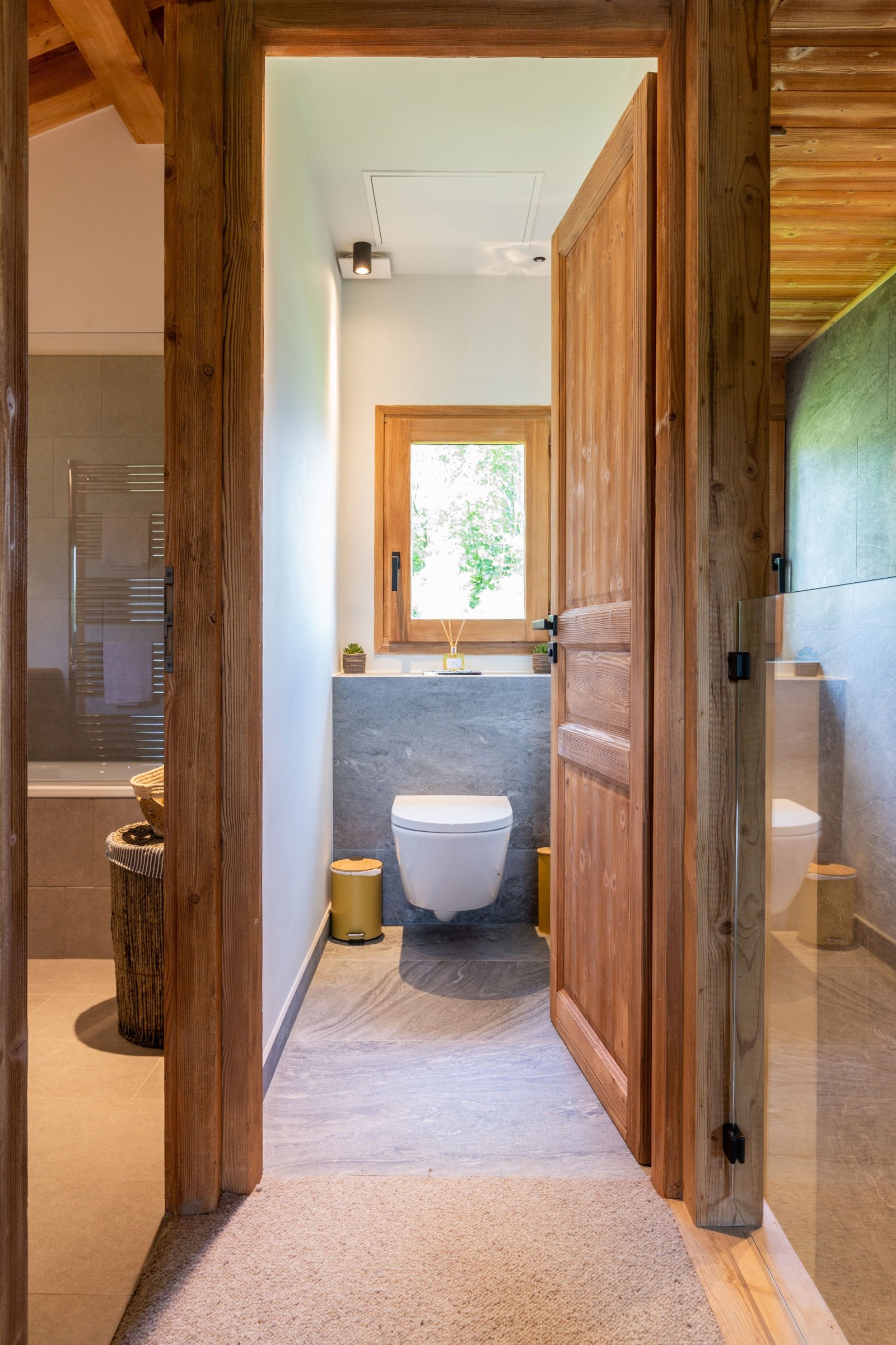 Vous profiterez également d’une salle de bain spacieuse avec baignoire ainsi que des toilettes indépendants.