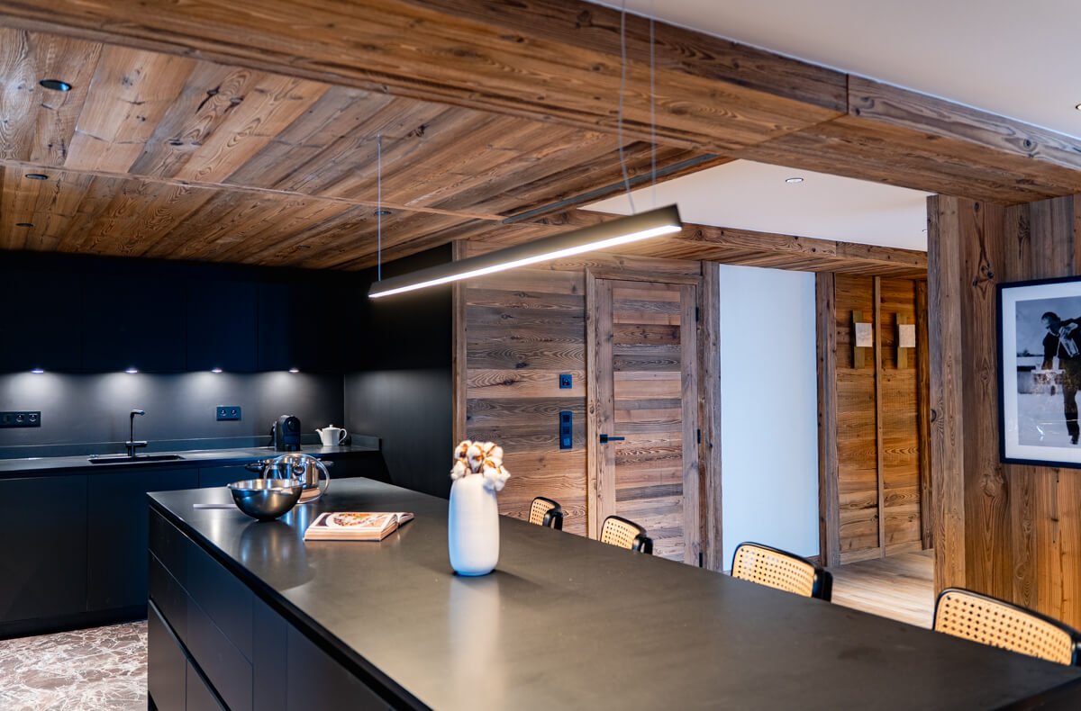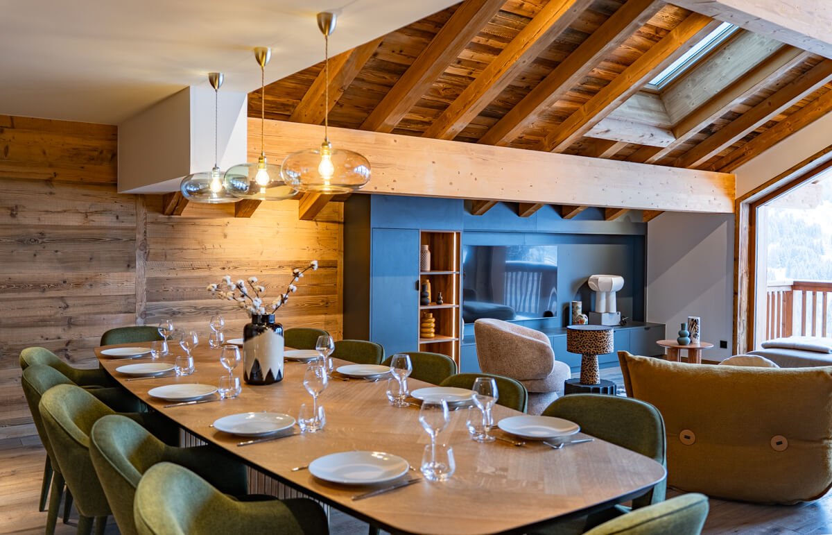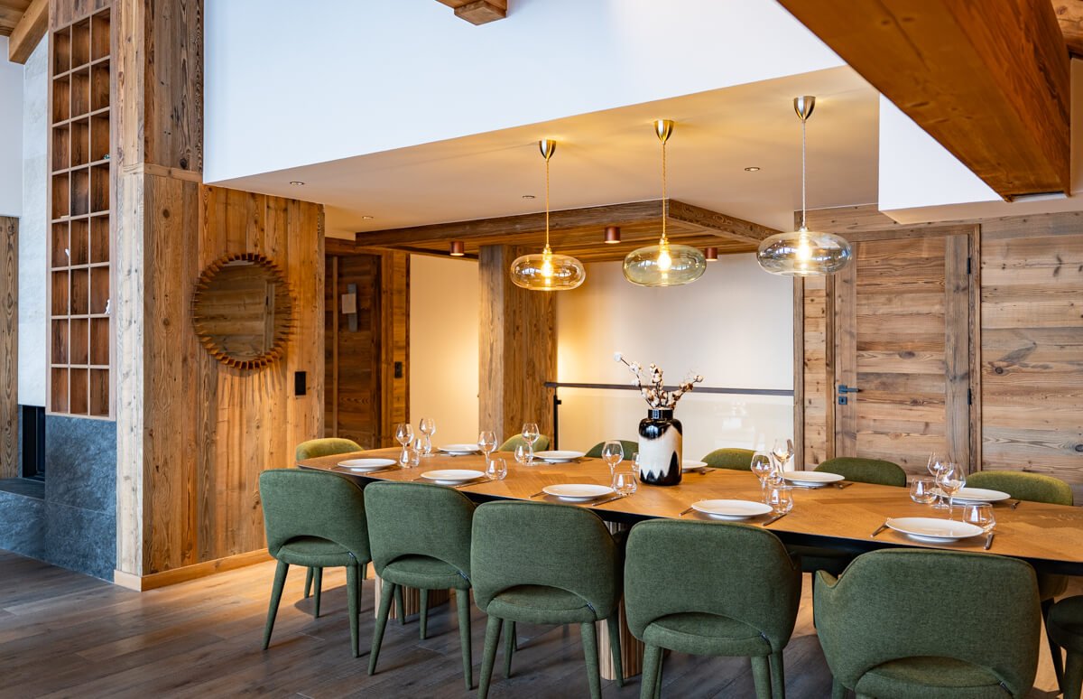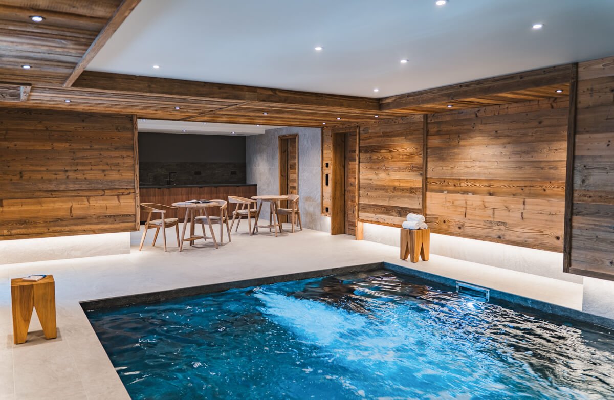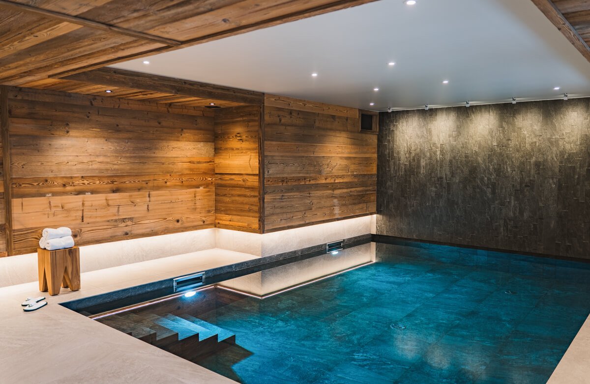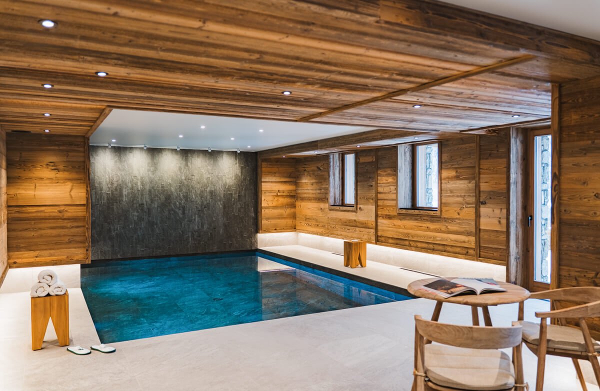 À l’intérieur, vous trouverez un espace bien-être privatif avec une grande piscine intérieure chauffée, un sauna et un espace détente aménagé avec des transats. C’est l’endroit idéal pour se retrouver en famille ou entre amis après une belle journée passée à explorer Méribel.