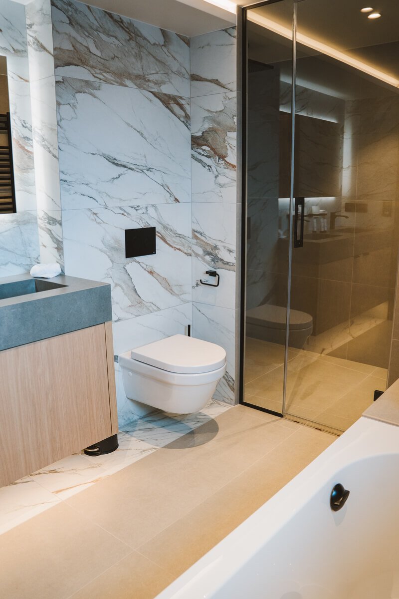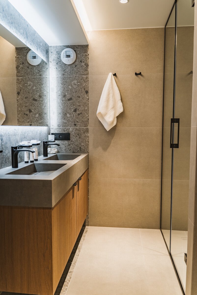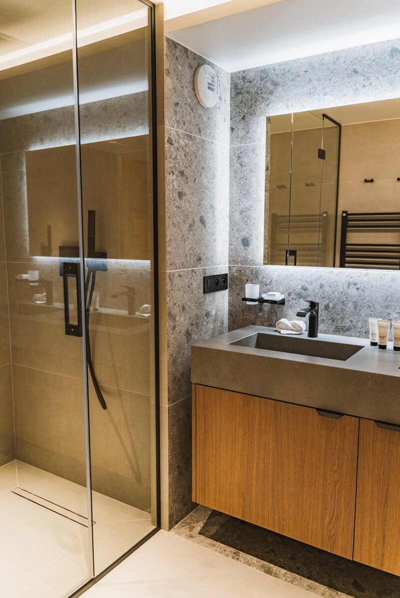 Le chalet J, situé sur cinq niveaux au sein du complexe Falcon, offre une superficie généreuse de 479 m² et peut accueillir jusqu'à 15 personnes (14 adultes maximum).