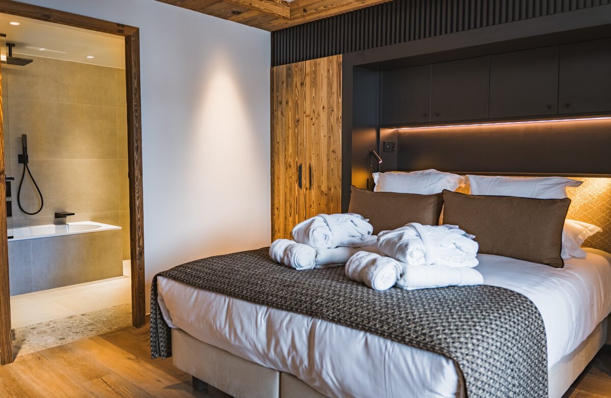 Le premier niveau comprend un espace bien-être privé avec piscine, sauna, douche, bar et terrasse équipée d'un jacuzzi. Au deuxième étage, vous trouverez quatre chambres doubles avec salles de bains privatives, ainsi qu'un dortoir avec une chambre double et un lit superposé. Au troisième niveau, un magnifique séjour dispose d'un coin salon avec télévision, d'une cheminée, d'une cave à vin et d'une cuisine ouverte entièrement équipée. Le quatrième niveau comprend une chambre double, deux salles de bains, une buanderie avec lave-linge et sèche-linge, ainsi qu'un coin salon avec télévision. Enfin, au dernier étage, se trouve une chambre double. Au total, le chalet compte sept chambres doubles, six salles de bains et un ascenseur privé. Ce chalet est entièrement équipé en électroménager : lave-vaisselle, machine Nespresso, ustensiles de cuisine, etc.
