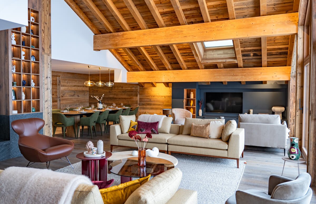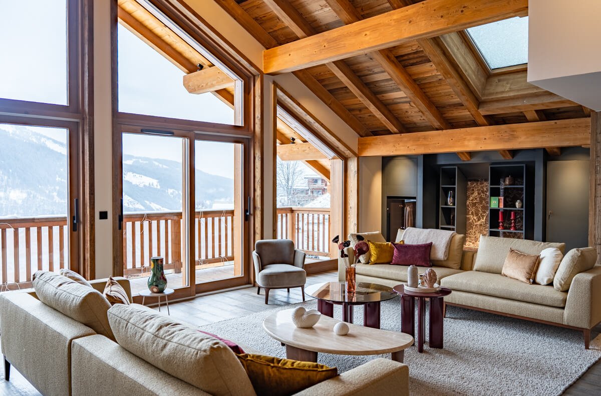 En vacances, quoi de mieux que de se détendre sur une magnifique terrasse en admirant la vue imprenable sur les montagnes ? Construit comme un hameau accroché à flanc de montagne, le domaine Falcon et ce chalet offrent un panorama exceptionnel sur la vallée de Méribel et les sommets environnants.