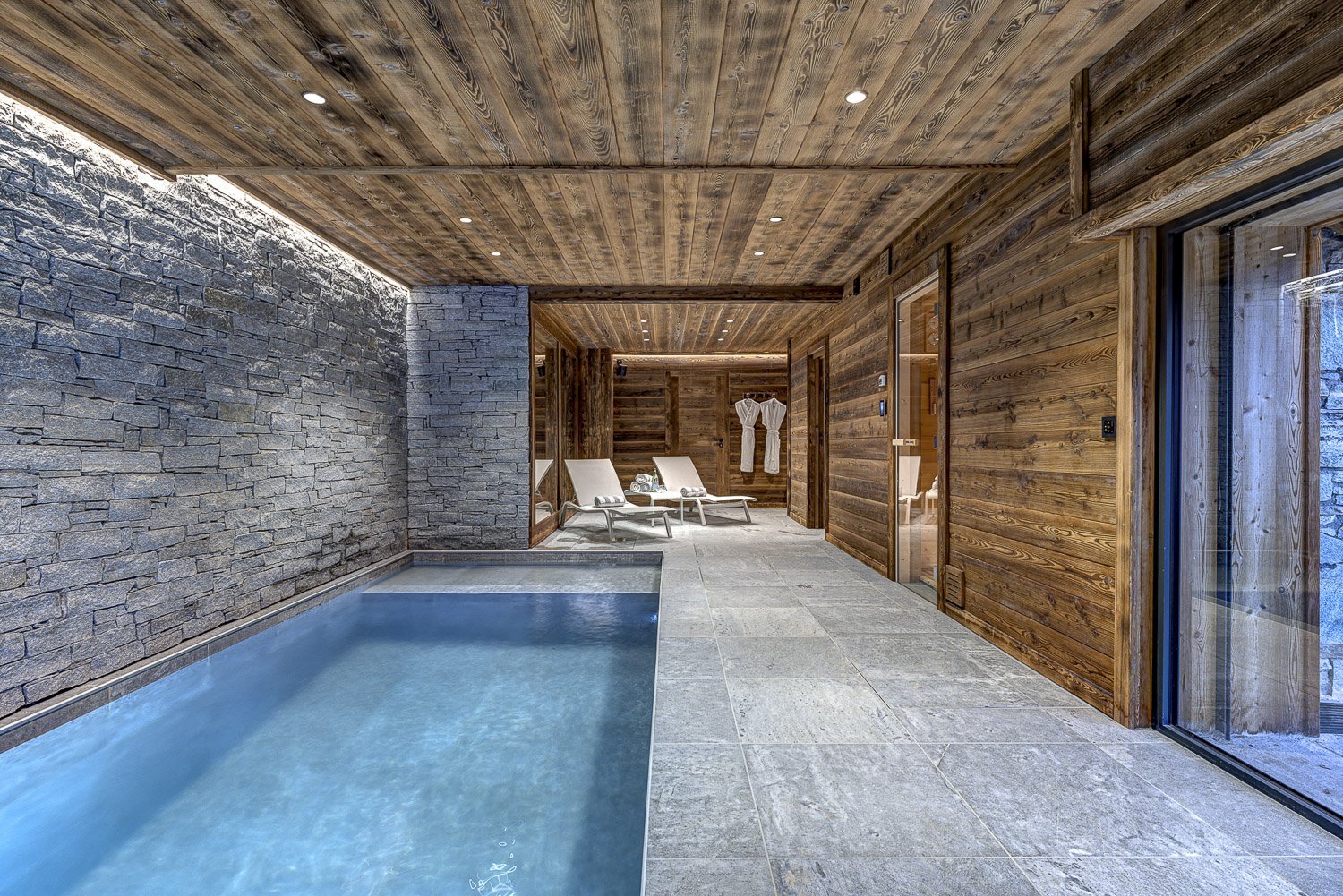 Les clients peuvent se détendre dans la piscine intérieure avec jets à contre-courant, se relaxer dans le jacuzzi extérieur ou se ressourcer dans le sauna privé. Les soirées peuvent être passées dans le salon confortable avec une cheminée à bois ou à regarder un film dans la salle de cinéma dédiée. Un ascenseur permet d'accéder facilement à tous les niveaux du chalet. Le Chalet Myriam peut accueillir 15 personnes dans six chambres magnifiquement aménagées.
