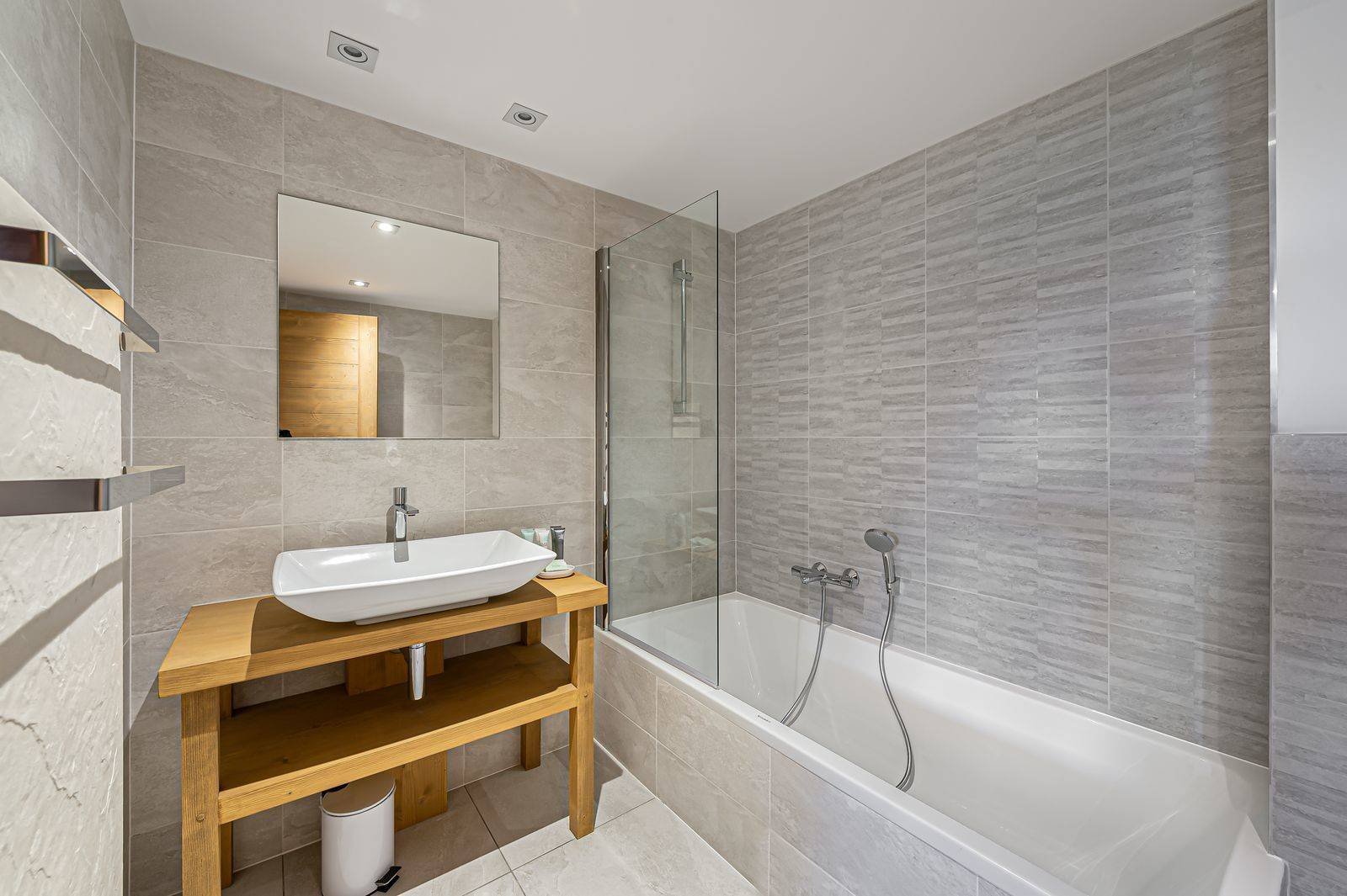 Enfin le chalet est équipé d’un ski-room avec chauffe-chaussures ainsi qu’une place de parking intérieure et 2 places extérieures.