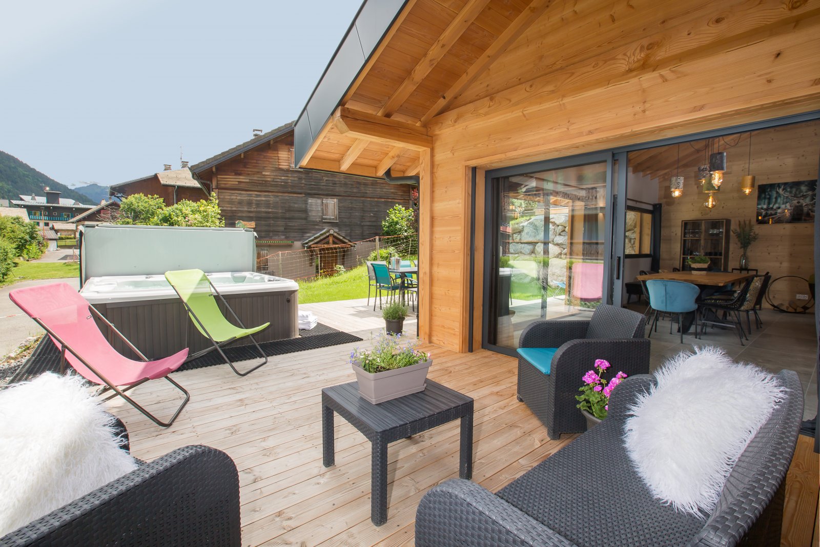 Chalet Stade is a superb purpose-built modern self-catered chalet for groups of 8-10 in a quiet location yet on the doorstep of the very centre of Morzine.