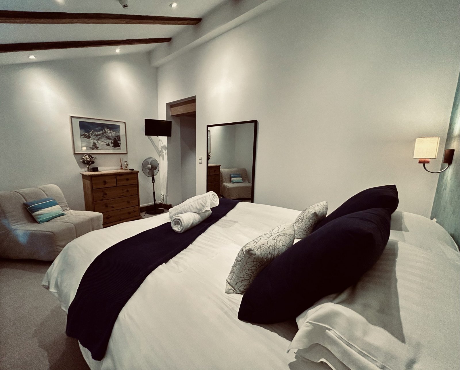 Nous accueillons toute l'année jusqu'à 18 personnes dans cinq chambres spacieuses et une suite familiale. Chaque chambre dispose d'une salle de bain attenante de style spa et est aménagée et meublée individuellement.