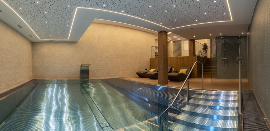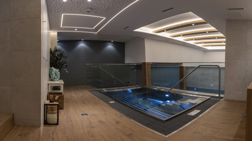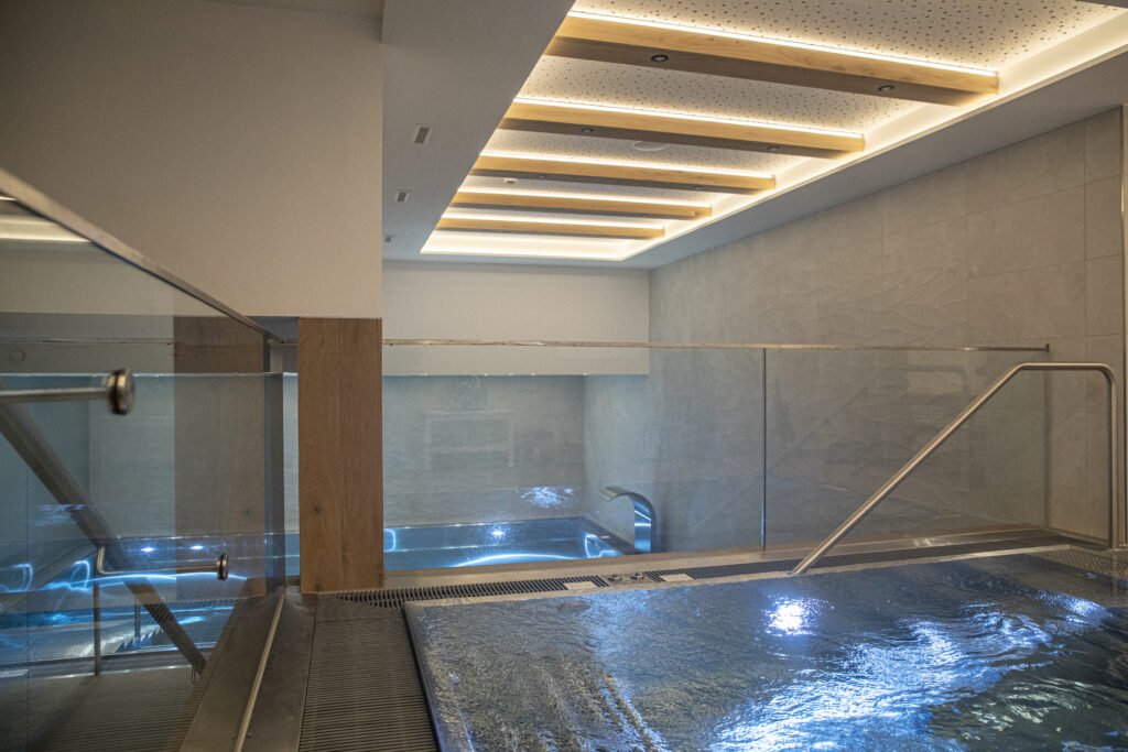 The newly constructed spa allows for the ultimate in relaxation after a great day on the slopes or as a day spa for those bad weather days or for our non skiers. With heated pool and resistance jets and a bubble bench, a jacuzzi, a choice of saunas and a steam room you will be able to make the most of your ‘chill time’. With a relaxing area and juice bar as well as a massage and treatment room, we have you covered for the ultimate in relaxation.