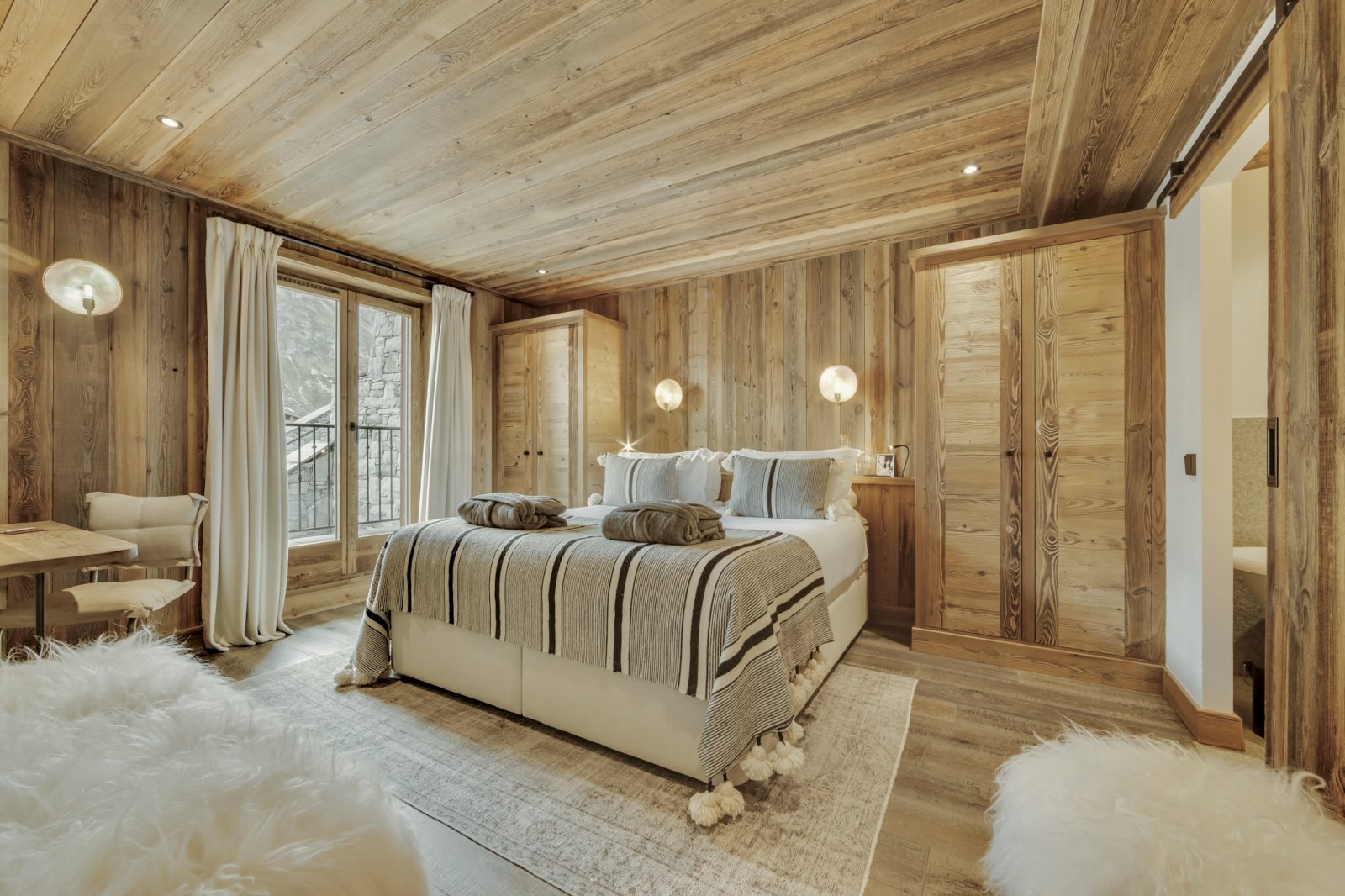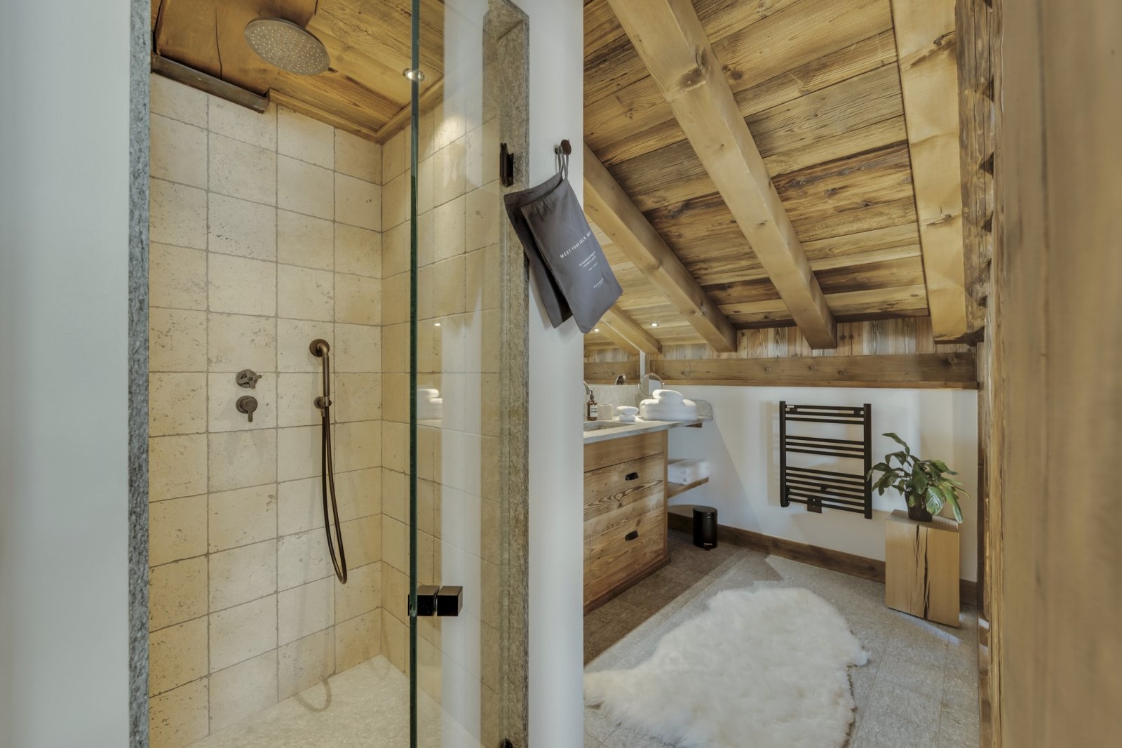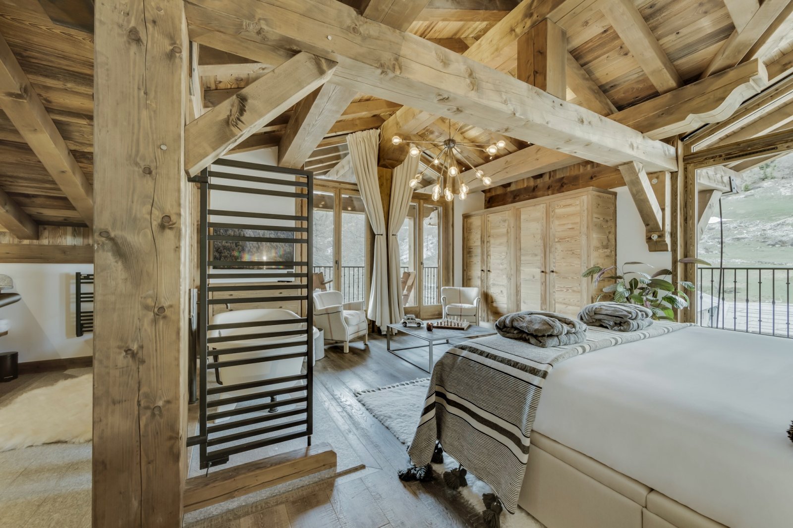 Le célèbre architecte John-Charles Covarel a construit la résidence Cala en 2019 dans le quartier Le Legettaz de Val d'Isère, renforçant ainsi le chic du village. Avec une superficie de plus de 200 m², Cala Slopeside offre une atmosphère aérée et calme avec une vue impressionnante. Les sols et les murs en bois naturel s'harmonisent parfaitement avec les plafonds blancs pour apporter une tranquillité tant pendant la journée que pendant la nuit. Les salles de bains en granit gris avec des équipements et des accessoires noirs apportent élégance et légèreté à chacune des chambres. Depuis la piste, vous descendez quelques marches extérieures en granit pour accéder à l'entrée. Le salon et la salle à manger sont très spacieux et s'intègrent parfaitement à un coin lecture et à un salon. À cet étage, vous trouverez trois grandes chambres avec salle de bains privative, un petit sauna et un jacuzzi extérieur. À l'étage supérieur, vous trouverez une suite parentale spectaculaire avec des plafonds à double hauteur et une baignoire sur pieds ouverte, à côté de laquelle se trouvent une chambre et une salle de bains plus petites. Les finitions haut de gamme sont évidentes dans tout Cala Slopeside et cet appartement de luxe est le rêve de tous les amateurs de décoration intérieure.