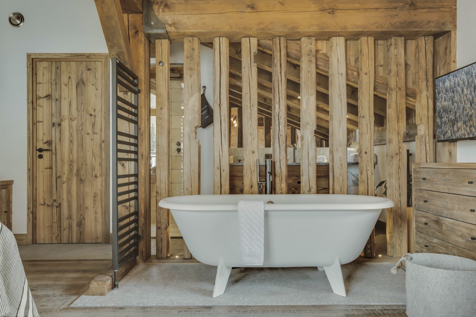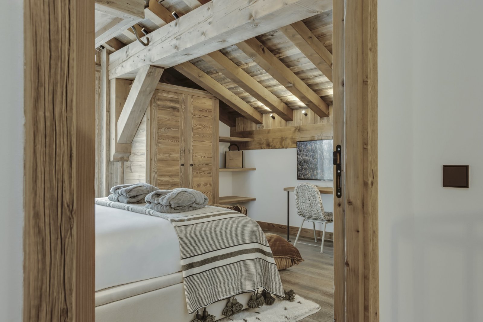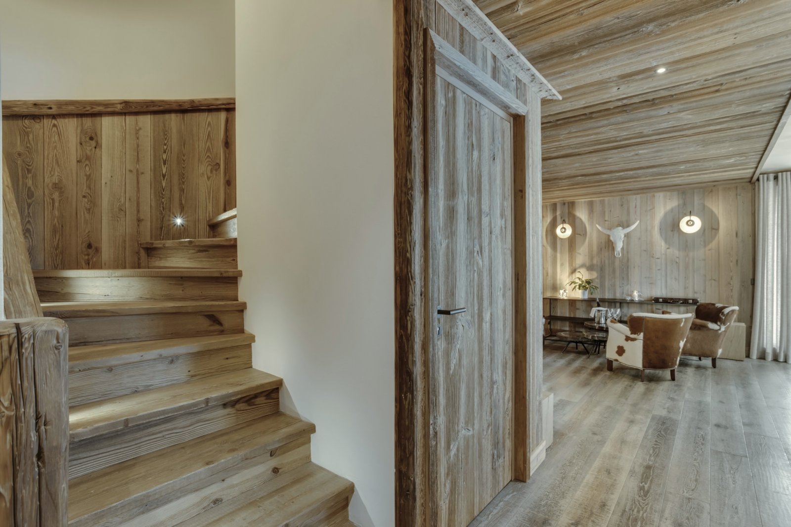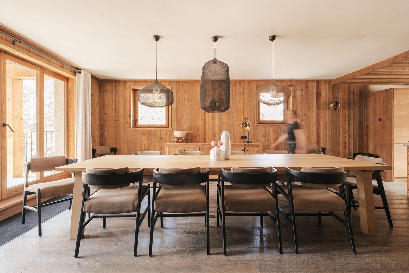 Le célèbre architecte John-Charles Covarel a construit la résidence Cala en 2019 dans le quartier Le Legettaz de Val d'Isère, renforçant ainsi le chic du village. Avec une superficie de plus de 200 m², Cala Slopeside offre une atmosphère aérée et calme avec une vue impressionnante. Les sols et les murs en bois naturel s'harmonisent parfaitement avec les plafonds blancs pour apporter une tranquillité tant pendant la journée que pendant la nuit. Les salles de bains en granit gris avec des équipements et des accessoires noirs apportent élégance et légèreté à chacune des chambres. Depuis la piste, vous descendez quelques marches extérieures en granit pour accéder à l'entrée. Le salon et la salle à manger sont très spacieux et s'intègrent parfaitement à un coin lecture et à un salon. À cet étage, vous trouverez trois grandes chambres avec salle de bains privative, un petit sauna et un jacuzzi extérieur. À l'étage supérieur, vous trouverez une suite parentale spectaculaire avec des plafonds à double hauteur et une baignoire sur pieds ouverte, à côté de laquelle se trouvent une chambre et une salle de bains plus petites. Les finitions haut de gamme sont évidentes dans tout Cala Slopeside et cet appartement de luxe est le rêve de tous les amateurs de décoration intérieure.