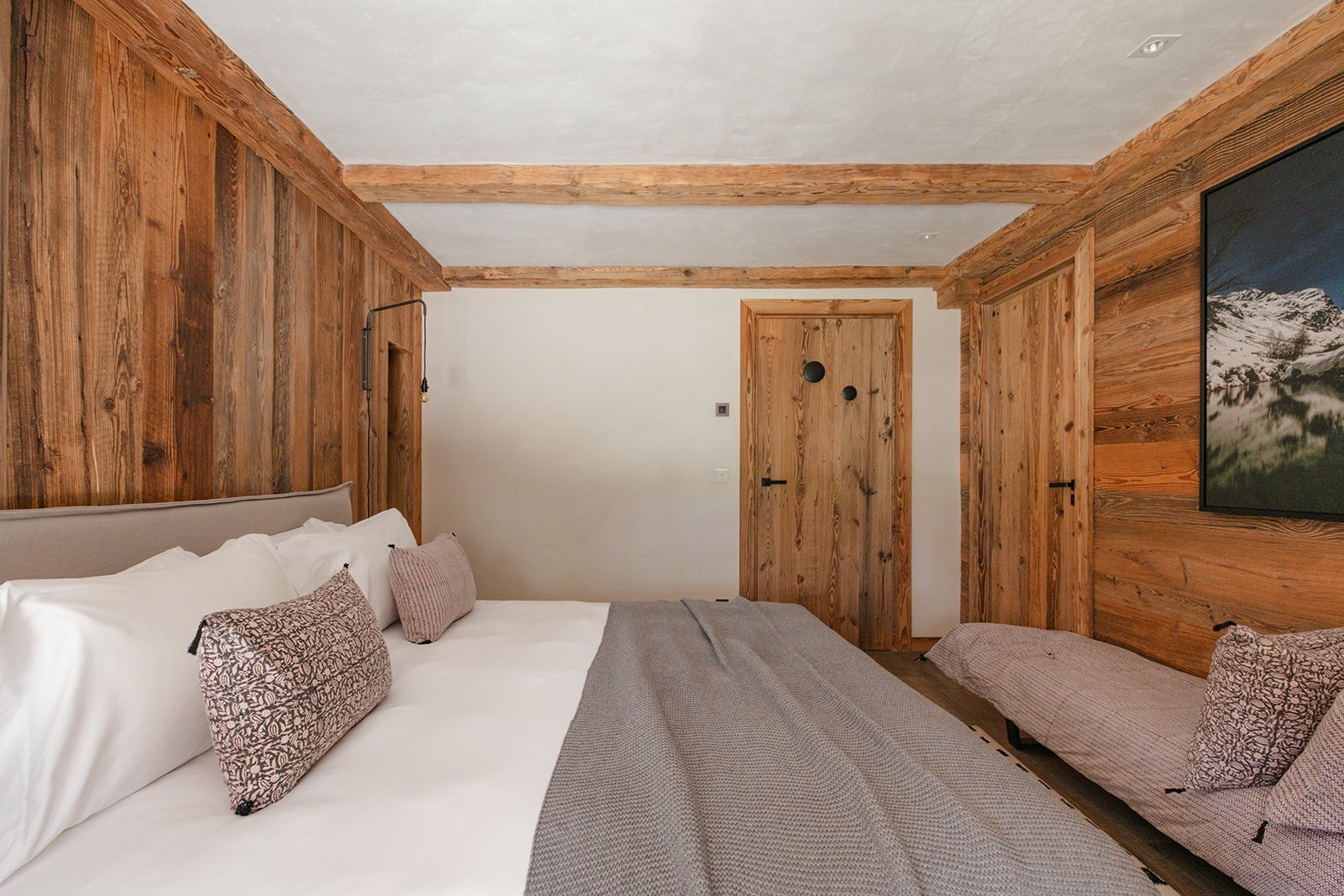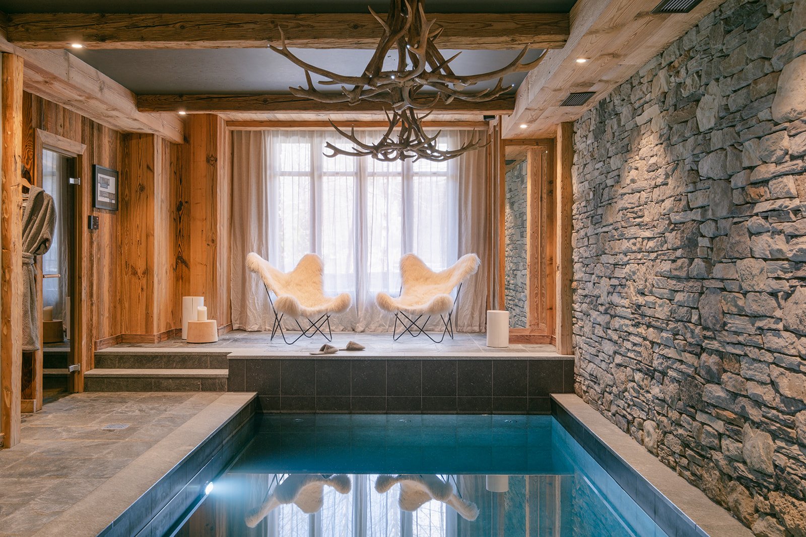 Le Chalet Calistoga a été magnifiquement rénové et offre des prestations haut de gamme et innovantes, se distinguant ainsi par son confort contemporain en montagne. De vastes baies vitrées baignent un salon lumineux et aéré, doté d'une salle à manger en double hauteur et offrant une vue imprenable sur l'Isère. L'extérieur du chalet, construit en pierre et en bois locaux, reflète la sérénité de ce quartier du village. L'intérieur est un parfait exemple d'élégance discrète, avec une longue table en chêne massif taillée dans une seule pièce qui constitue le point focal du salon. Deux coins salons séparés, l'un équipé d'une télévision et l'autre d'une salle de musique, permettent de se détendre en toute tranquillité. Au-dessus du salon se trouvent un espace de travail avec un iMac et un coin lecture. Au premier étage, l'espace nuit principal comprend quatre superbes chambres avec salle de bains privative, chacune pouvant être aménagée avec un lit king-size ou deux lits jumeaux. L'une de ces chambres dispose d'une baignoire et deux autres s'ouvrent sur une terrasse donnant sur le jardin privé. Le rez-de-chaussée du chalet offre 150 m² supplémentaires, comprenant une chambre avec salle de bains privative offrant une vue imprenable sur la vallée et les gorges, un sauna, une salle de massage, ainsi qu'une magnifique piscine et un espace détente. Le garage principal se trouve également à ce niveau, où vous trouverez le local à skis et les indispensables chauffe-chaussures.