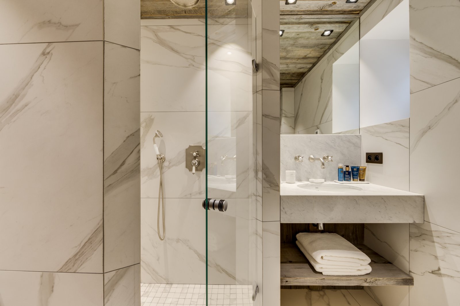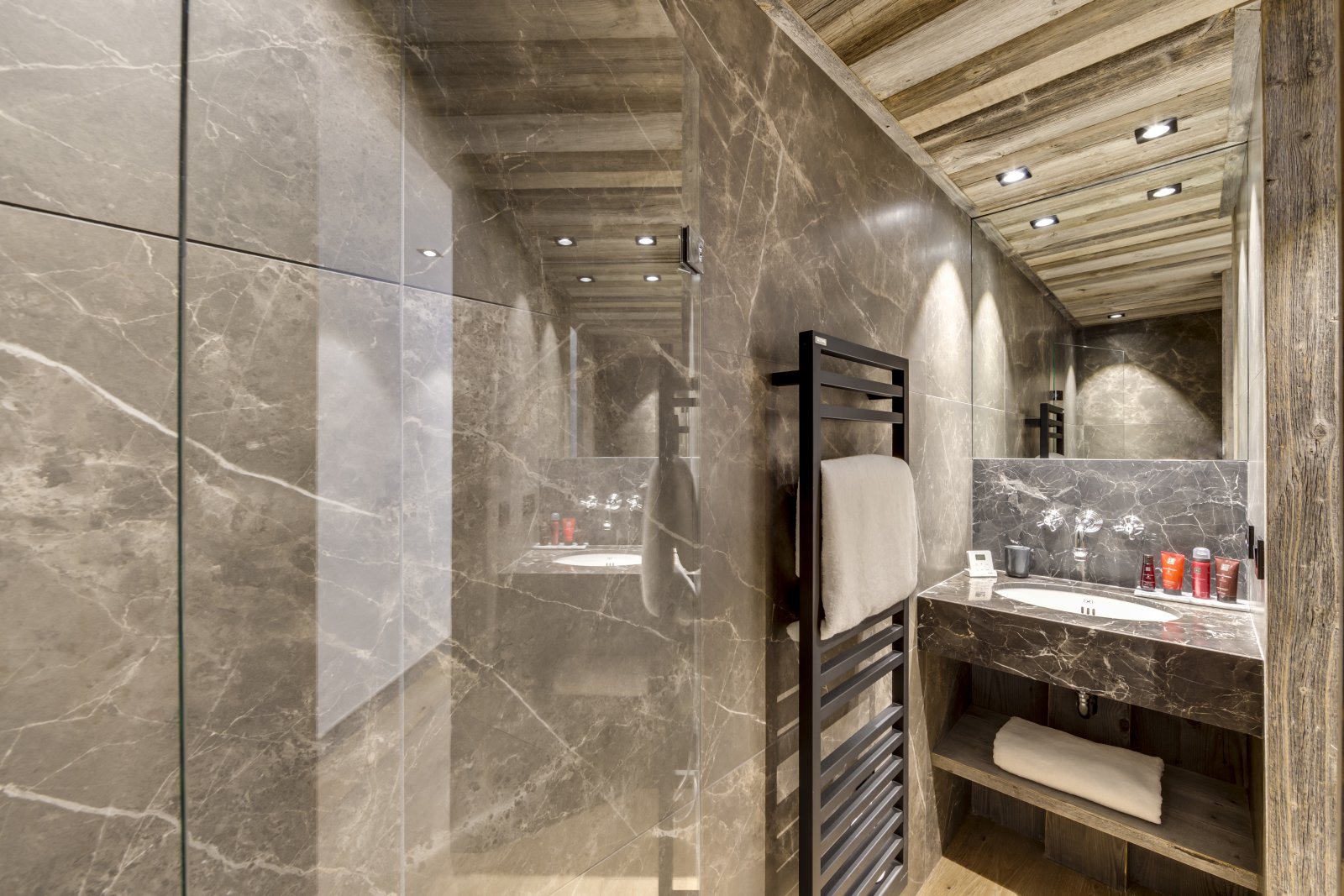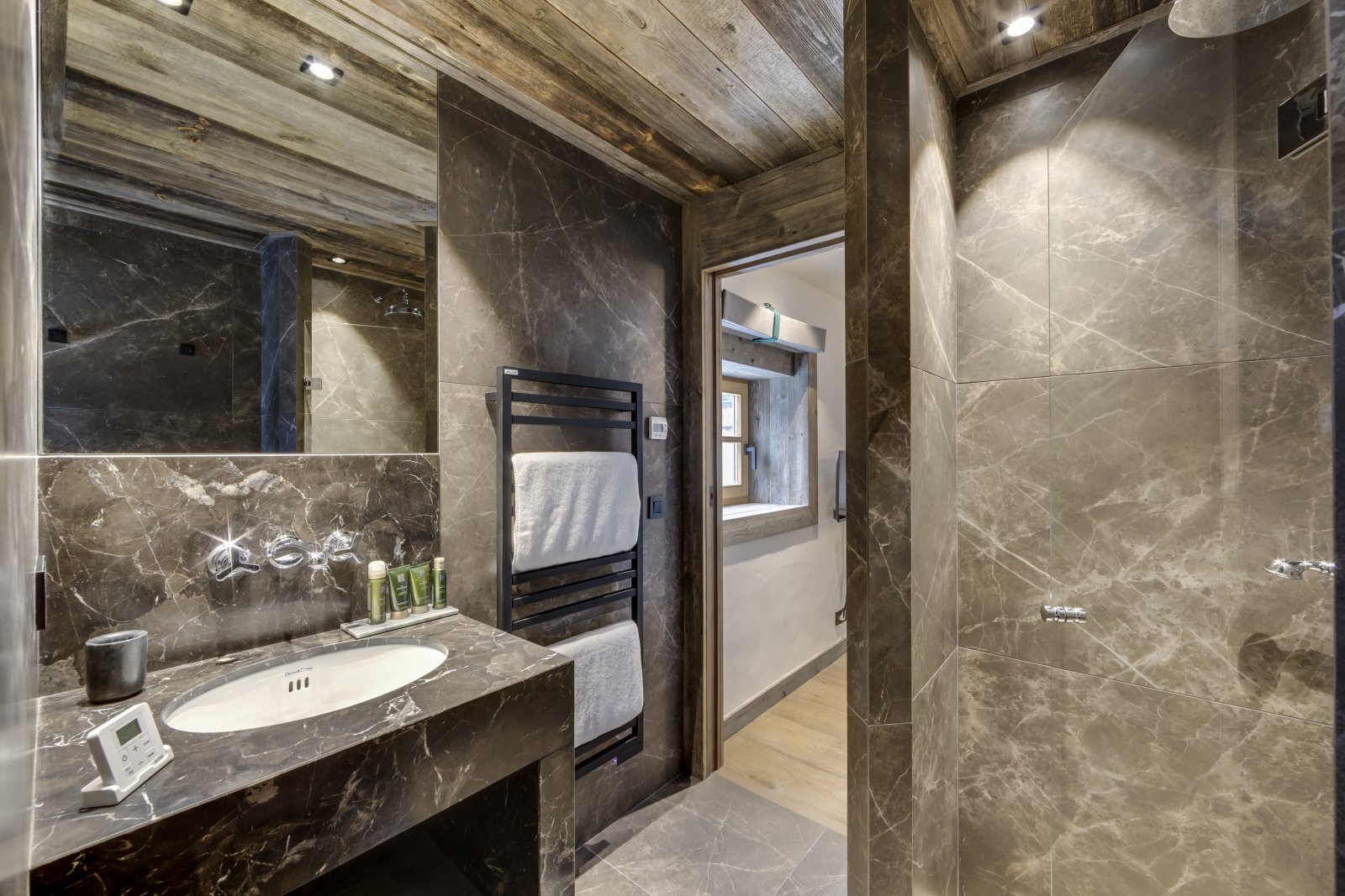 Le Chalet Loup est l'un des plus anciens bâtiments de Val d'Isère. Il a été magnifiquement restauré en 2021 selon des normes exceptionnelles, en conservant ses caractéristiques d'origine uniques, telles que la terrasse couverte en bois. Ce chalet de ski de luxe possède des murs épais et profonds qui procurent un réel sentiment de protection et de confort à l'intérieur. L'entrée du chalet se trouve au rez-de-chaussée, où vous trouverez les deux premières chambres, dont l'une est une chambre avec des lits superposés, parfaite pour les enfants, bien que les lits soient de taille adulte. En montant l'escalier central en colimaçon, vous accédez à trois chambres avec salle de bains privative parfaitement agencées. Les magnifiques intérieurs en bois gris et les tissus Les Cinq Frères apportent une touche contemporaine et équilibrée à ce bâtiment historique en pierre du village. Chaque chambre dispose de sa propre salle de bains avec baignoire ou douche, en marbre clair ou foncé. En montant au dernier étage, vous passez devant la terrasse en bois orientée à l'ouest qui mène à un jacuzzi extérieur. La terrasse est l'endroit idéal pour profiter du soleil printanier en fin de journée, un apéritif à la main. Le salon et la salle à manger occupent tout le dernier étage du bâtiment et forment un bel espace ouvert. Les cuisiniers en herbe apprécieront la cuisine conviviale, ouverte et bien équipée, parfaitement aménagée pour pouvoir profiter de la compagnie de ceux qui se sont installés confortablement près du feu de bois dans le salon. La table à manger contraste le bois brun avec les chaises scandinaves gris clair et offre un espace apaisant pour profiter du dîner. Il y a également un espace de lecture supplémentaire qui offre une vue sur le village du Fornet et le parc national de la Vanoise.