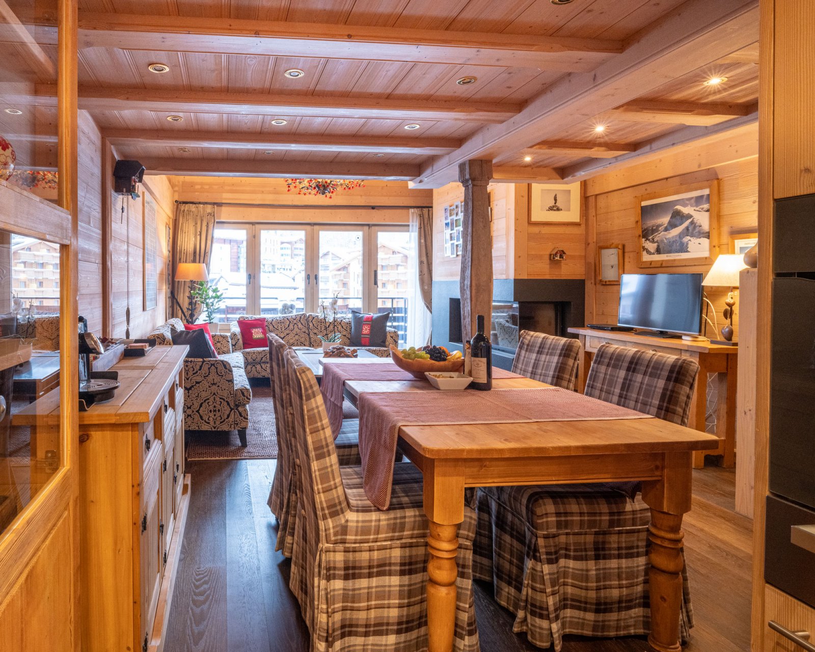 Le balcon orienté sud-ouest et le salon de cet appartement très confortable, accueillant et bien équipé offrent une vue spectaculaire sur le Cervin et les montagnes environnantes.