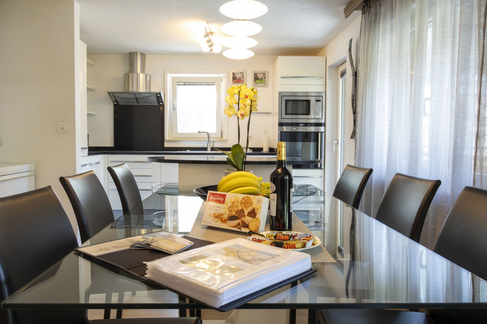 L'appartement est confortable, doté d'un mobilier moderne et offre une vue exceptionnelle sur le Cervin depuis le salon, la cuisine, la salle à manger et son balcon orienté sud. Il est équipé d'une télévision connectée avec chaînes numériques multilingues et d'une connexion Internet sans fil.