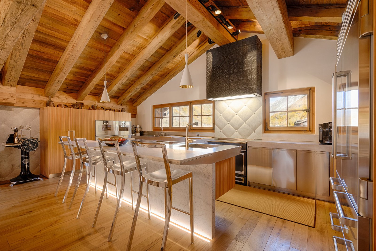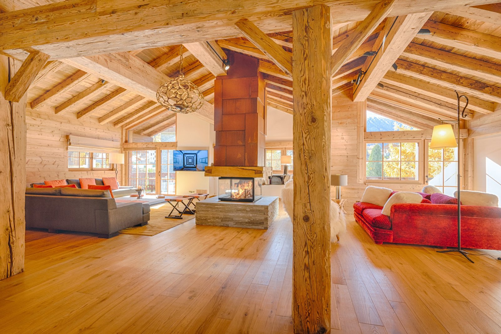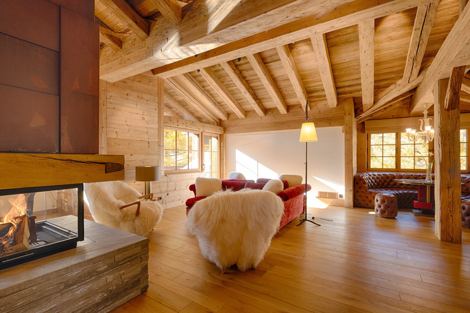 Réparti sur plusieurs étages avec un ascenseur privé, le chalet dispose d’espaces de vie lumineux et ouverts, de baies vitrées et de terrasses ensoleillées orientées au sud. L’élégant salon dispose de plusieurs espaces différents pour se détendre, d’un piano à queue Steinway et d’une cheminée centrale. Le grand coin repas et le bar avec îlot le rendent idéal pour les dîners avec traiteur ou les soirées de détente après avoir exploré les pistes de ski de Zermatt.