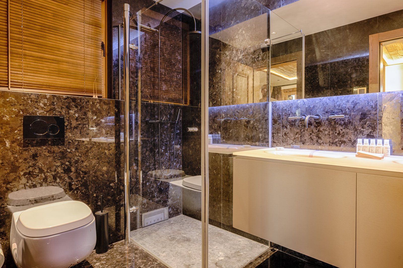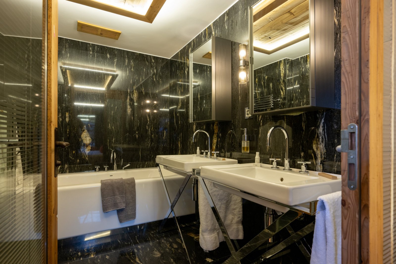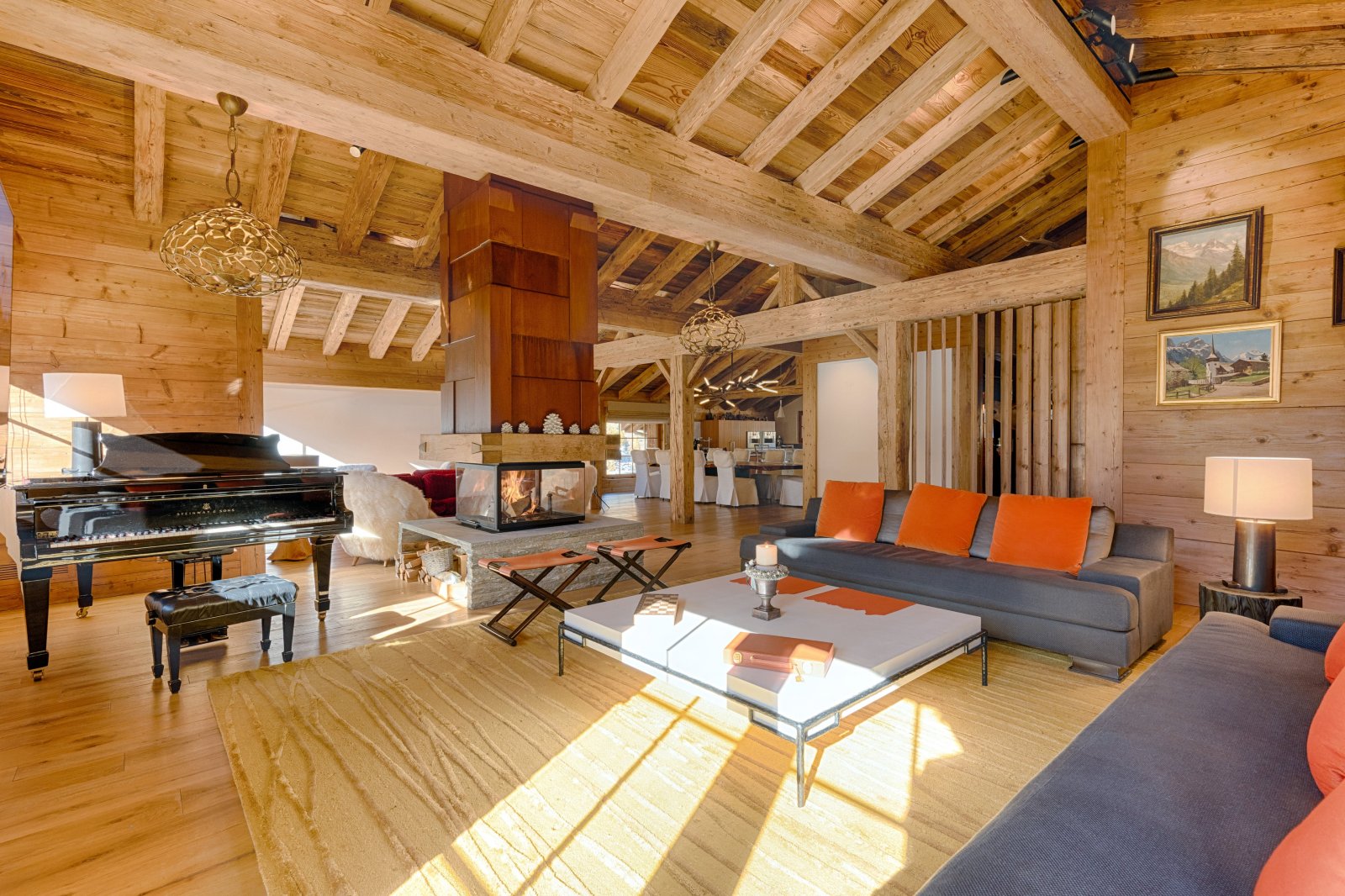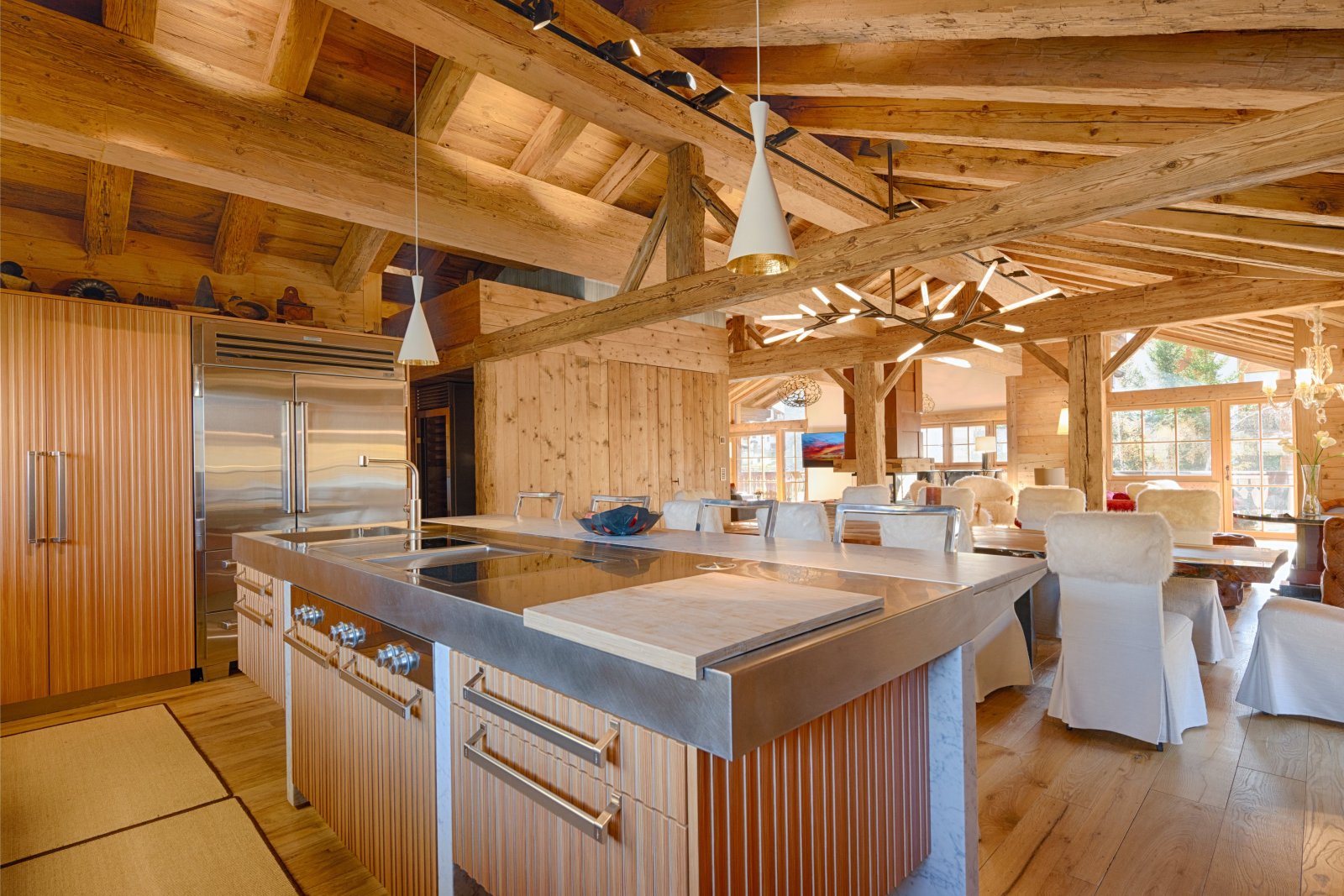 Réparti sur plusieurs étages avec un ascenseur privé, le chalet dispose d’espaces de vie lumineux et ouverts, de baies vitrées et de terrasses ensoleillées orientées au sud. L’élégant salon dispose de plusieurs espaces différents pour se détendre, d’un piano à queue Steinway et d’une cheminée centrale. Le grand coin repas et le bar avec îlot le rendent idéal pour les dîners avec traiteur ou les soirées de détente après avoir exploré les pistes de ski de Zermatt.