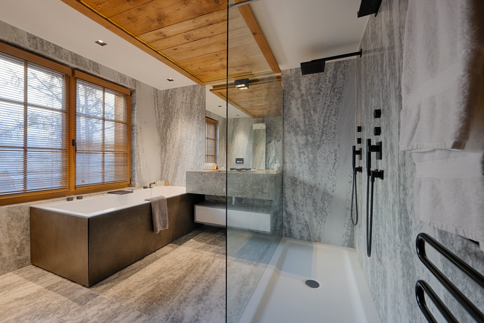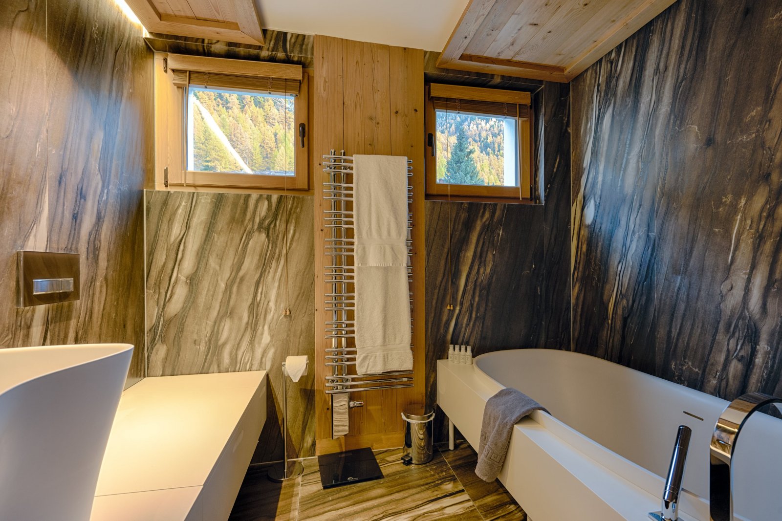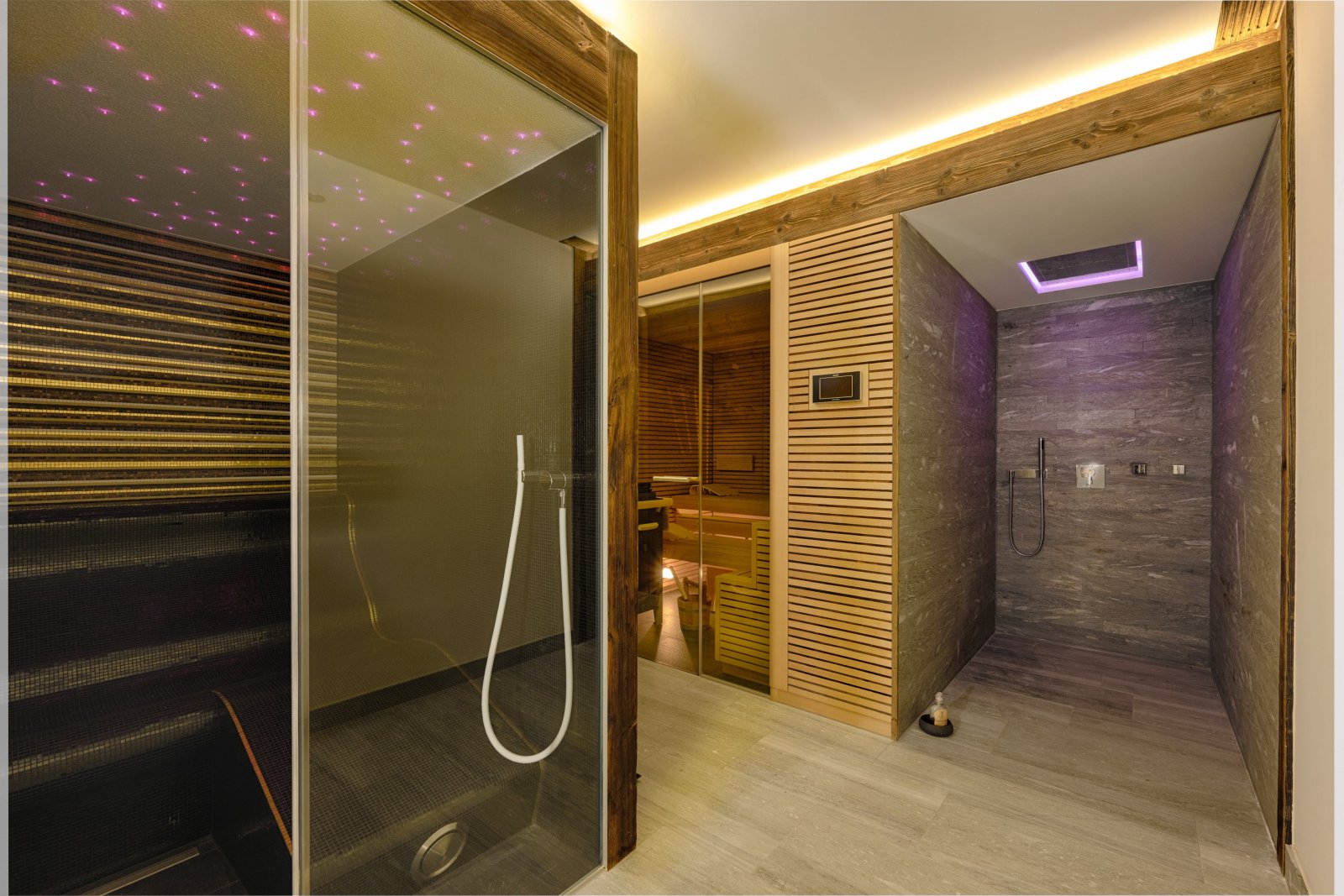 Au cœur de la propriété se trouve son impressionnante piscine privée, son spa et son espace bien-être. La piscine intérieure chauffée s’étend vers le paysage montagneux, complétée par une cheminée, un sauna, un hammam et une terrasse de relaxation extérieure, idéale pour se détendre après une journée sur les pistes de ski de Zermatt, mondialement connues, ou sur les sentiers de randonnée. Pour ceux qui recherchent encore plus de plaisir, une salle de soins de massage dédiée et un espace de remise en forme sont intégrés de manière réfléchie dans la conception.