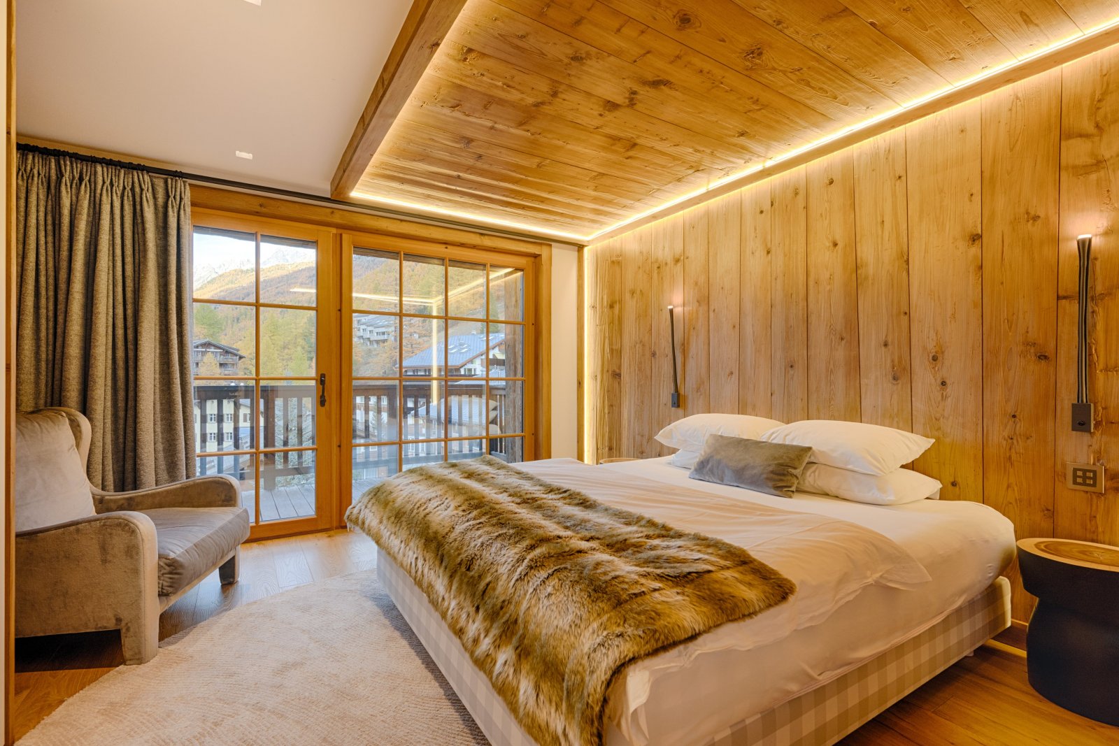 Les sept chambres sont équipées de salles de bains privatives, de mobilier haut de gamme et de balcons ou terrasses offrant une vue sur le Cervin ou le village.
