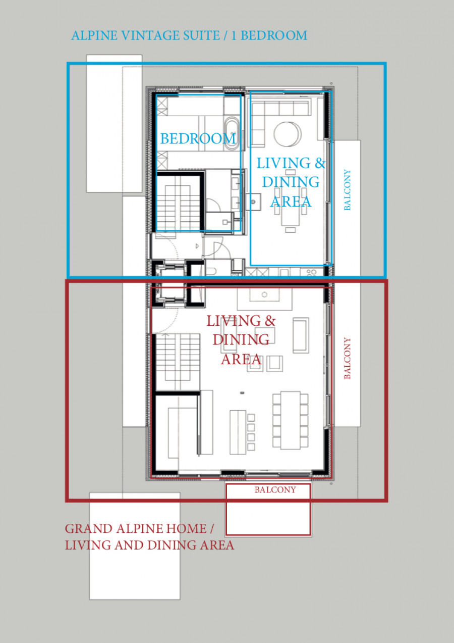 - 2-комнатный люкс (70 м2) с собственными ванными комнатами (один душ, одна ванна), включая общую гостиную с мини-кухней и балконом,