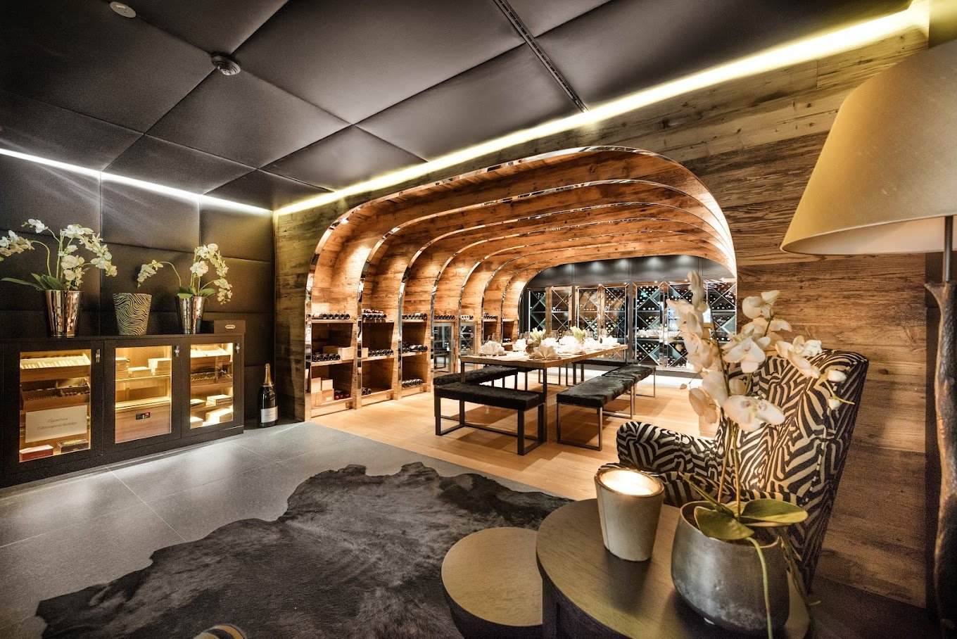 В подвале шале N находится настоящая жемчужина для сомелье и других любителей вина. Профессионально оснащенный винный погреб отличается не только выбором лучших вин, но и дизайном интерьера, который превращает каждое посещение в настоящее событие.