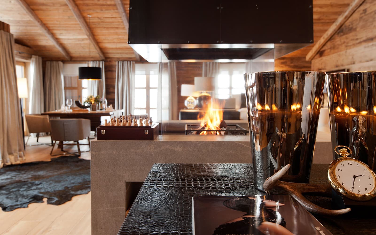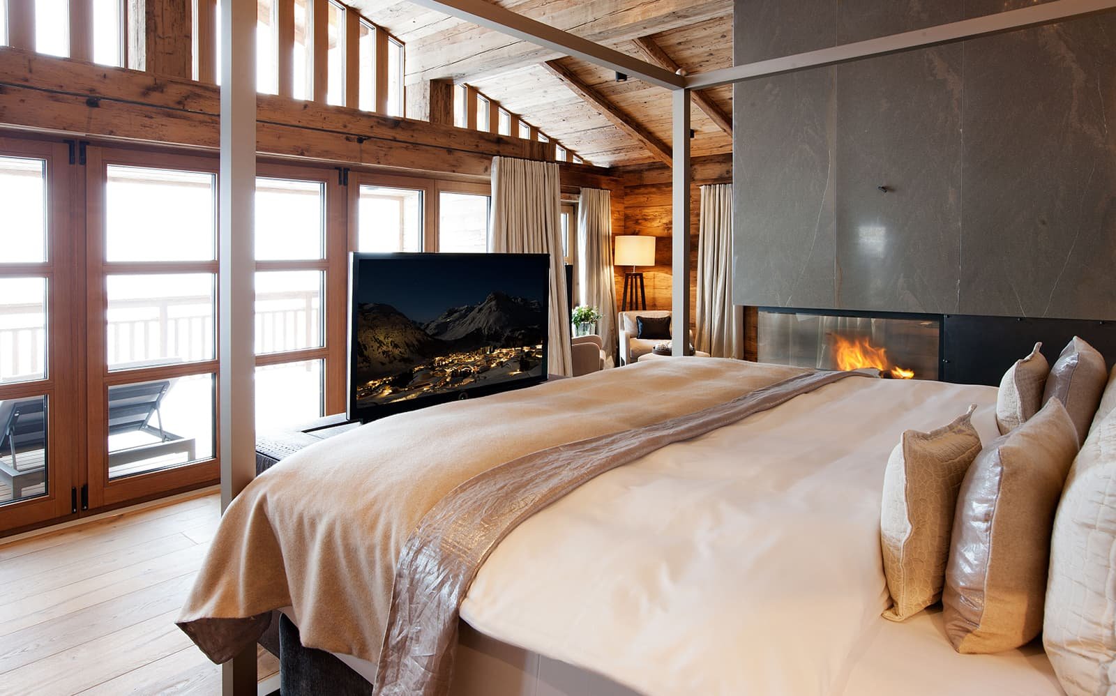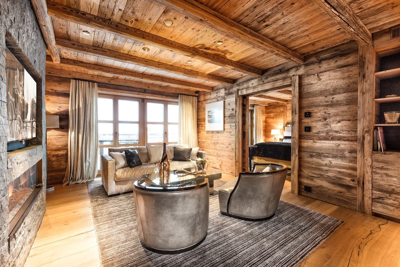 Вид из номеров-люкс - это постоянное напоминание о внушительной, почти магической энергии гор, окружающих шале N. И вид внутри шале не менее завораживающий.